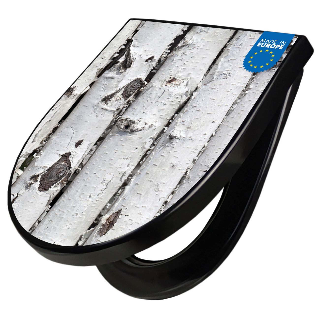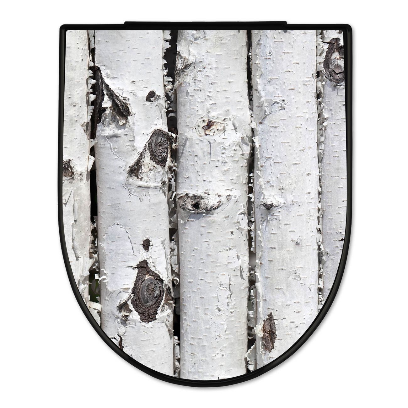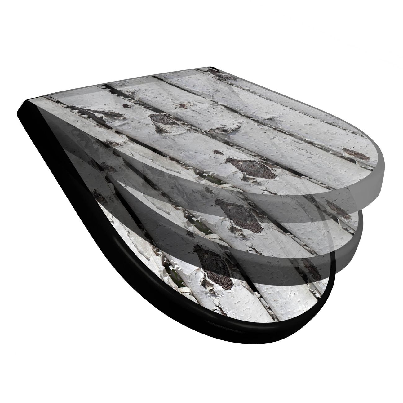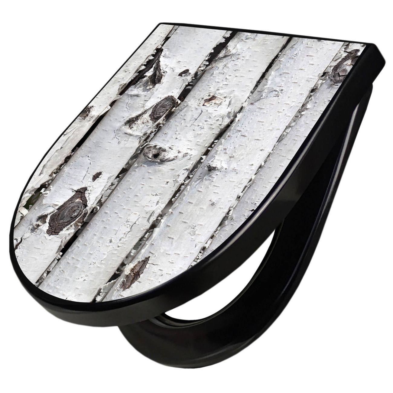 WC Sitz D-Form Schwarz mit Absenkautomatik Motiv Birkenrinde