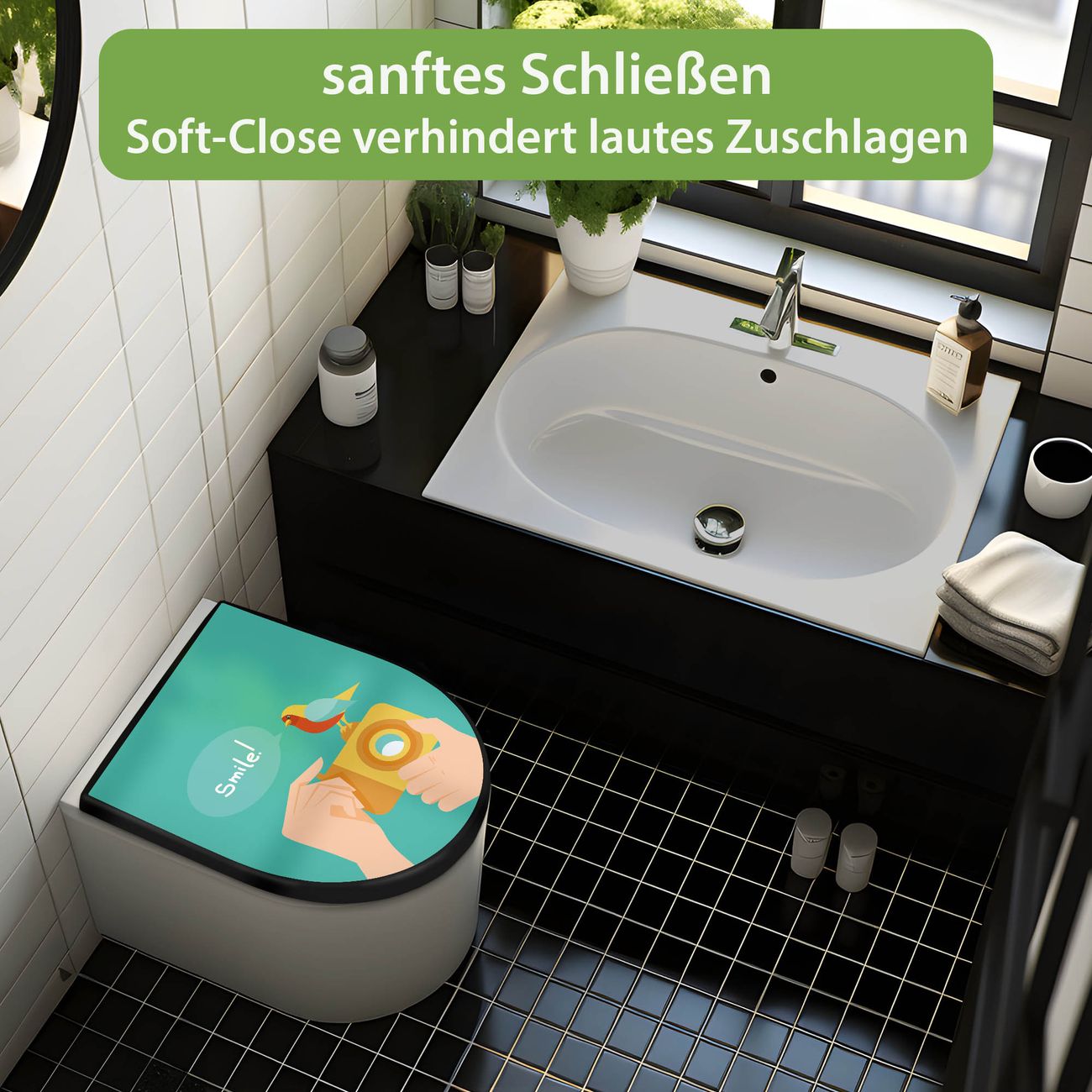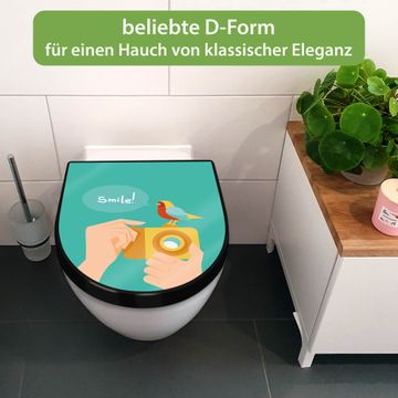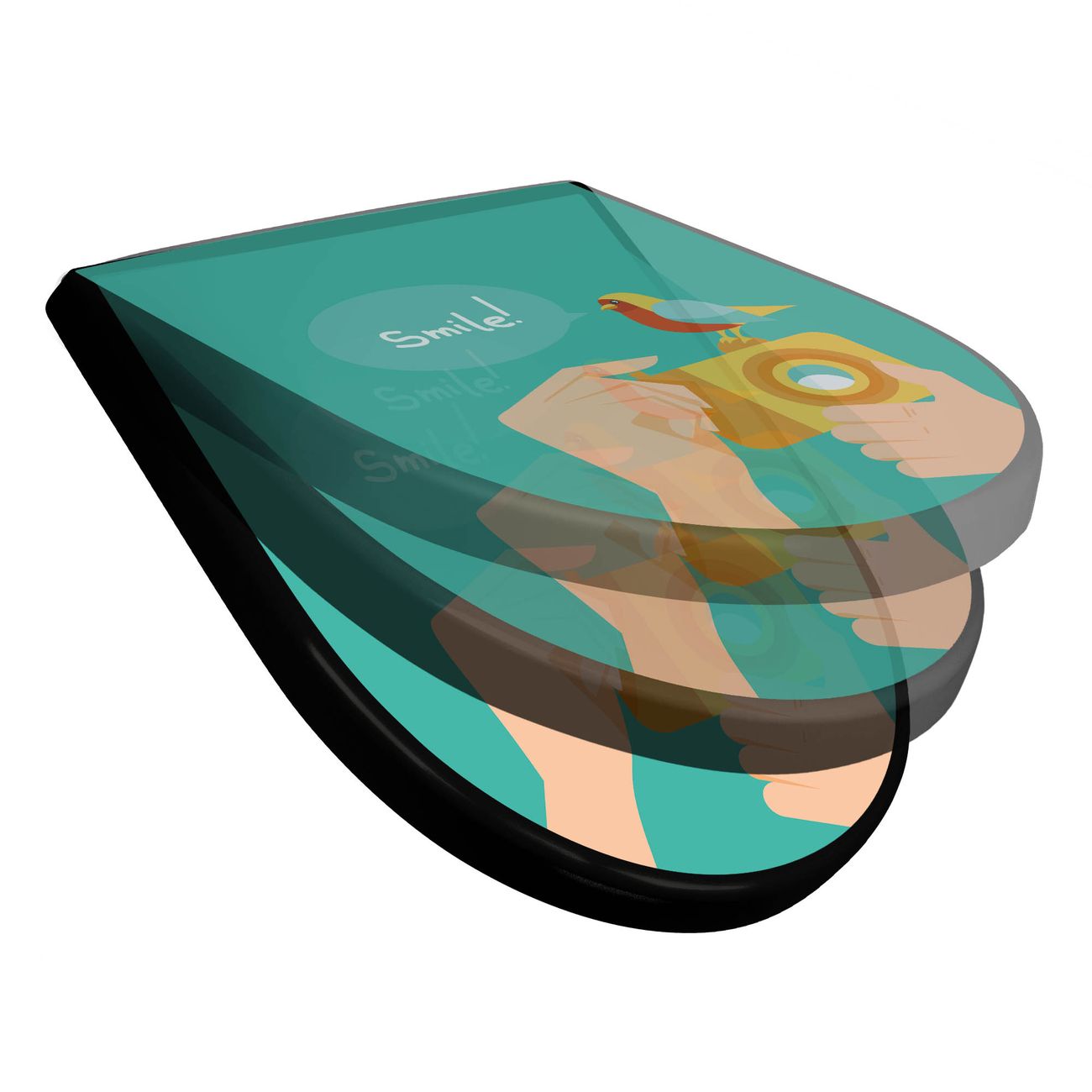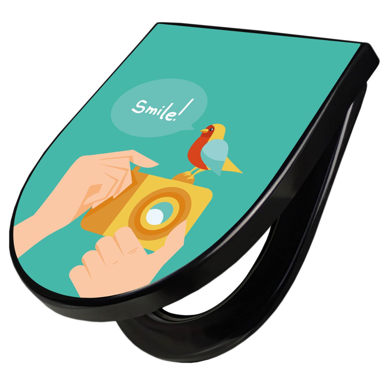 WC Sitz D-Form Schwarz mit Absenkautomatik Motiv Bitte Lächeln 2