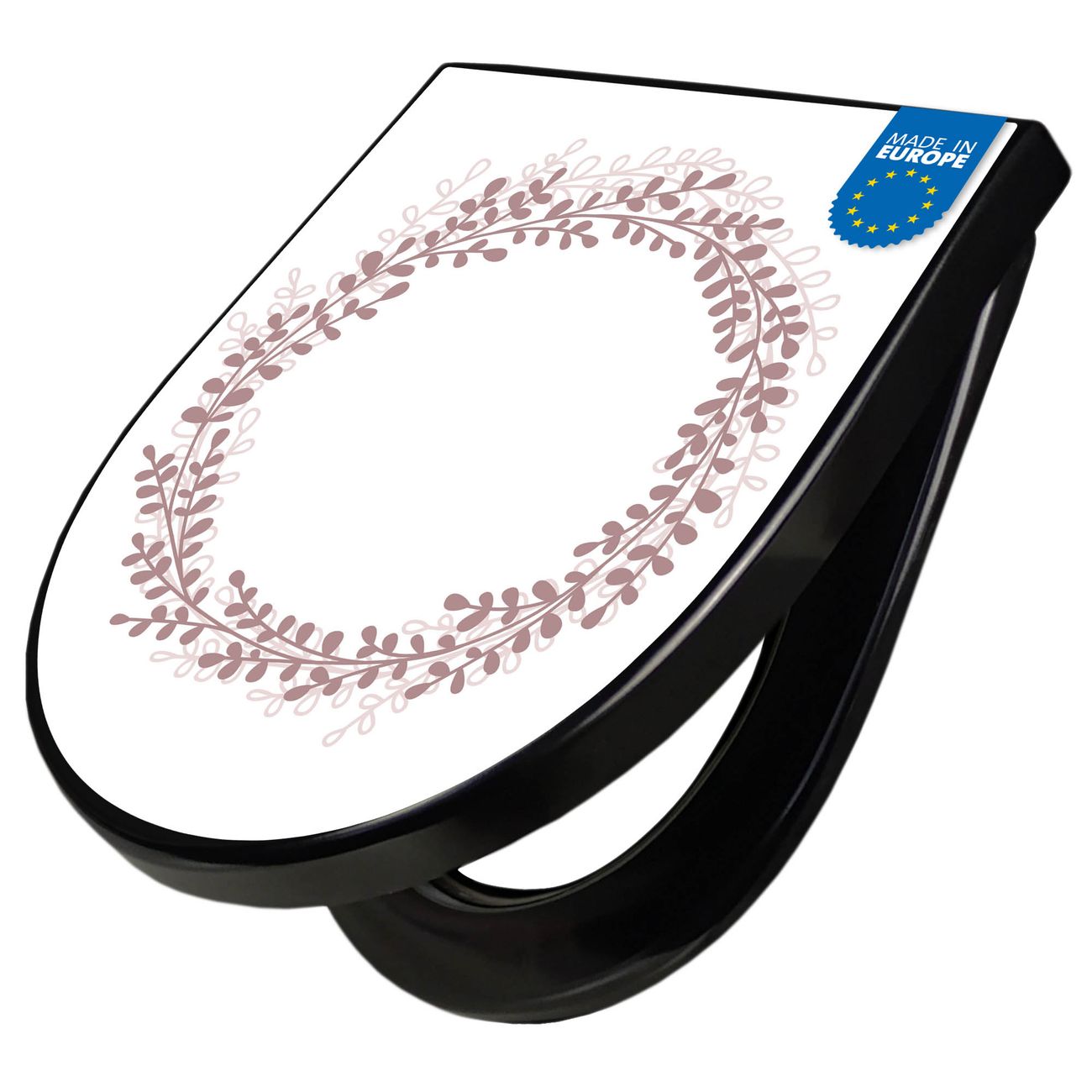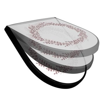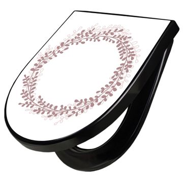WC Sitz D-Form Schwarz mit Absenkautomatik Motiv Blätterkranz