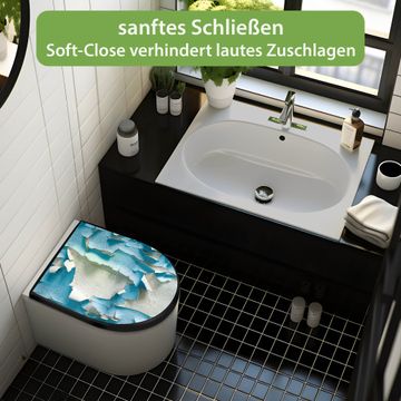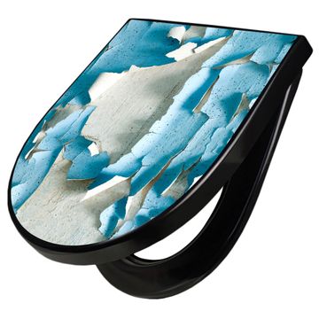 WC Sitz D-Form Schwarz mit Absenkautomatik Motiv Blätternde Farbe