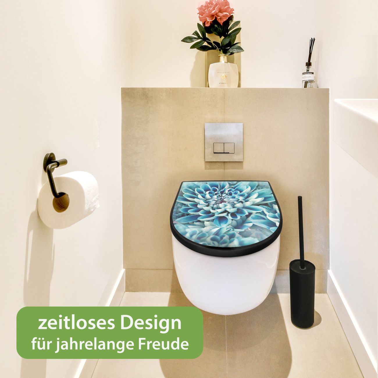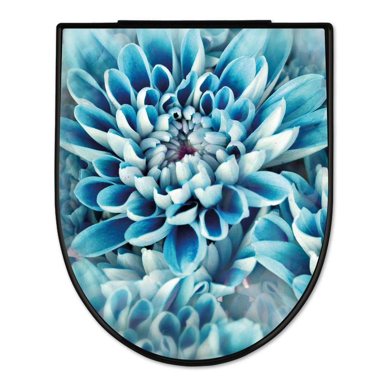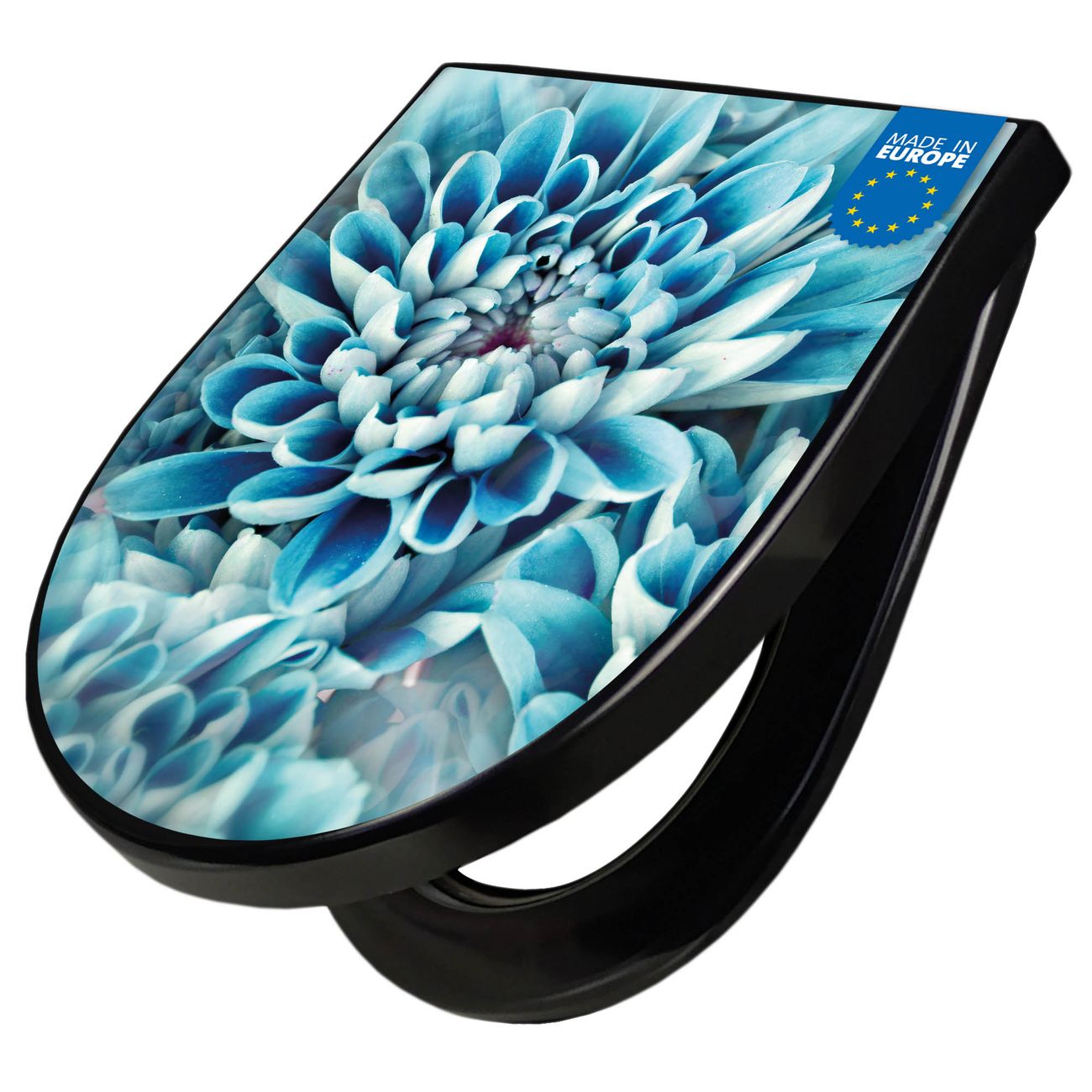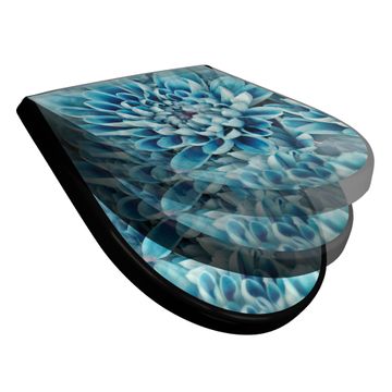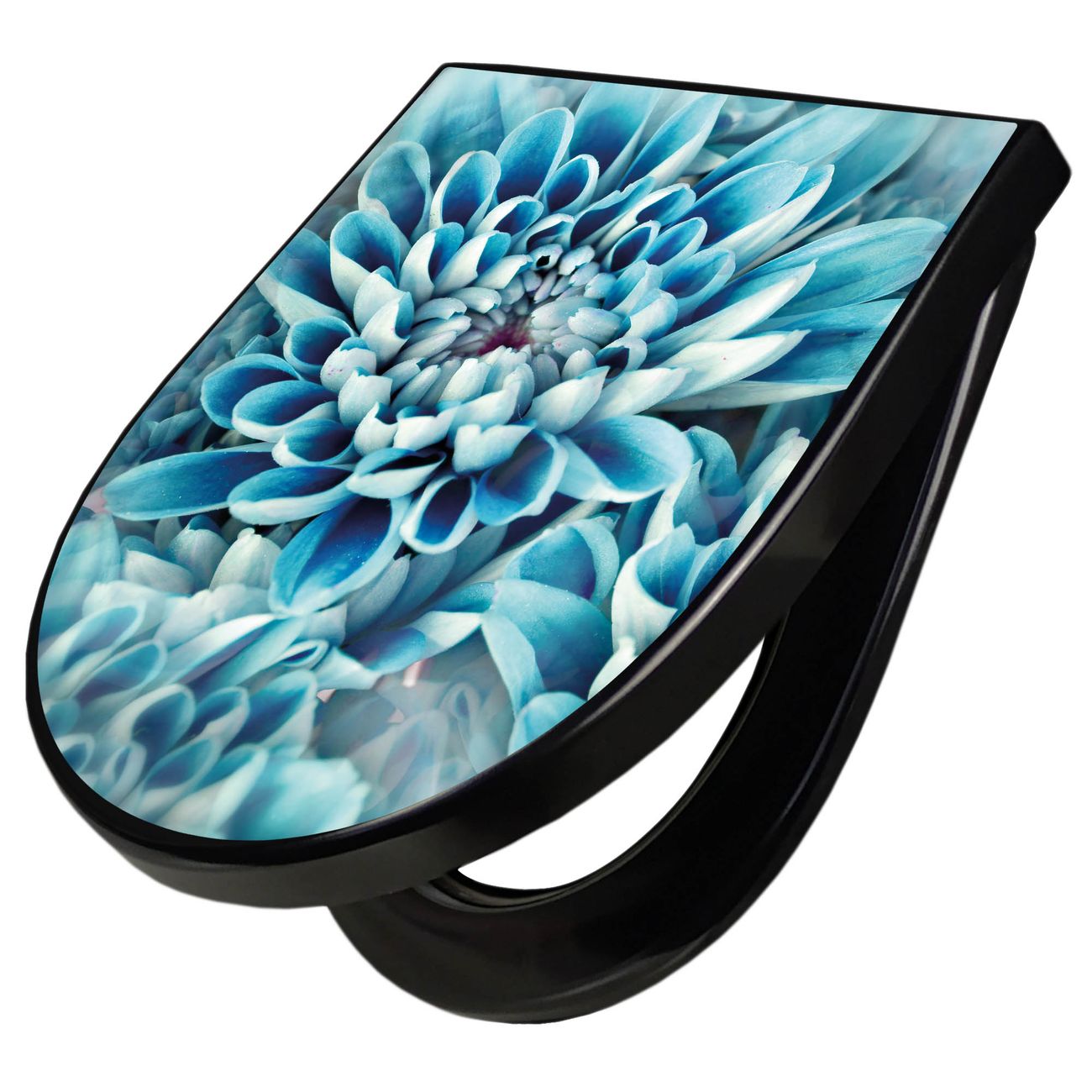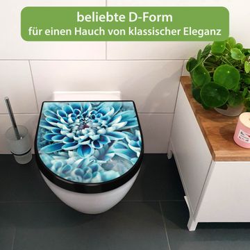 WC Sitz D-Form Schwarz mit Absenkautomatik Motiv Blaue Blüten