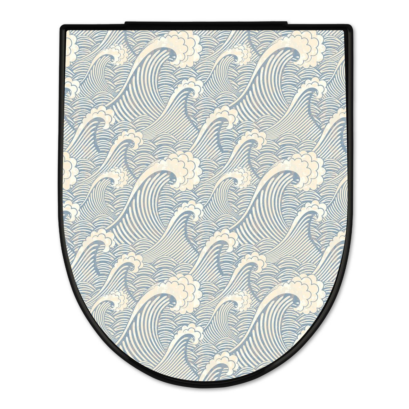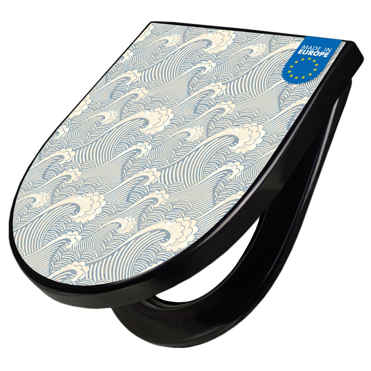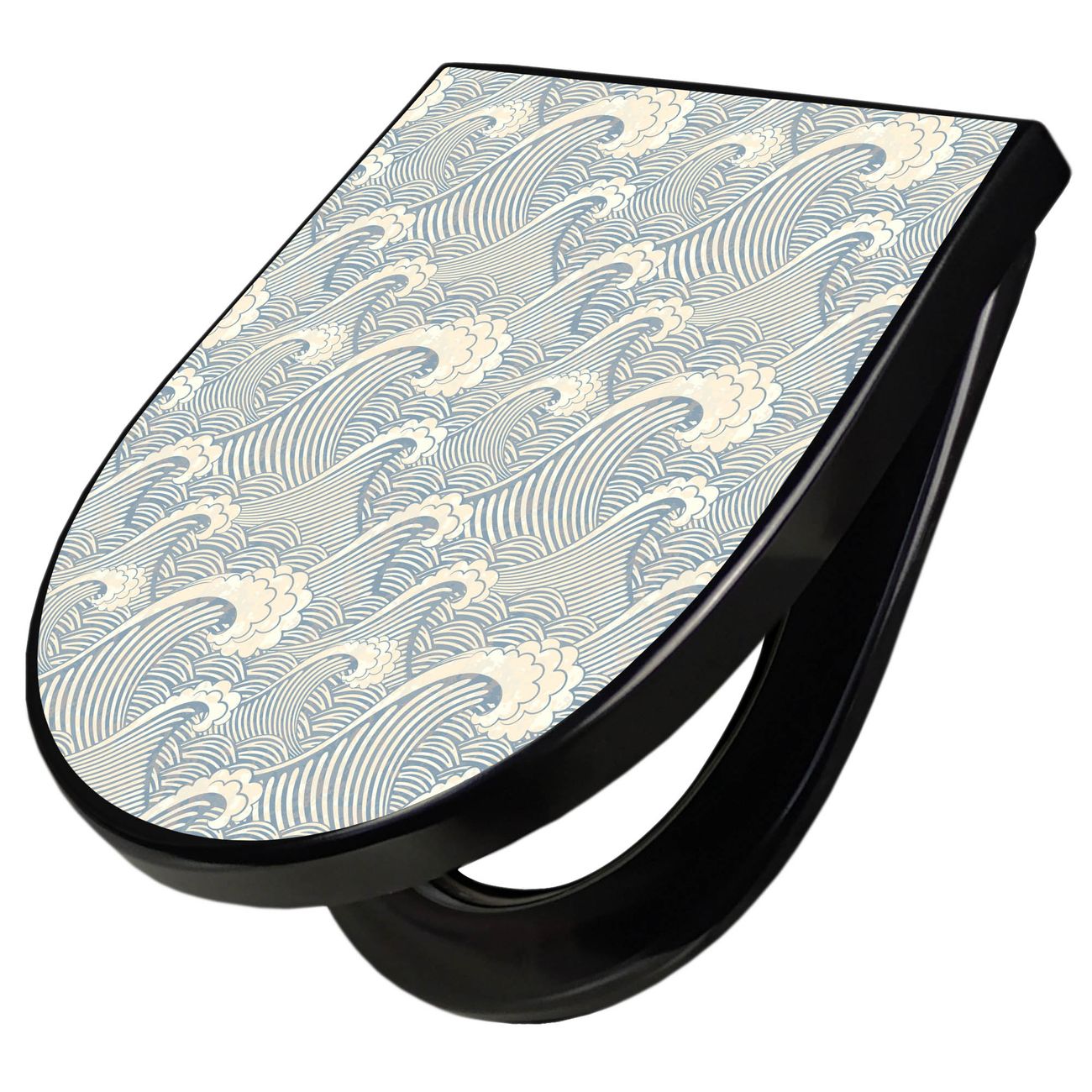 WC Sitz D-Form Schwarz mit Absenkautomatik Motiv Blaue Wellen