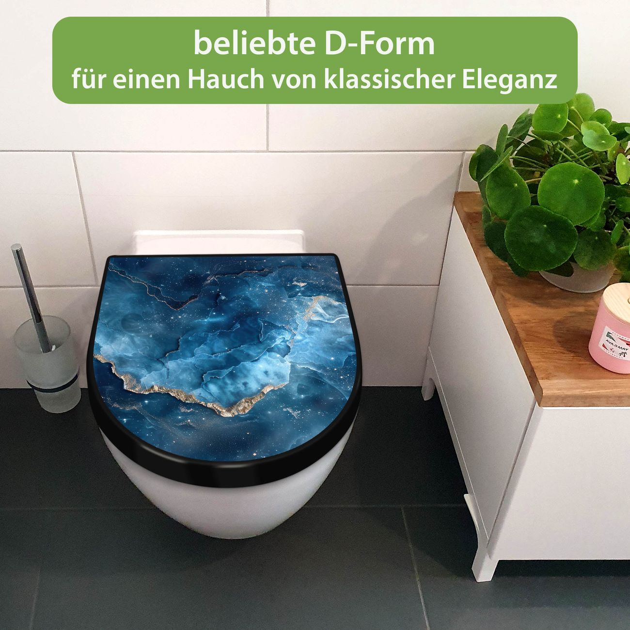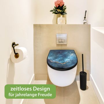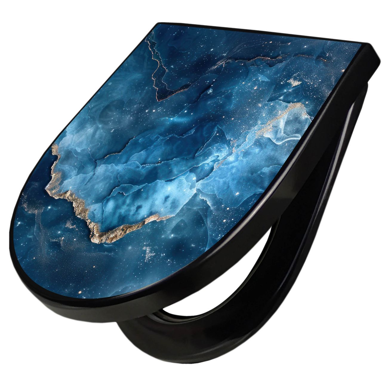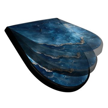 WC Sitz D-Form Schwarz mit Absenkautomatik Motiv Blauer Marmor mit Gold 1