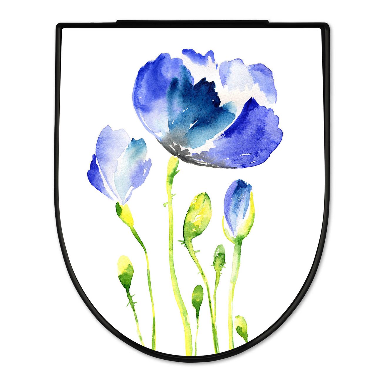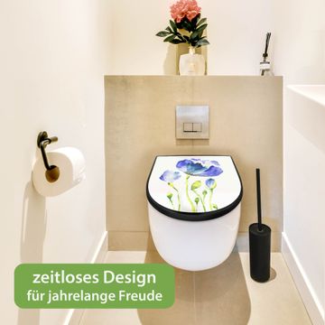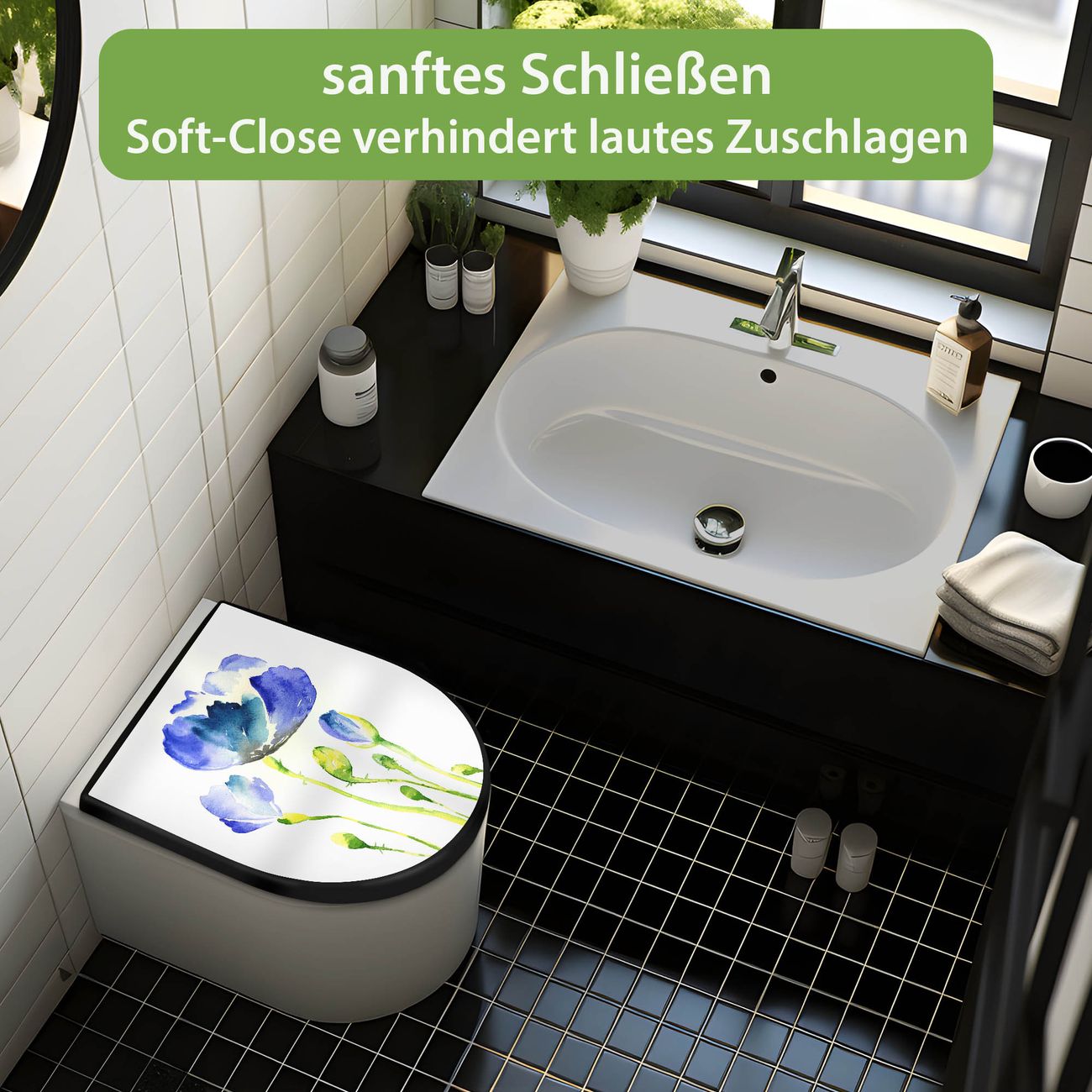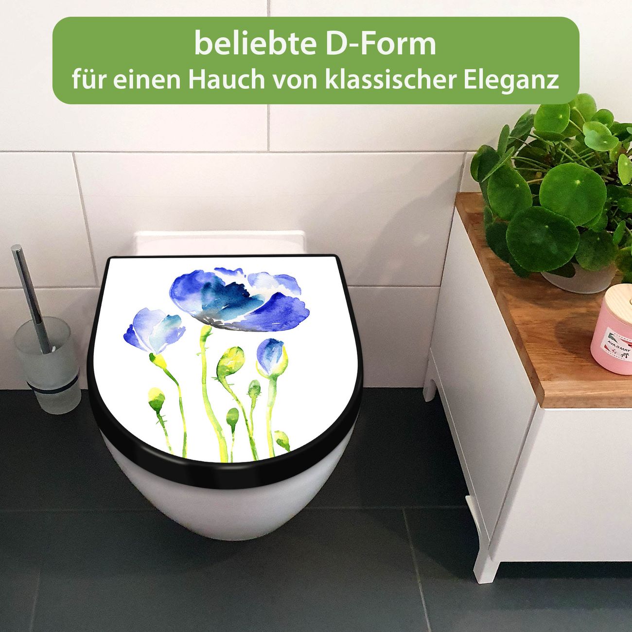 WC Sitz D-Form Schwarz mit Absenkautomatik Motiv Blauer Mohn