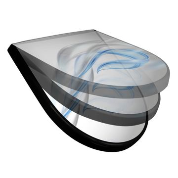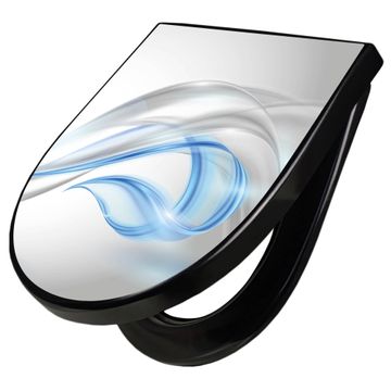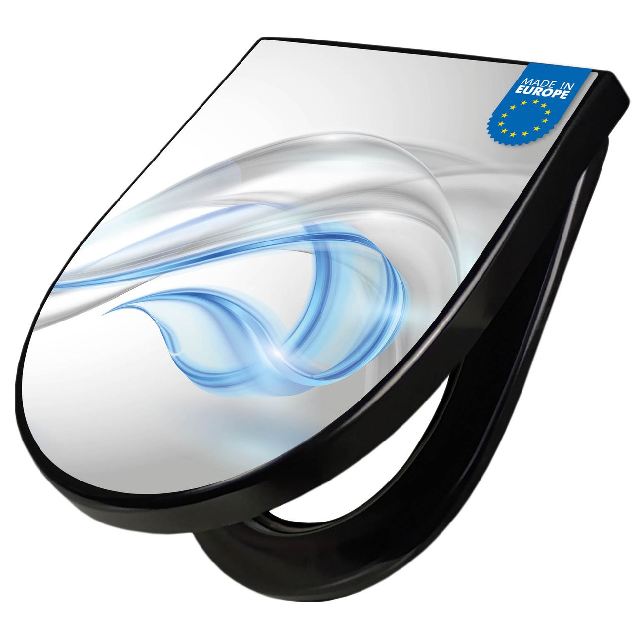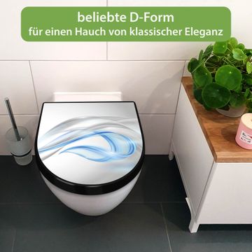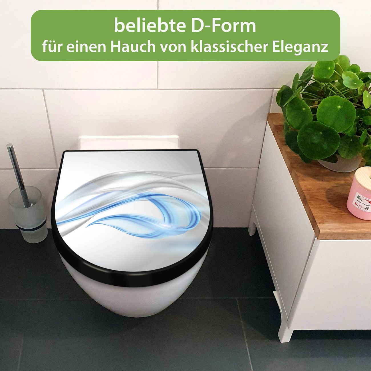 WC Sitz D-Form Schwarz mit Absenkautomatik Motiv Blauer Schleier