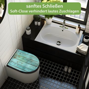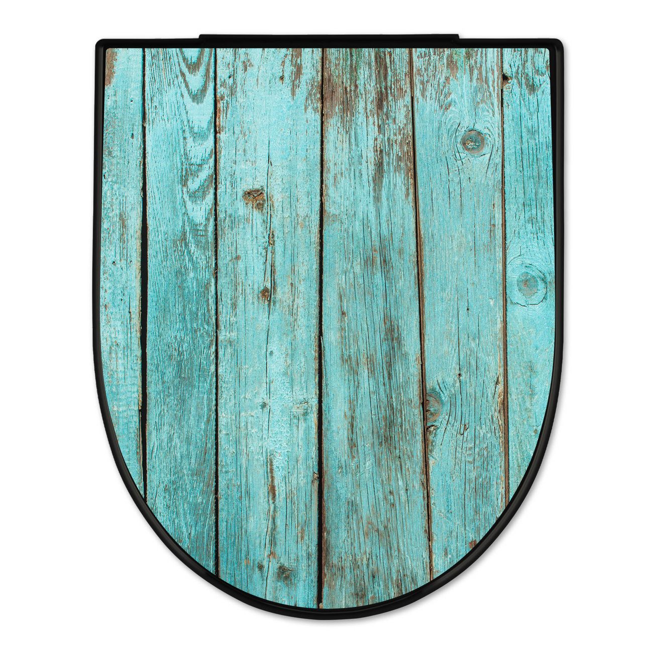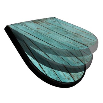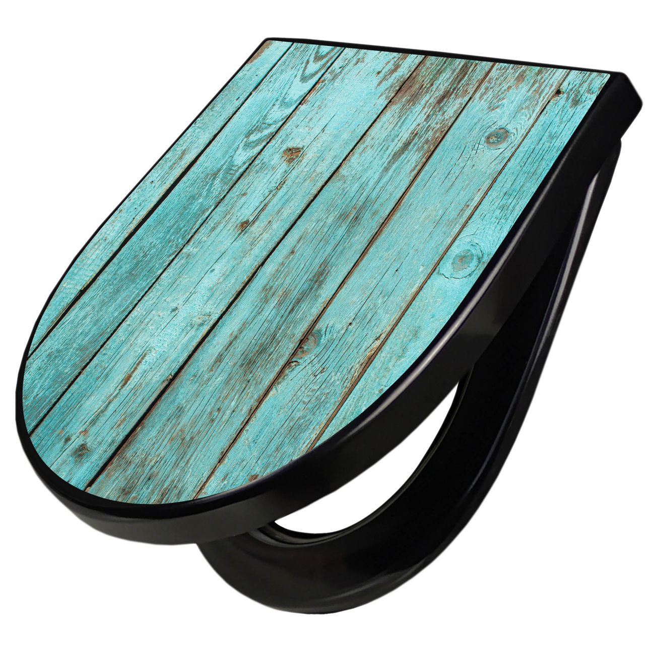 WC Sitz D-Form Schwarz mit Absenkautomatik Motiv Blaues Holz