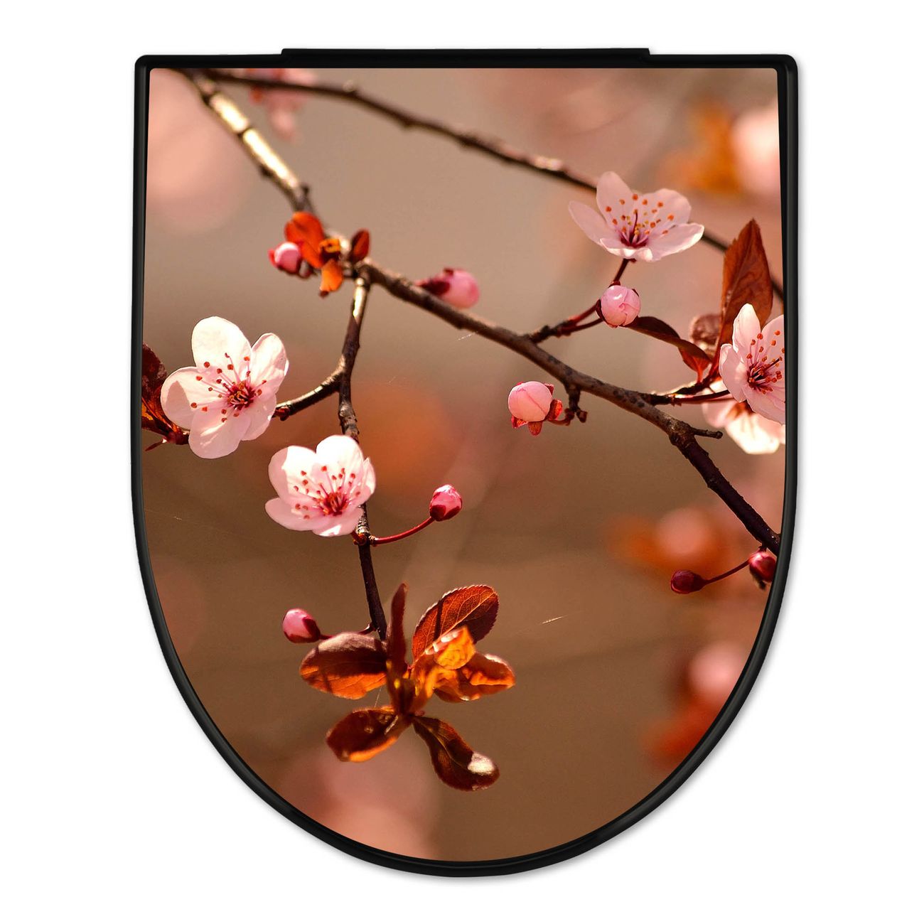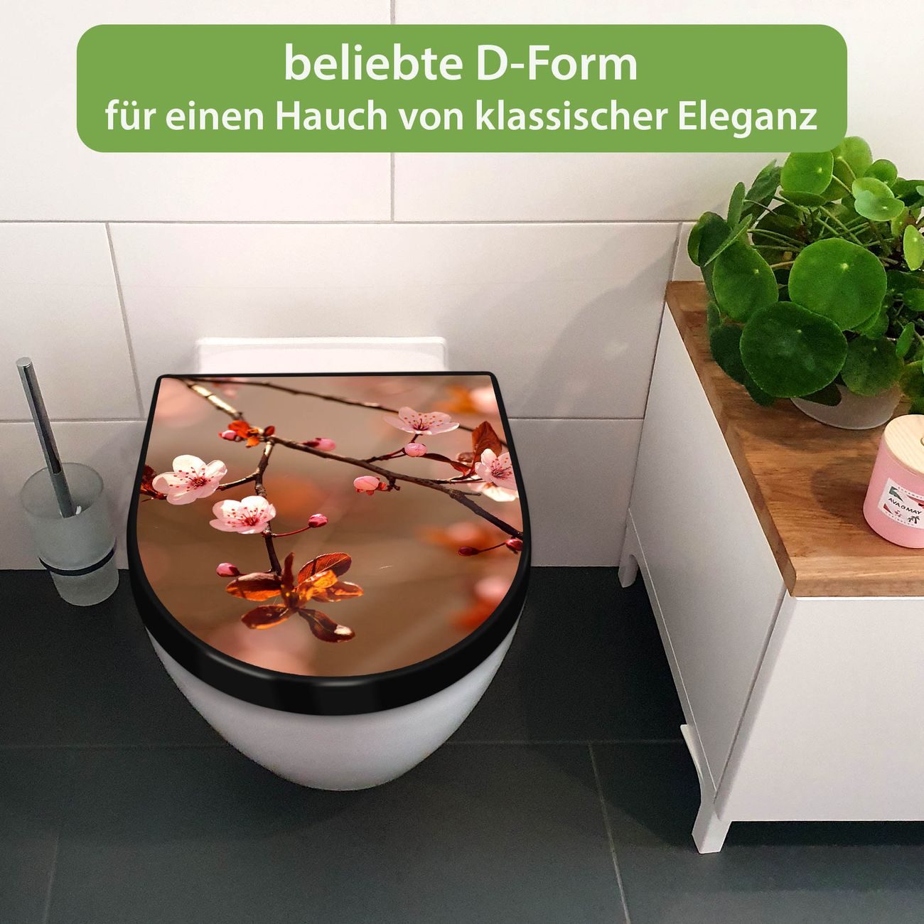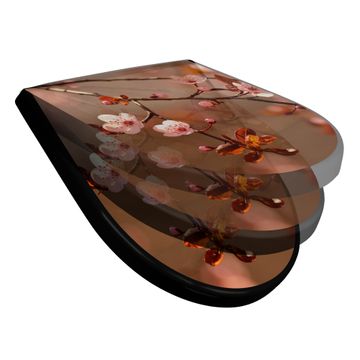 WC Sitz D-Form Schwarz mit Absenkautomatik Motiv Blühender Kirschzweig