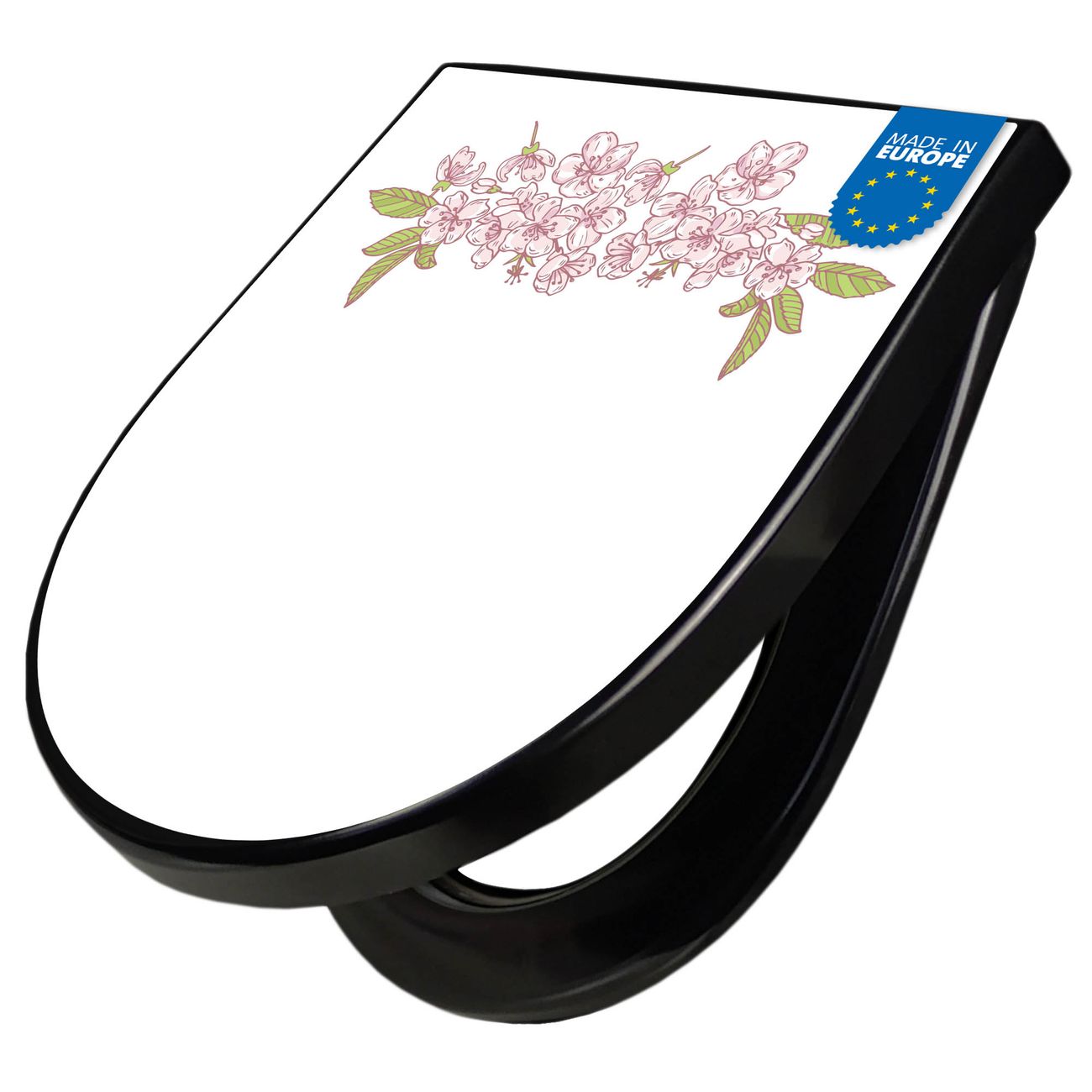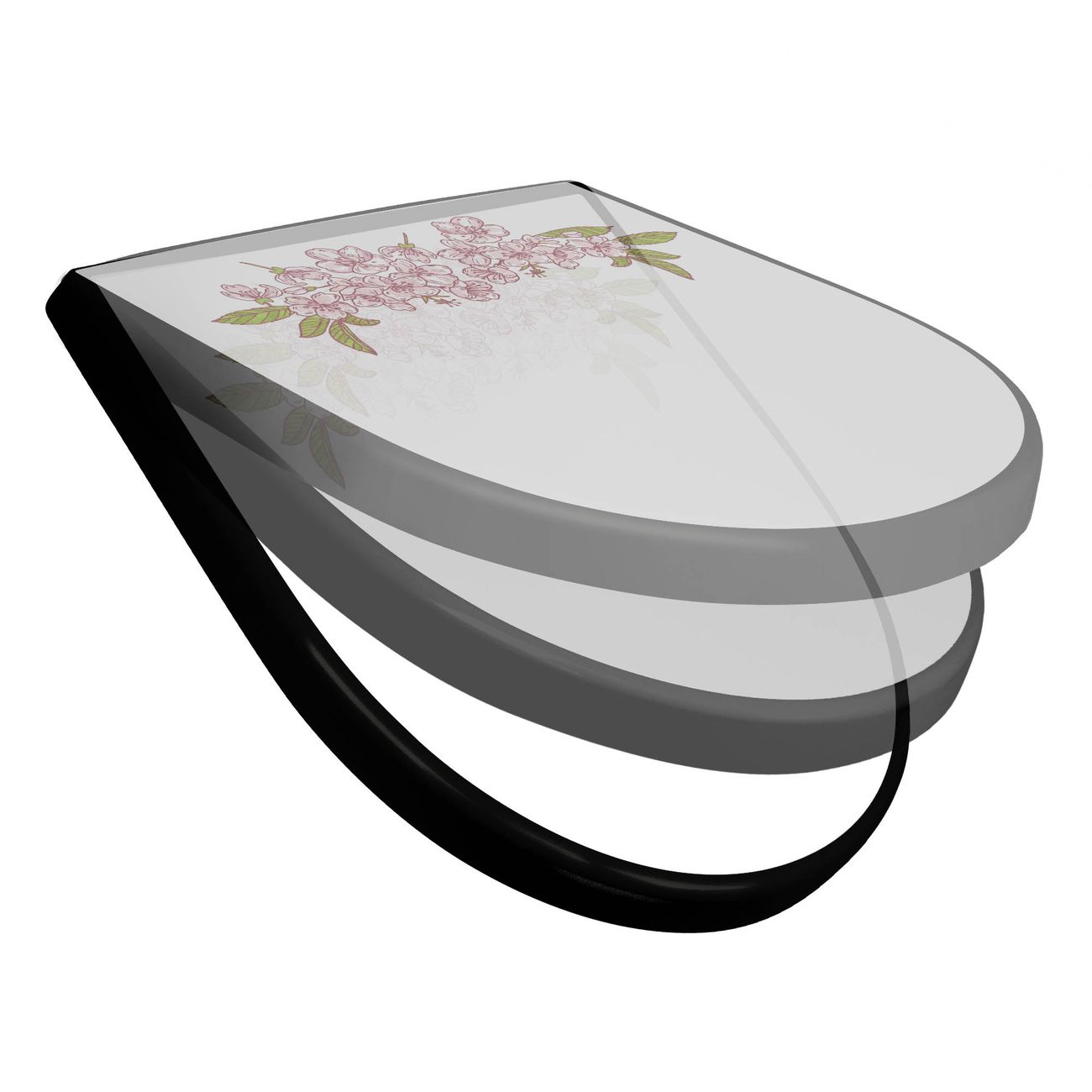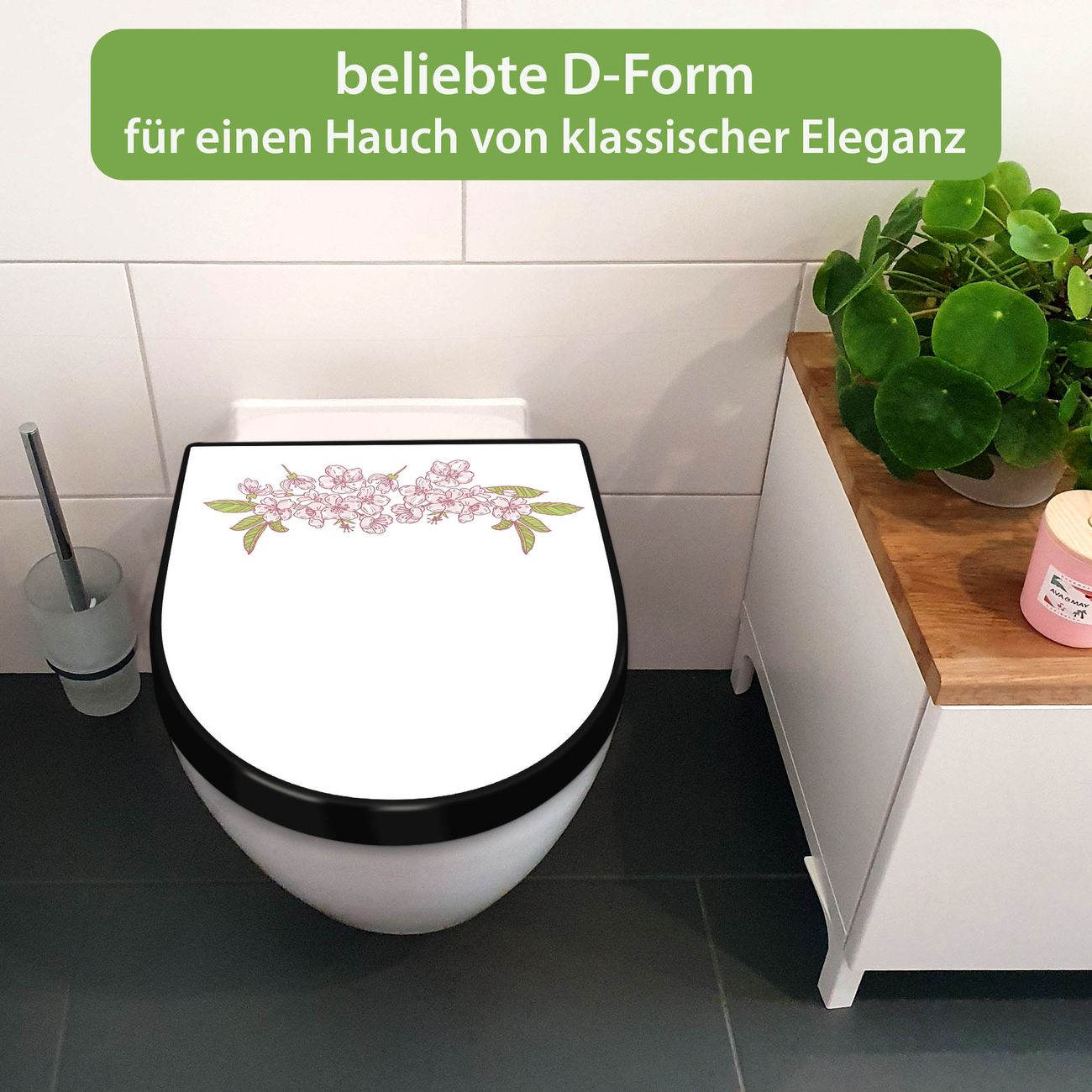 WC Sitz D-Form Schwarz mit Absenkautomatik Motiv Blütenzauber 2
