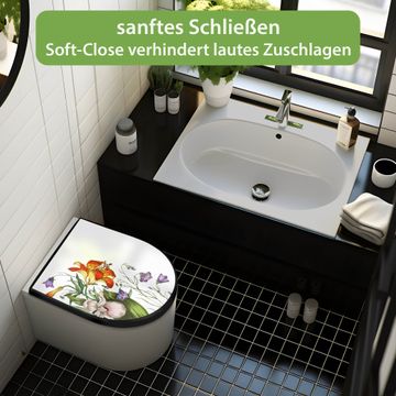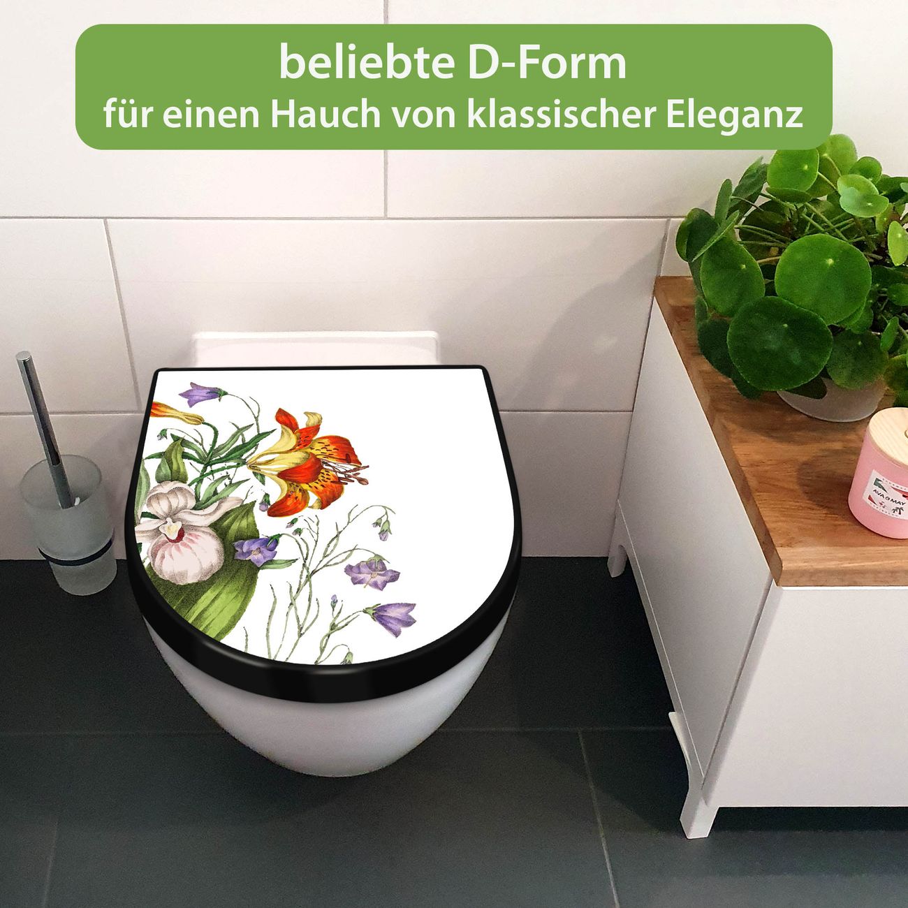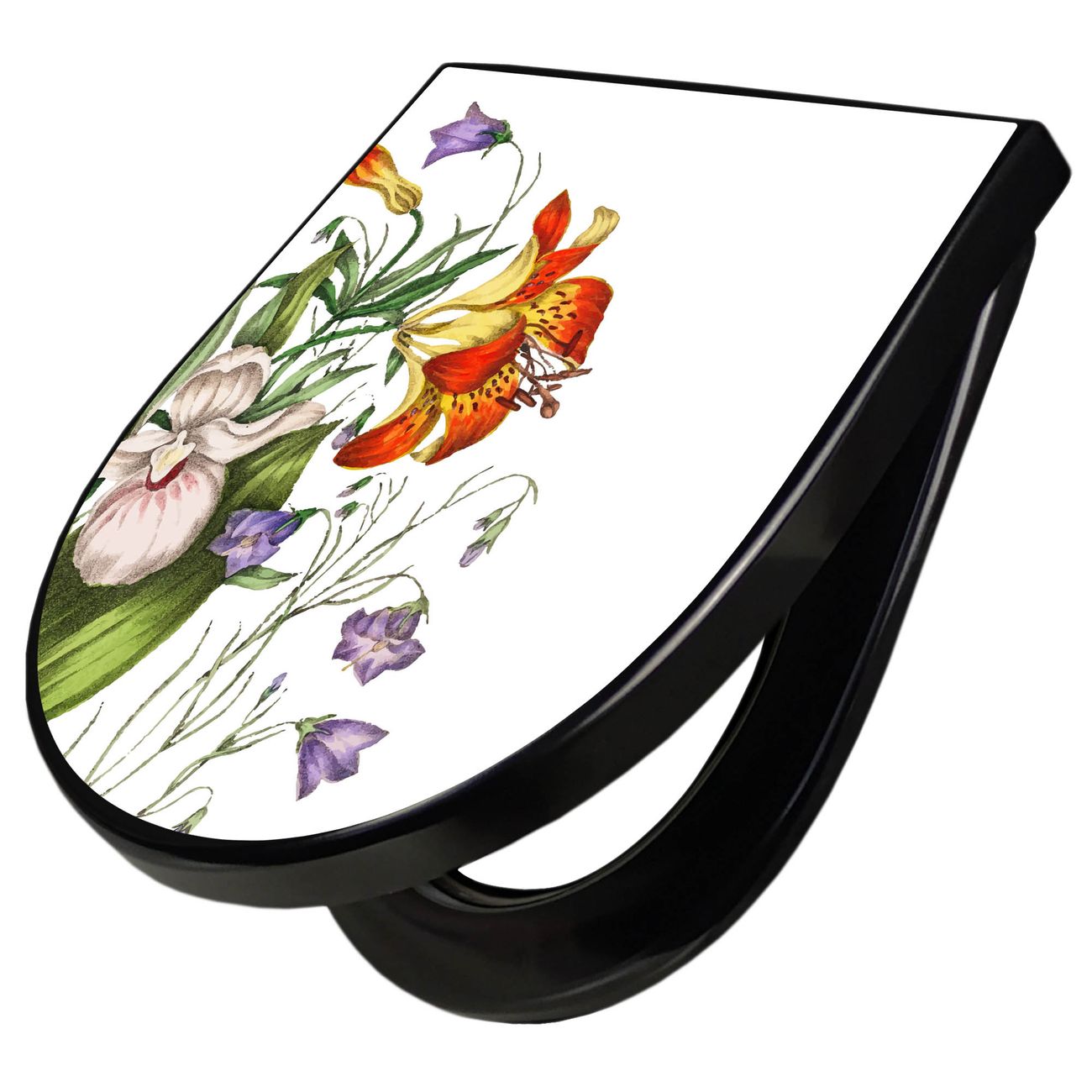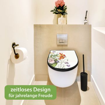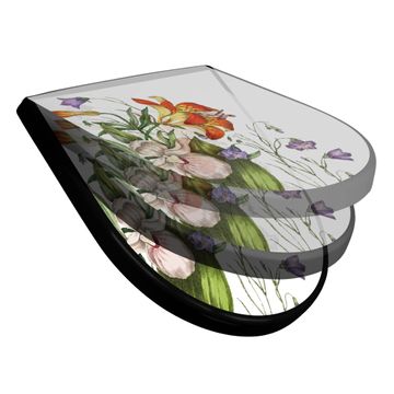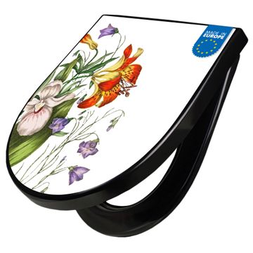 WC Sitz D-Form Schwarz mit Absenkautomatik Motiv Blumen Aquarell 2