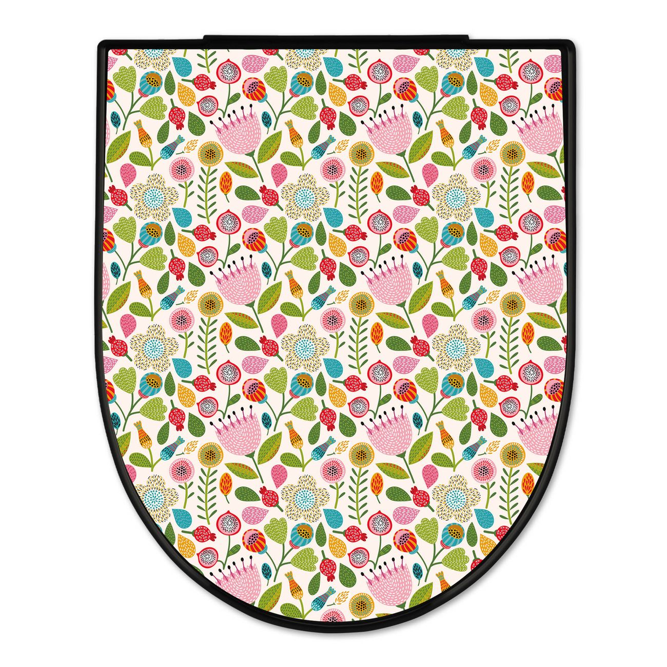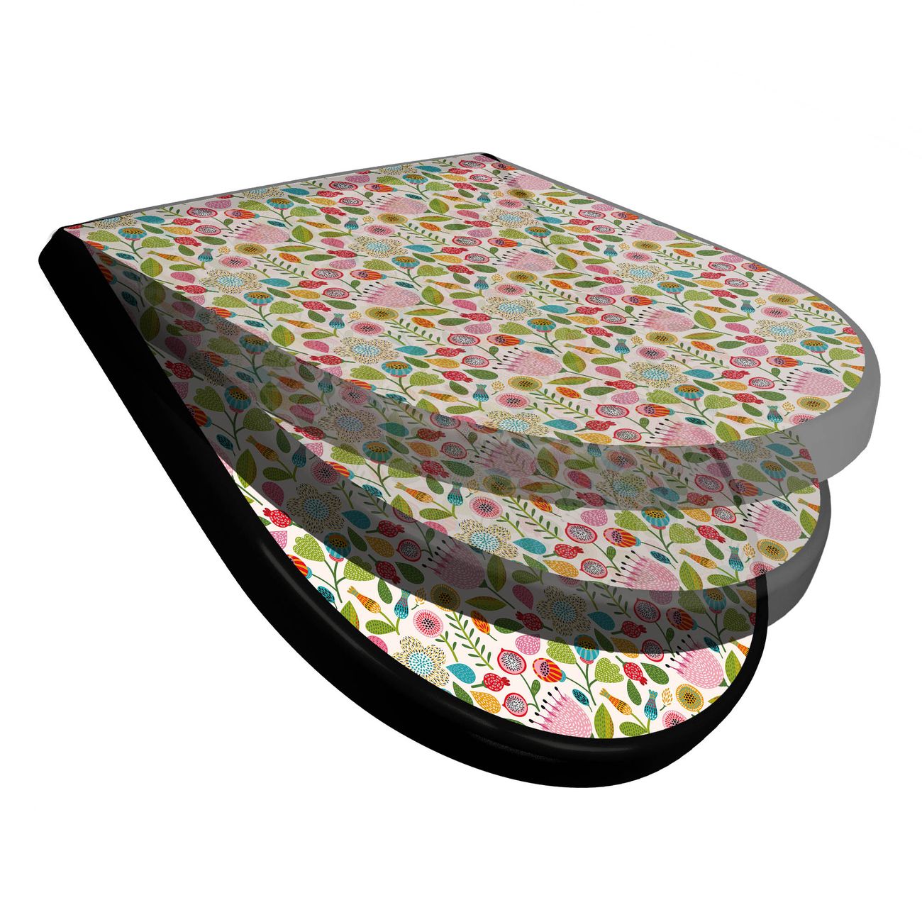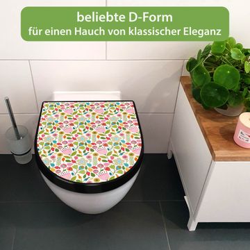 WC Sitz D-Form Schwarz mit Absenkautomatik Motiv Blumen Naiv