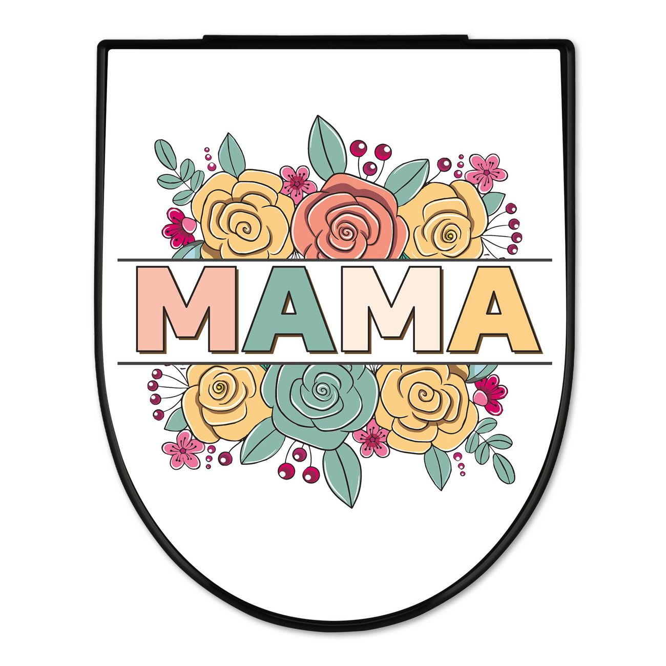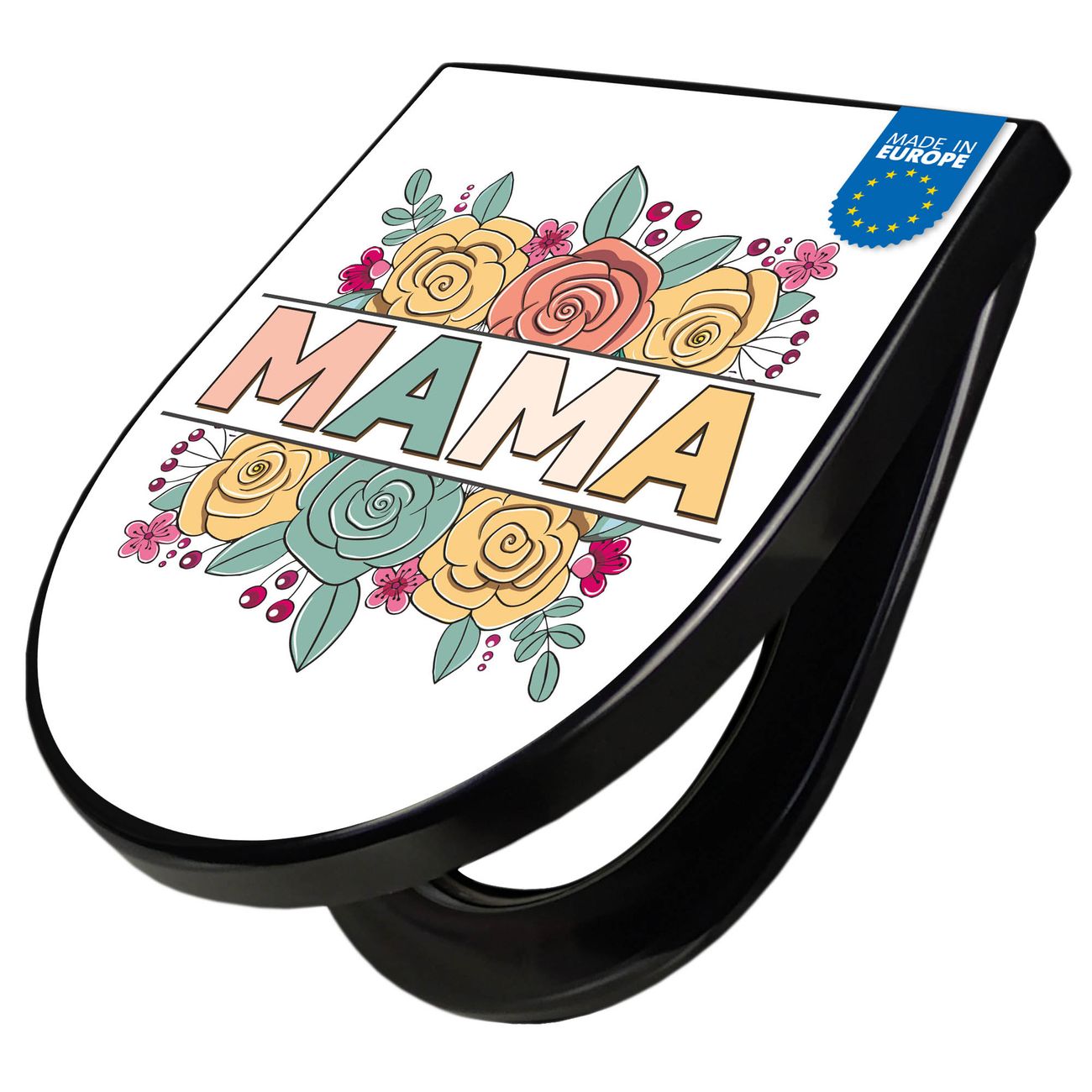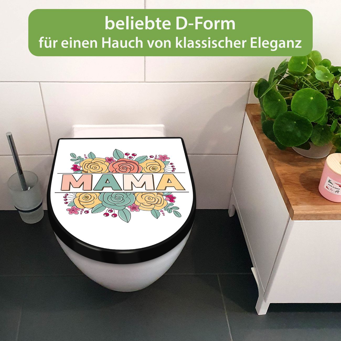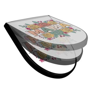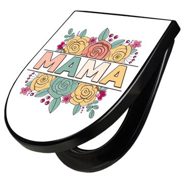 WC Sitz D-Form Schwarz mit Absenkautomatik Motiv Blumengruß für Mama