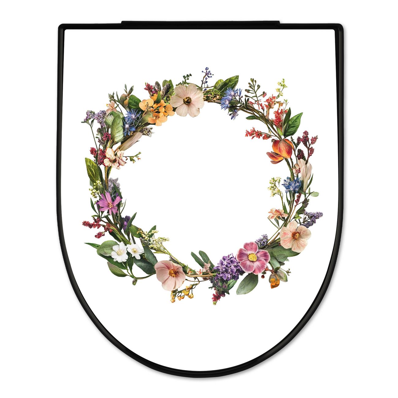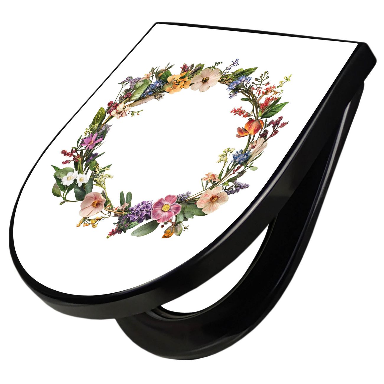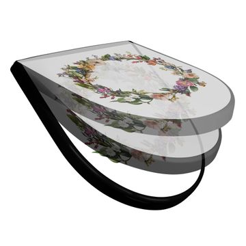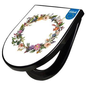 WC Sitz D-Form Schwarz mit Absenkautomatik Motiv Blumenkranz der Jahreszeiten