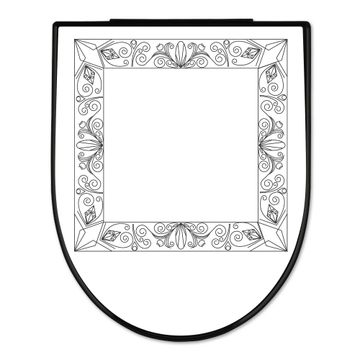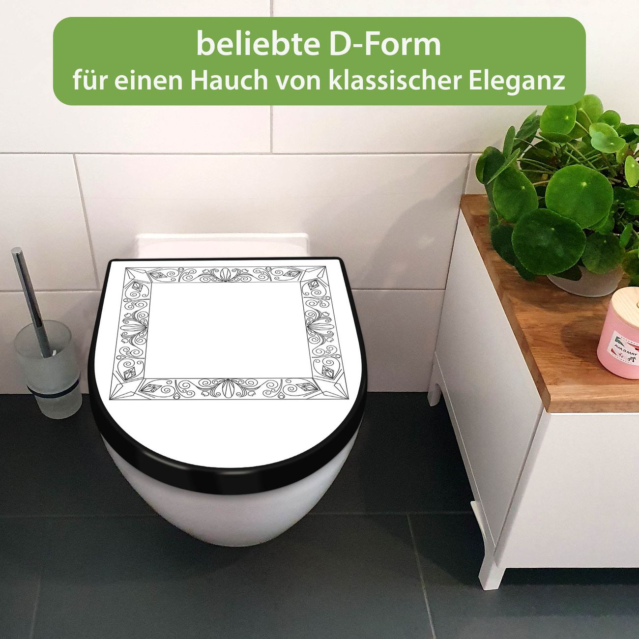 WC Sitz D-Form Schwarz mit Absenkautomatik Motiv Blumenornament-Rahmen