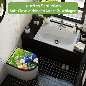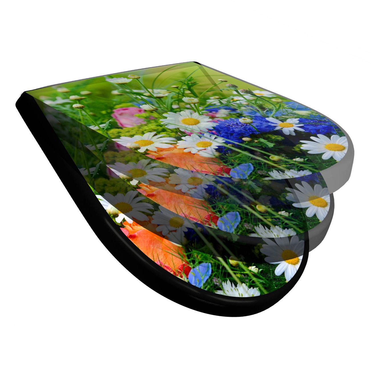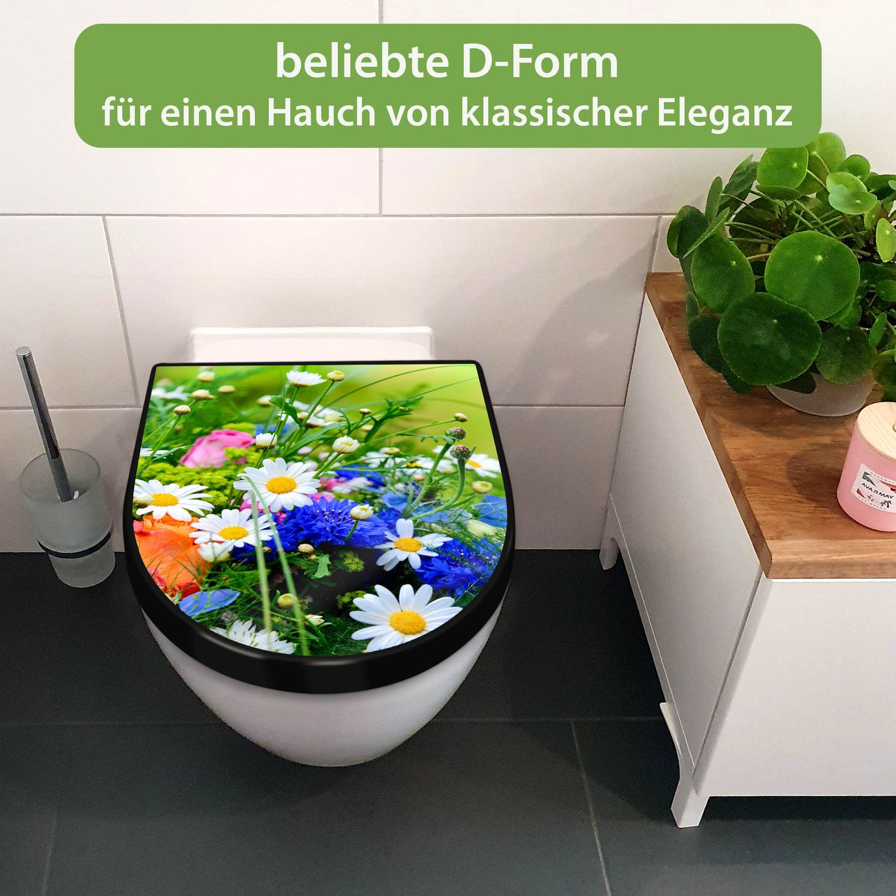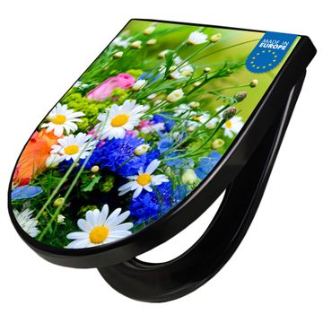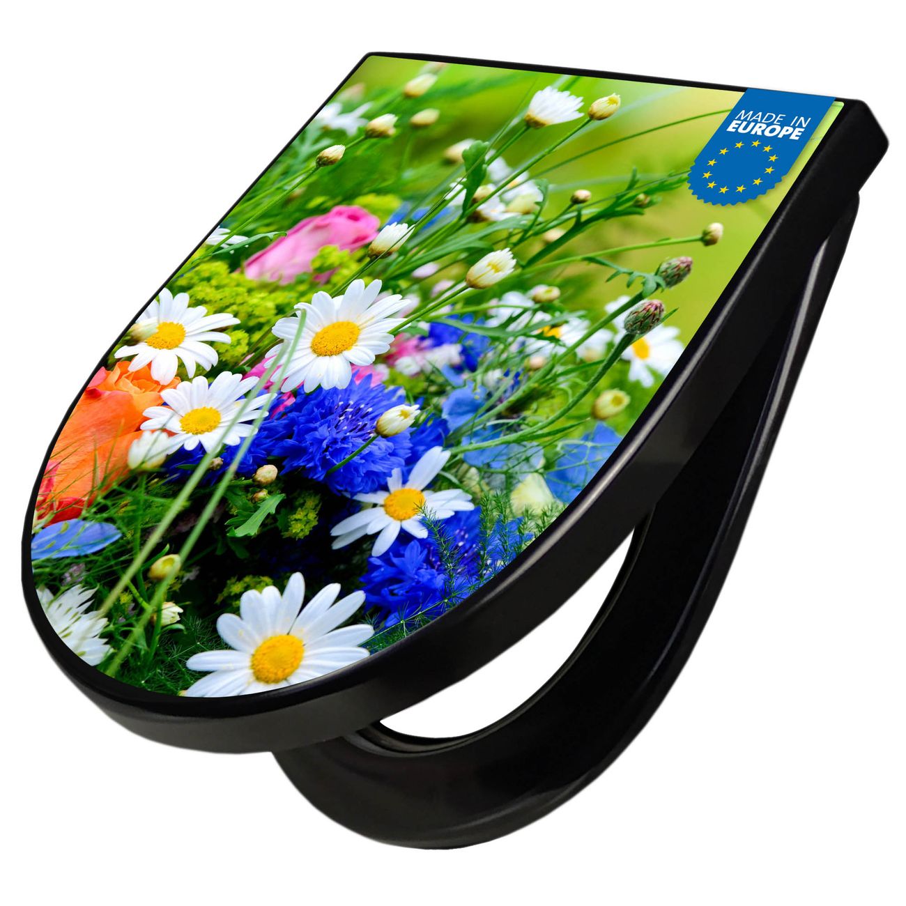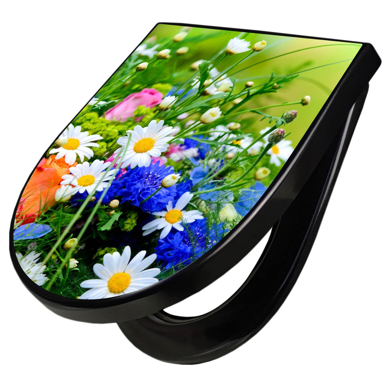 WC Sitz D-Form Schwarz mit Absenkautomatik Motiv Blumenstrauß
