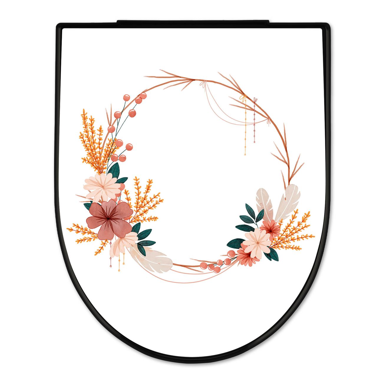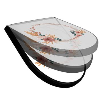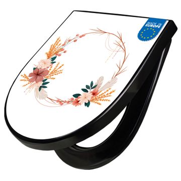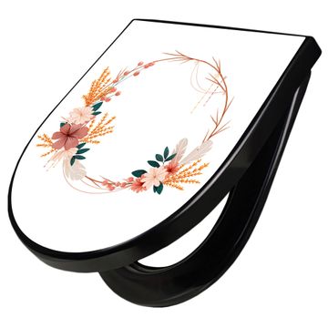 WC Sitz D-Form Schwarz mit Absenkautomatik Motiv Blumiger Kranz