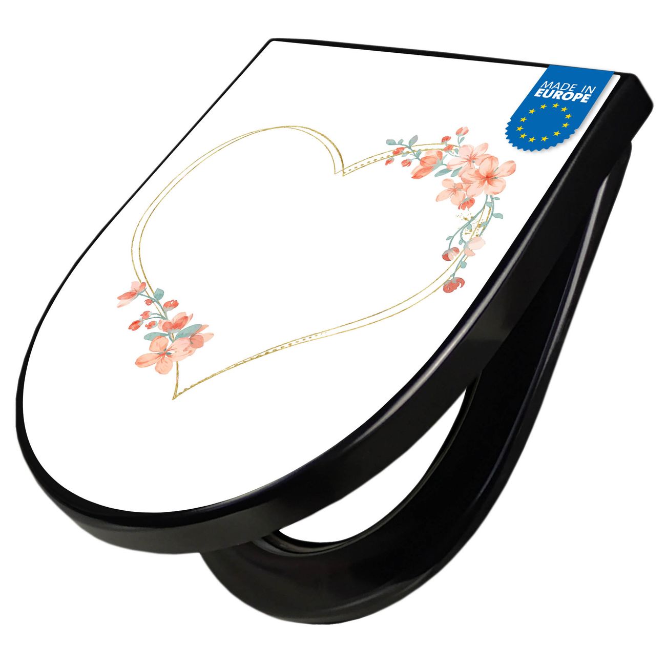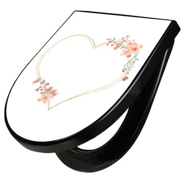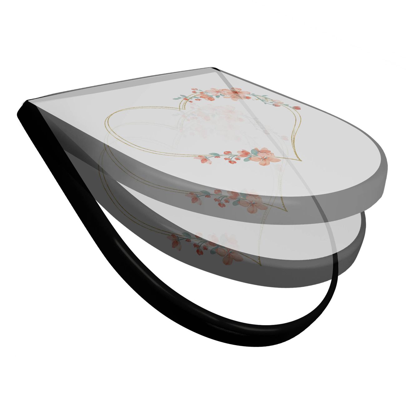 WC Sitz D-Form Schwarz mit Absenkautomatik Motiv Blumiges Herz