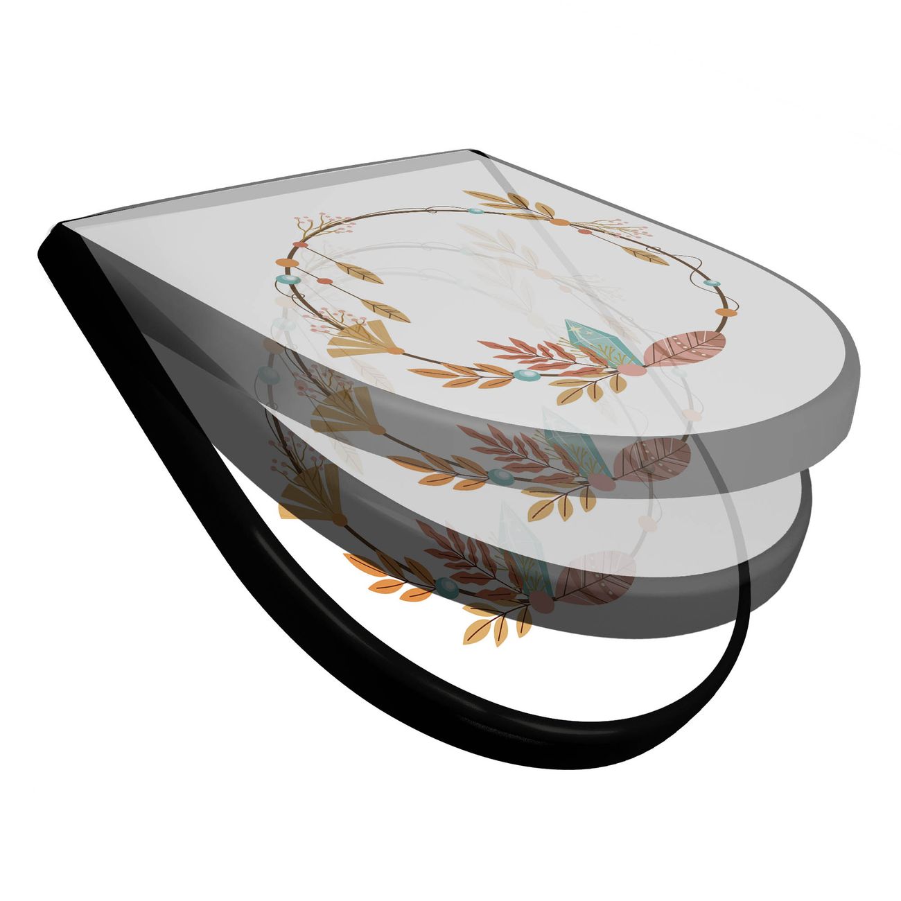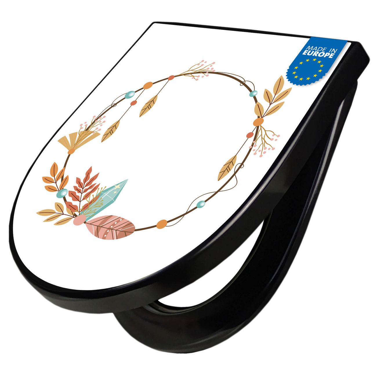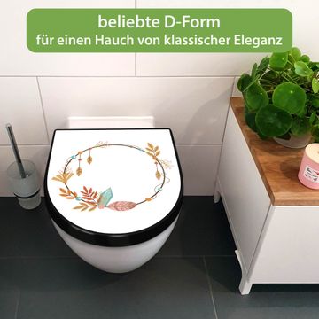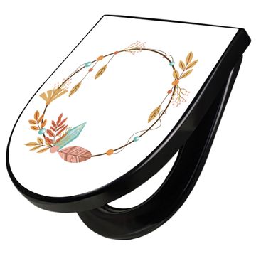 WC Sitz D-Form Schwarz mit Absenkautomatik Motiv Boho Herbstkranz