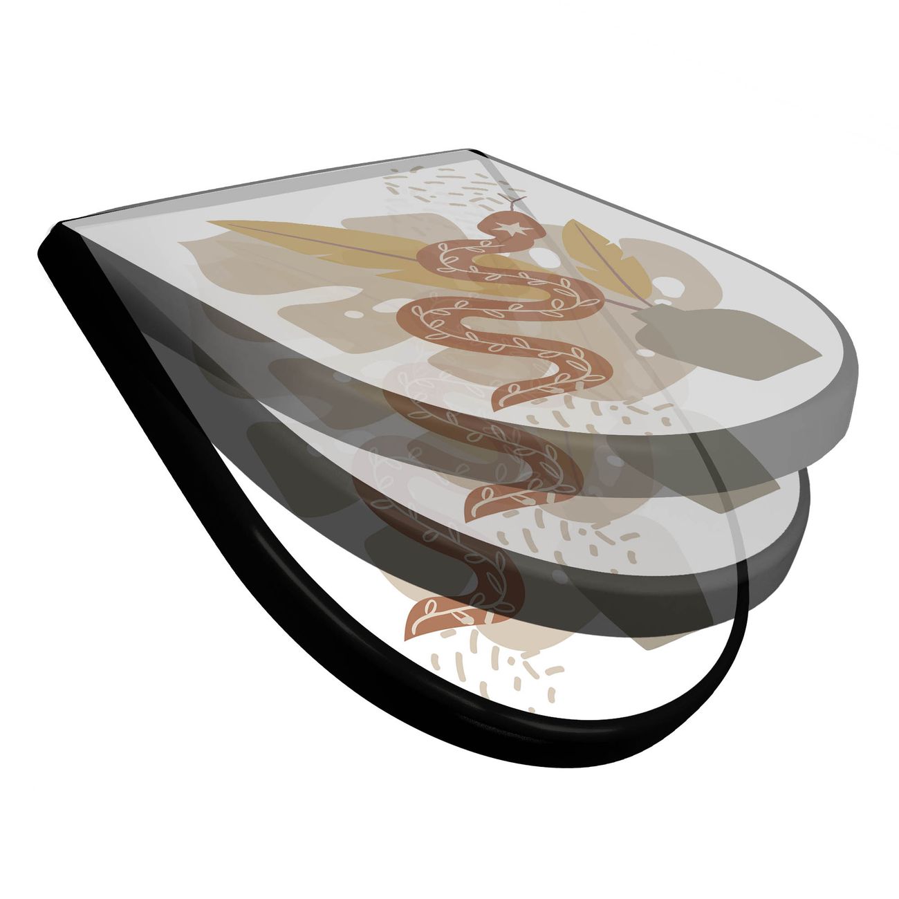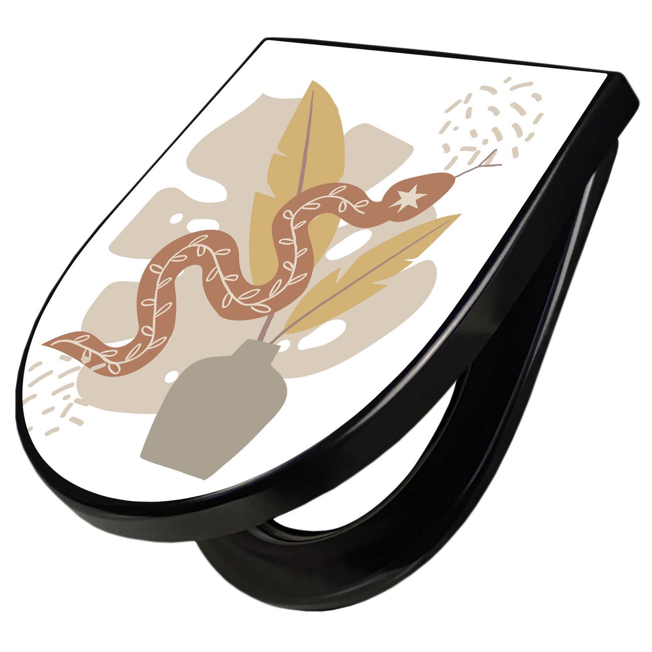 WC Sitz D-Form Schwarz mit Absenkautomatik Motiv Boho Schlange Vase