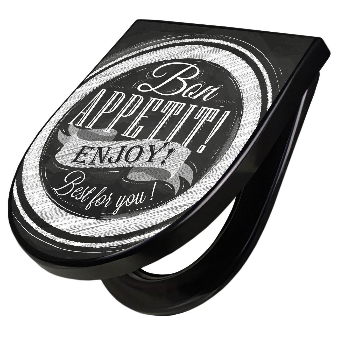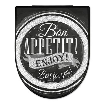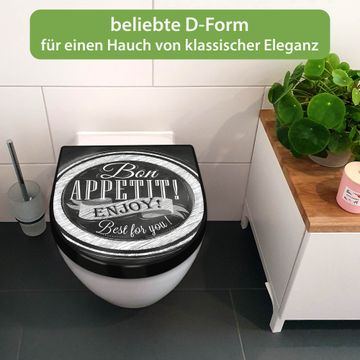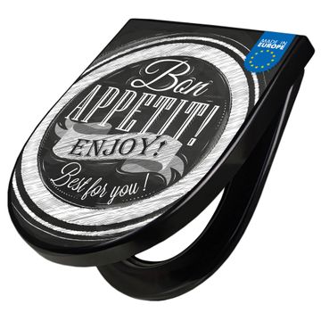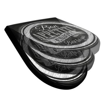 WC Sitz D-Form Schwarz mit Absenkautomatik Motiv Bon Appetit