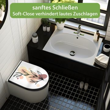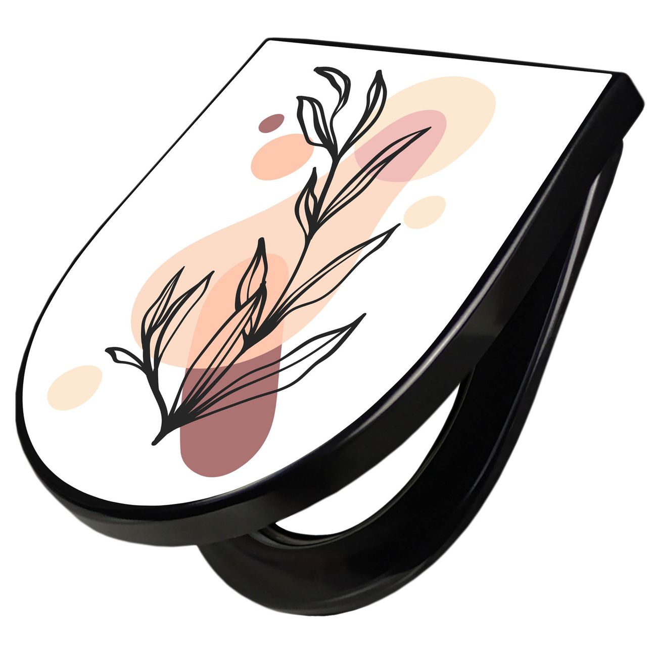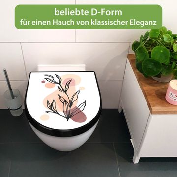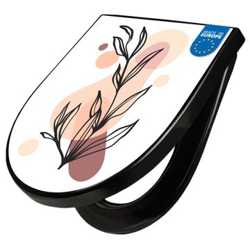 WC Sitz D-Form Schwarz mit Absenkautomatik Motiv Botanische Linienkunst 2