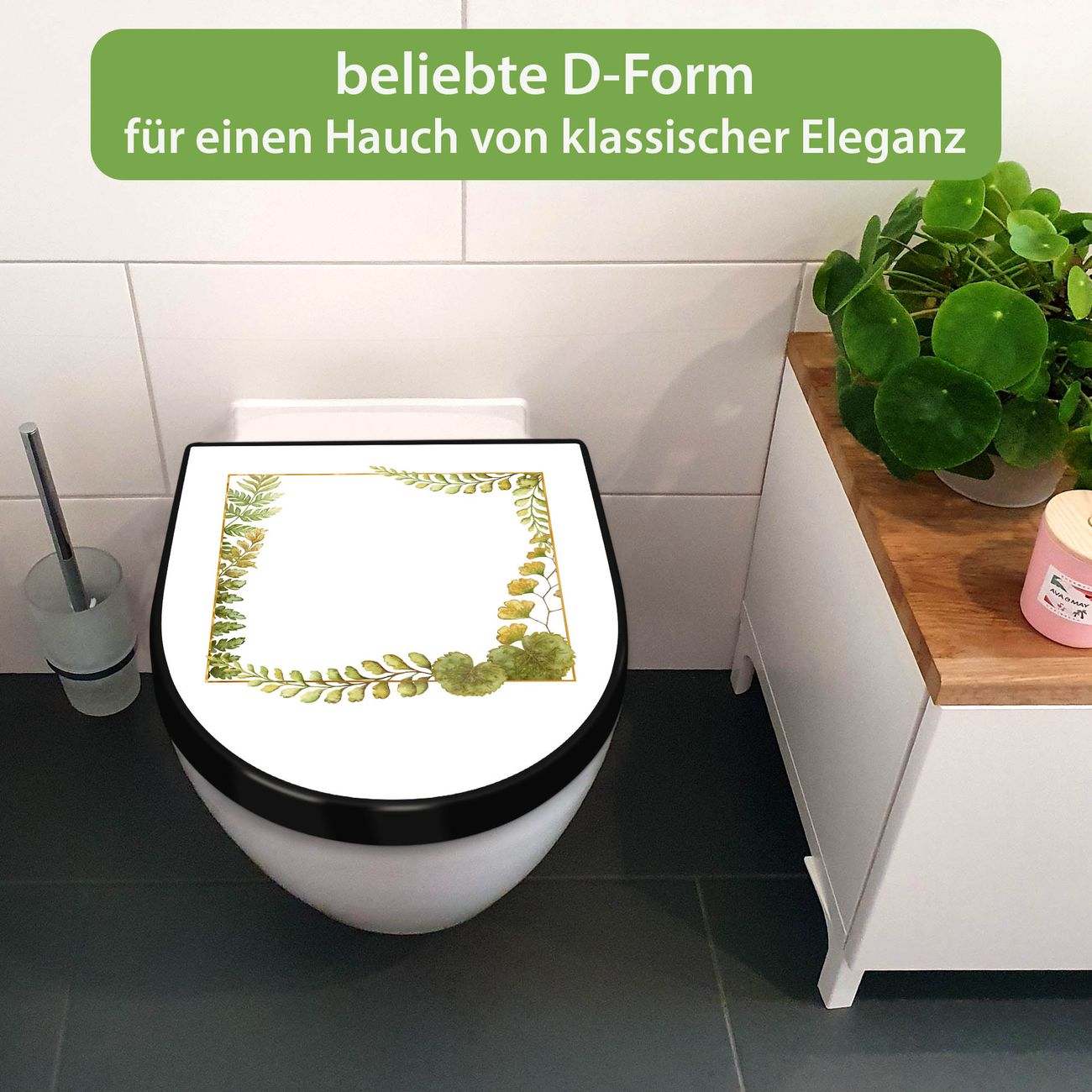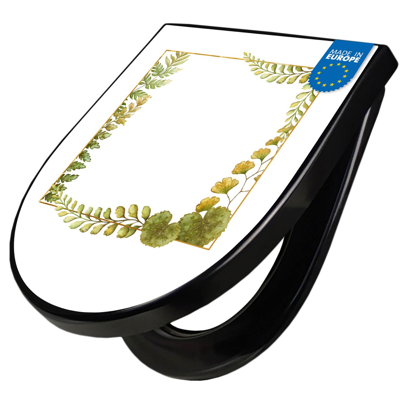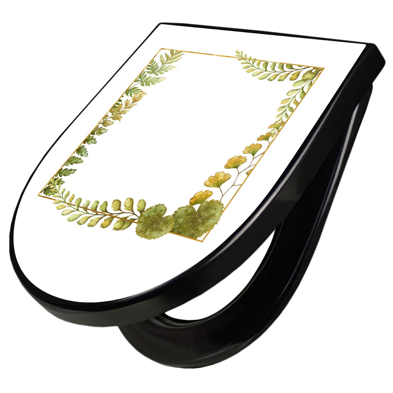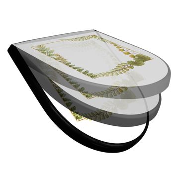 WC Sitz D-Form Schwarz mit Absenkautomatik Motiv Botanischer Rahmen 2