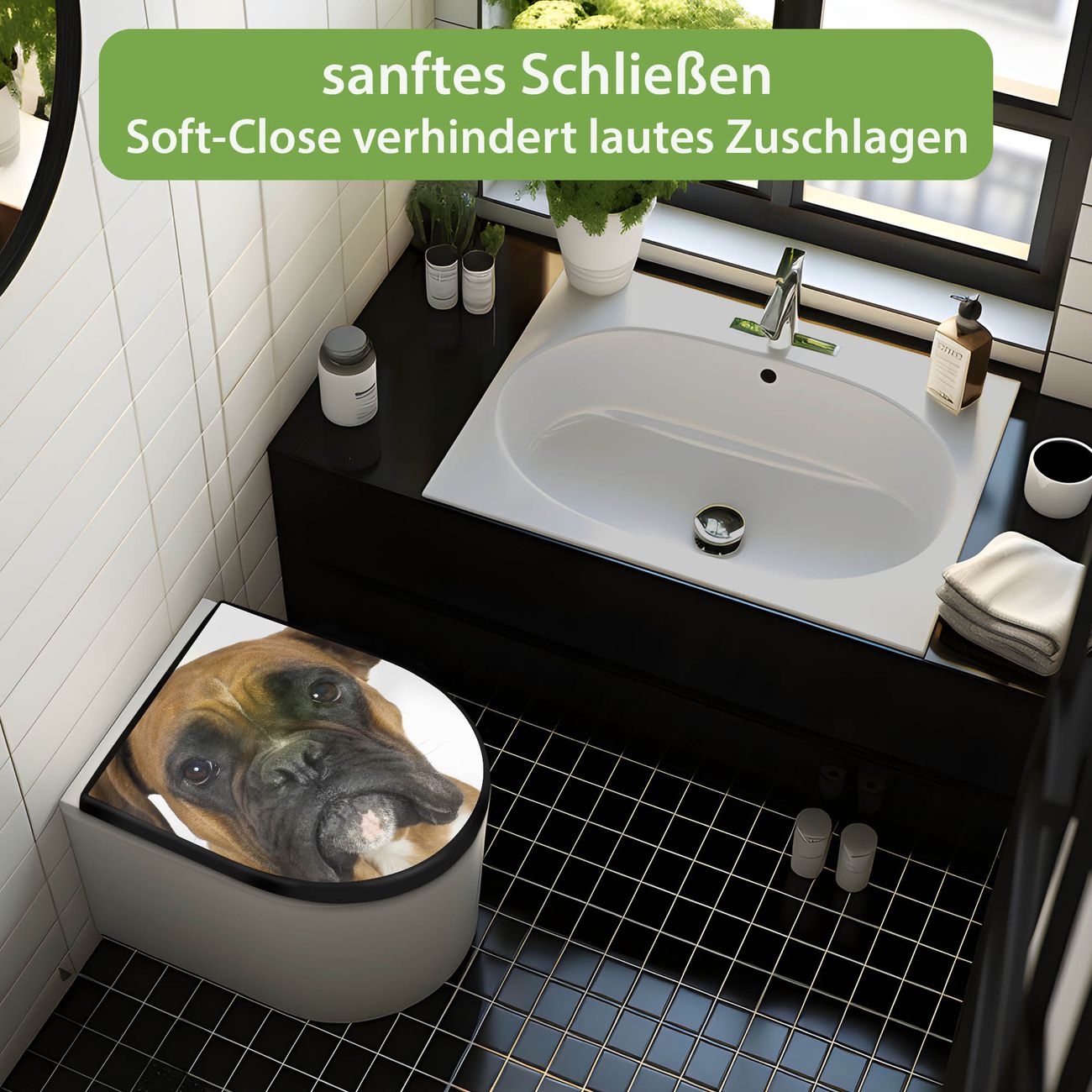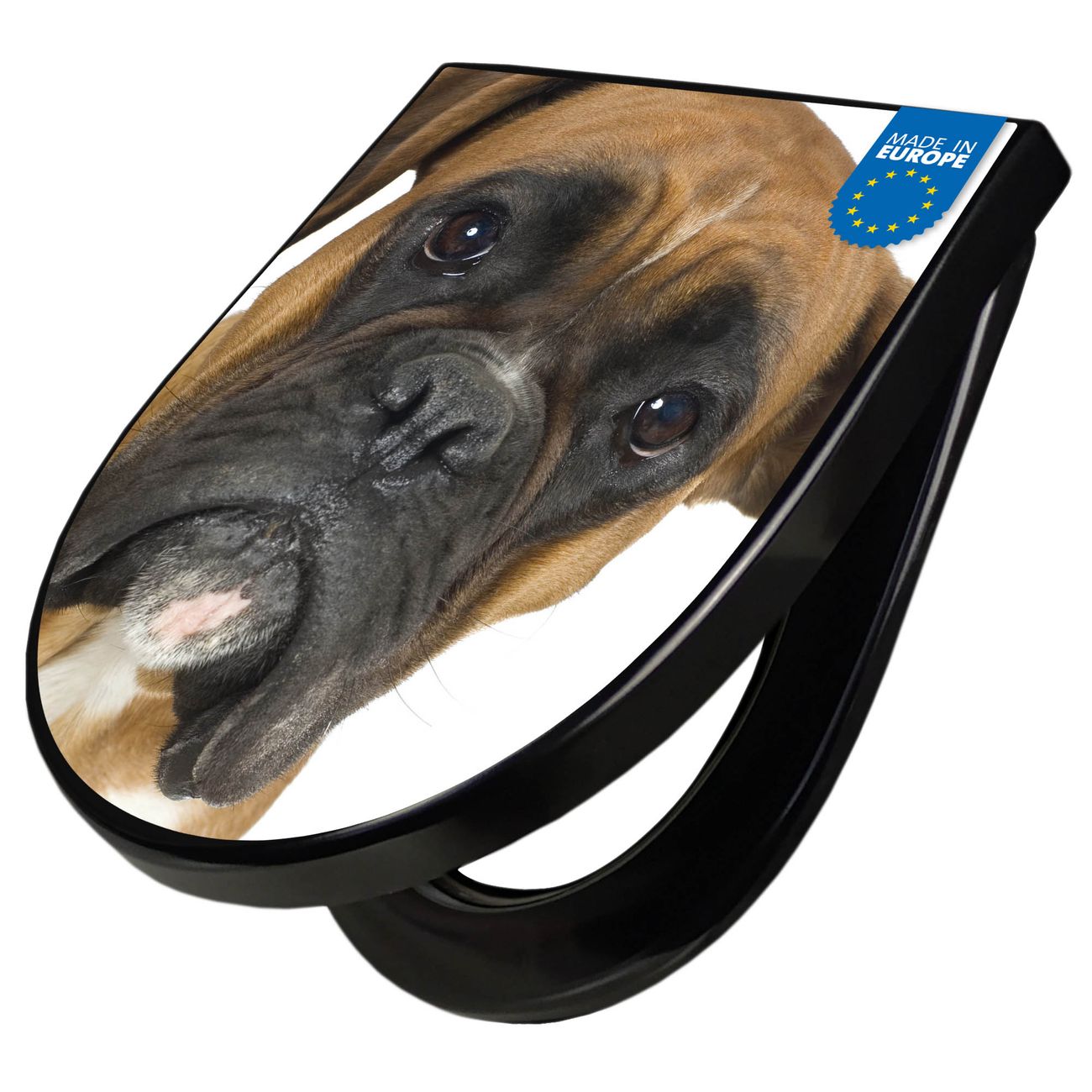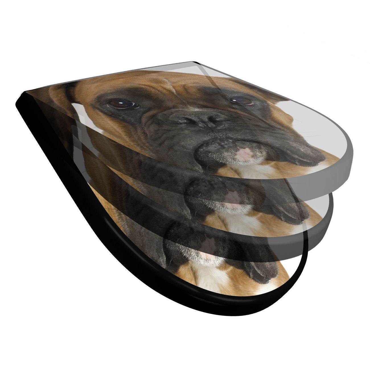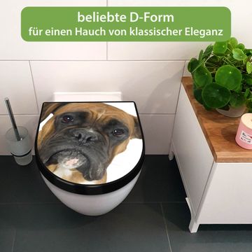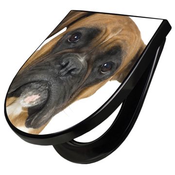 WC Sitz D-Form Schwarz mit Absenkautomatik Motiv Boxer