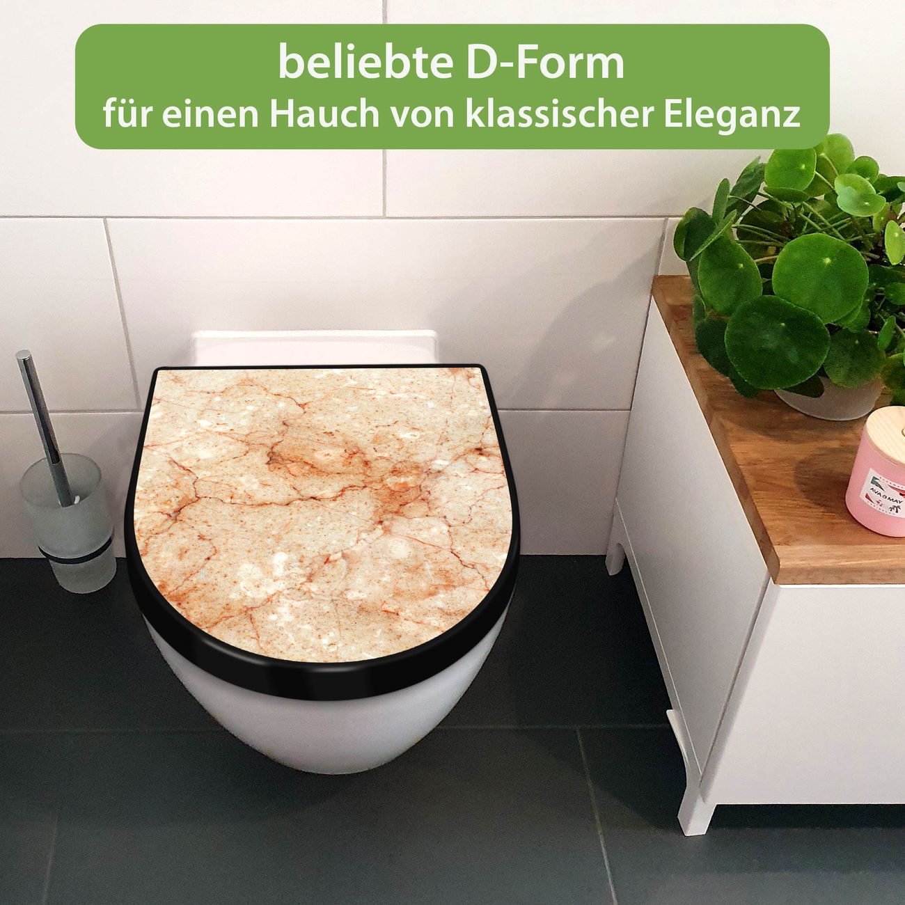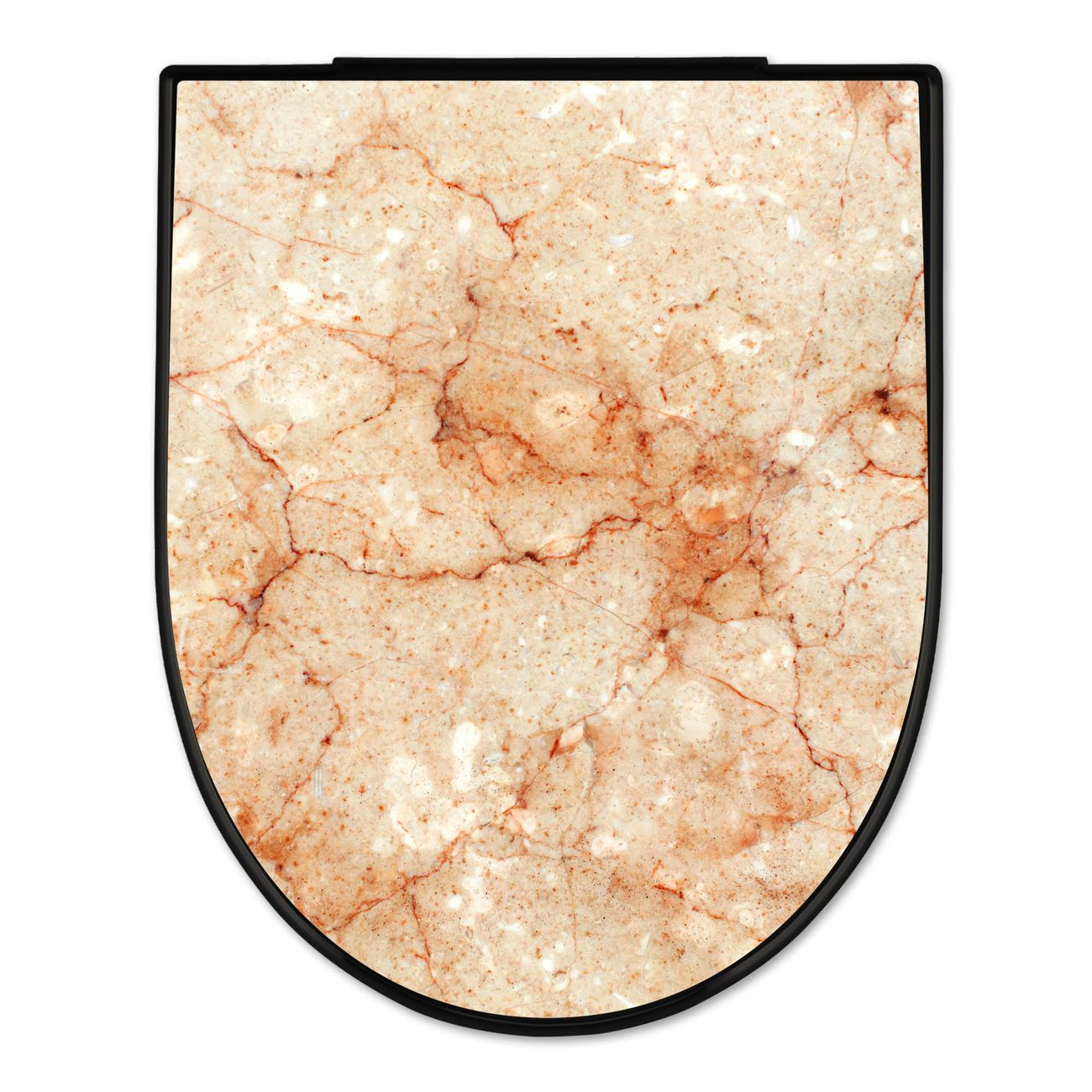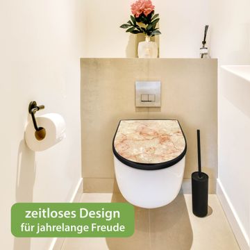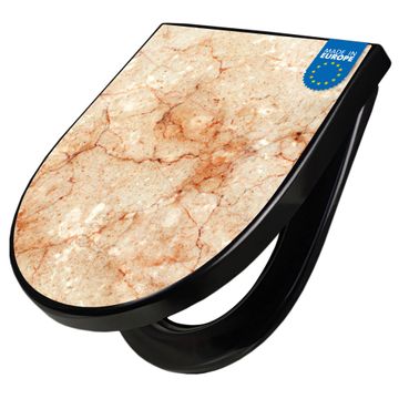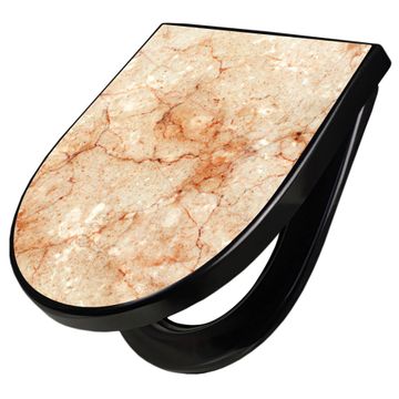 WC Sitz D-Form Schwarz mit Absenkautomatik Motiv Brauner Marmor Struktur