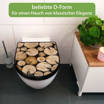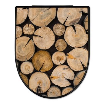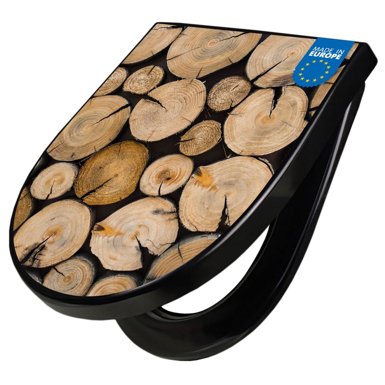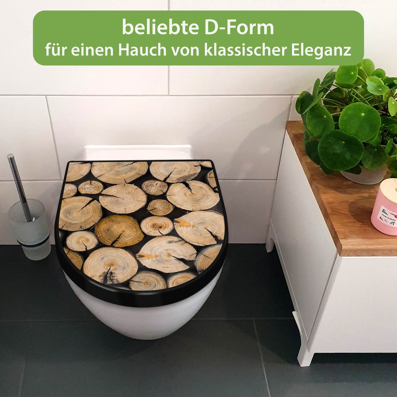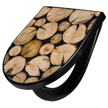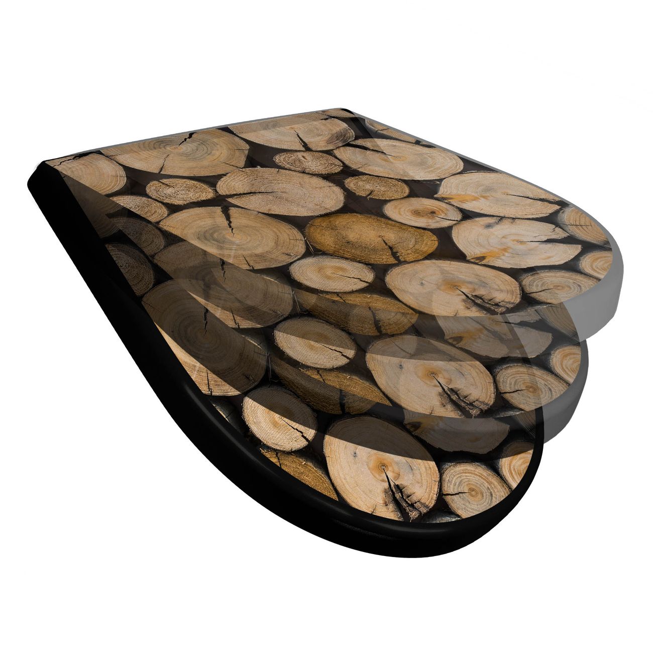 WC Sitz D-Form Schwarz mit Absenkautomatik Motiv Brennholz