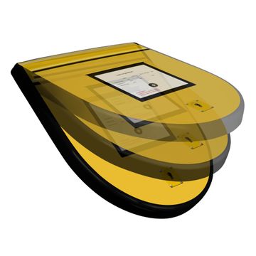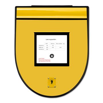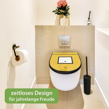 WC Sitz D-Form Schwarz mit Absenkautomatik Motiv Briefkasten Gelb
