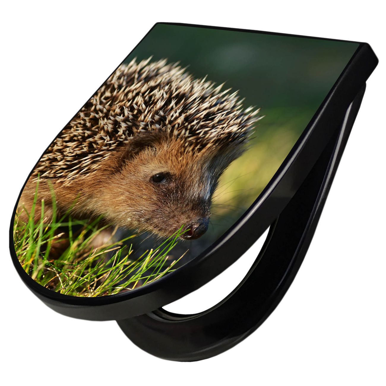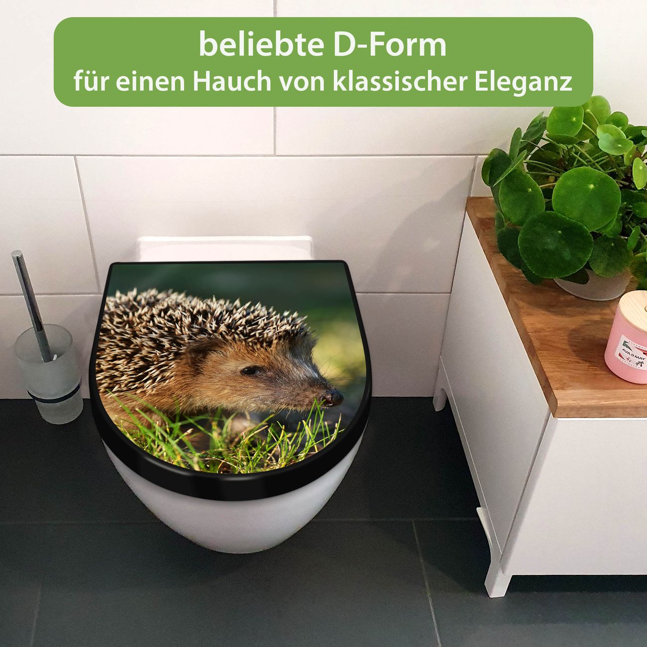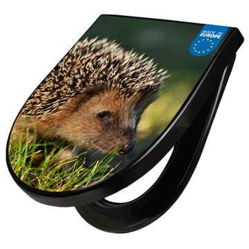 WC Sitz D-Form Schwarz mit Absenkautomatik Motiv Bruno
