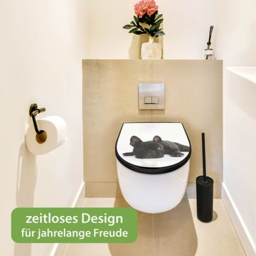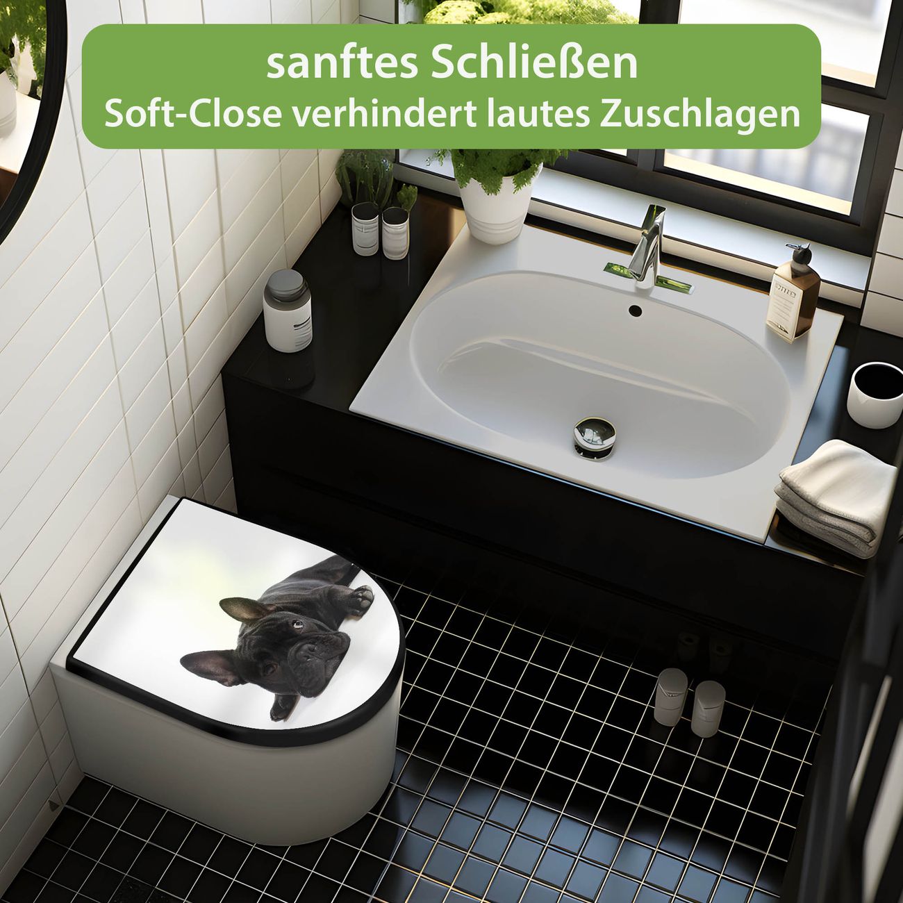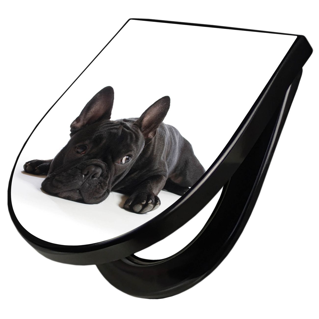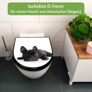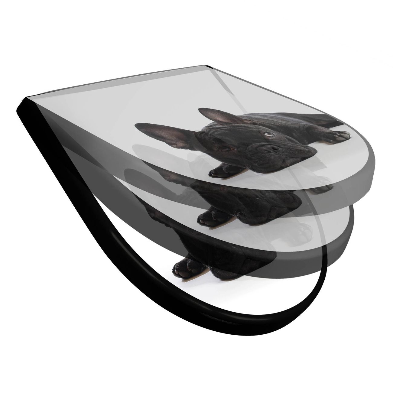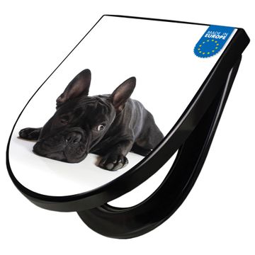 WC Sitz D-Form Schwarz mit Absenkautomatik Motiv Bulldogge