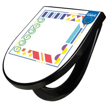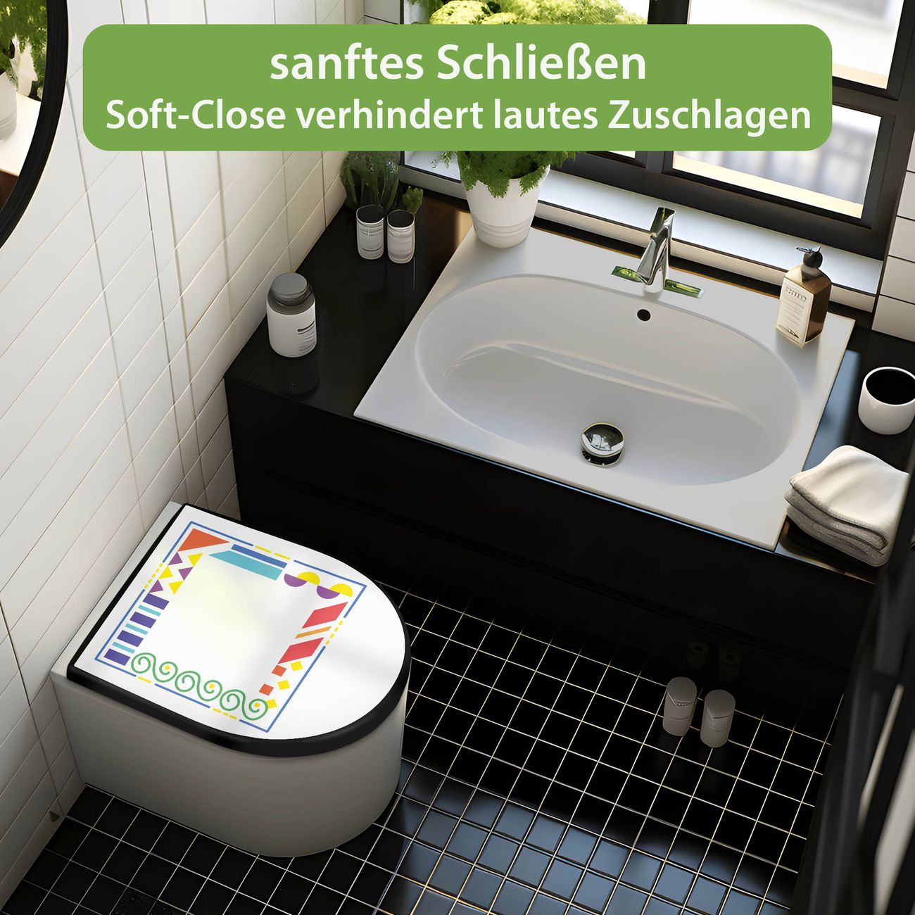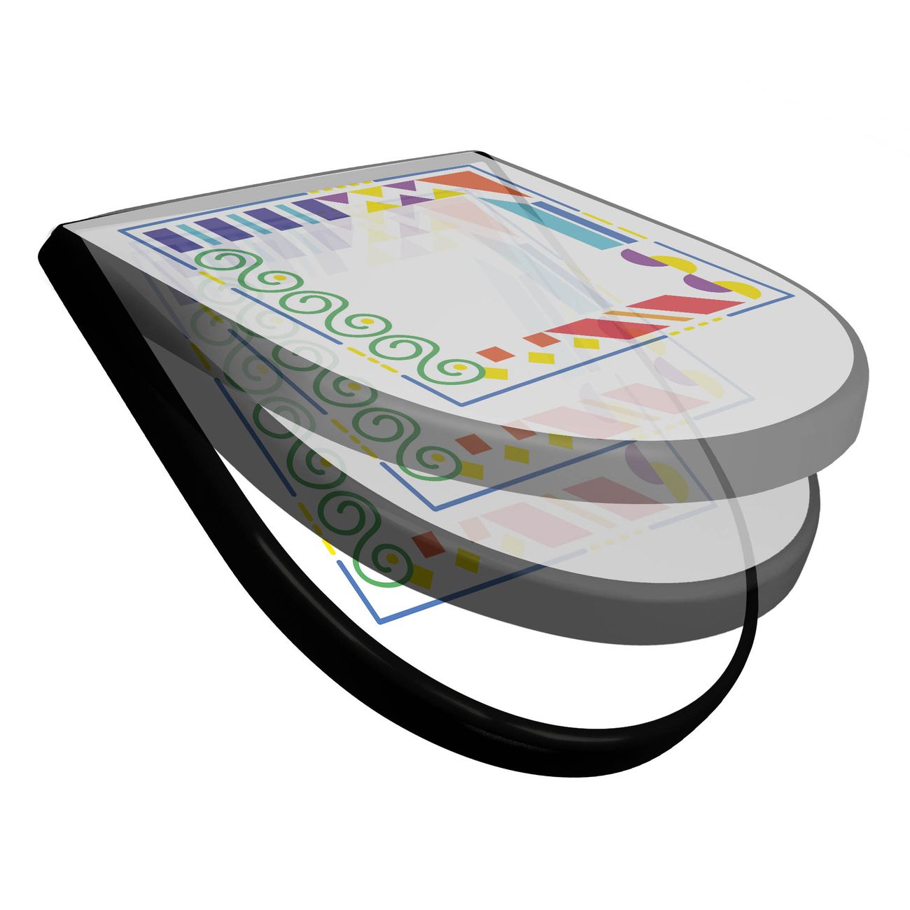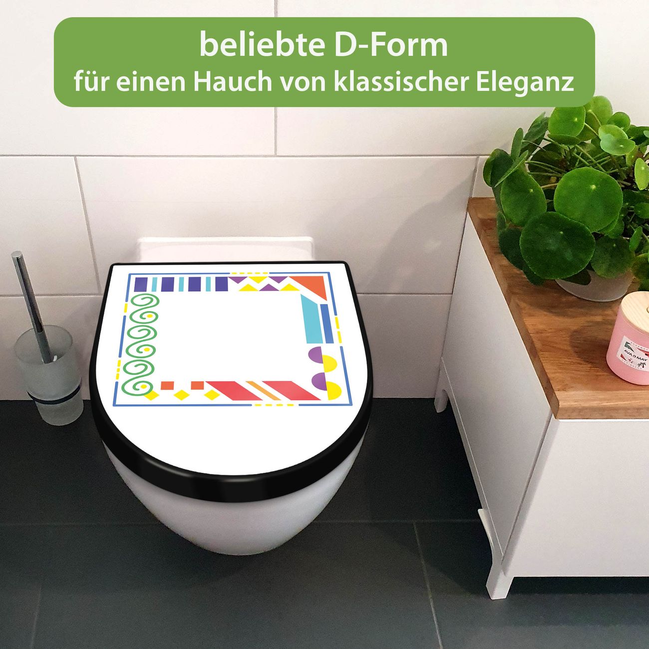 WC Sitz D-Form Schwarz mit Absenkautomatik Motiv Bunte Ecken