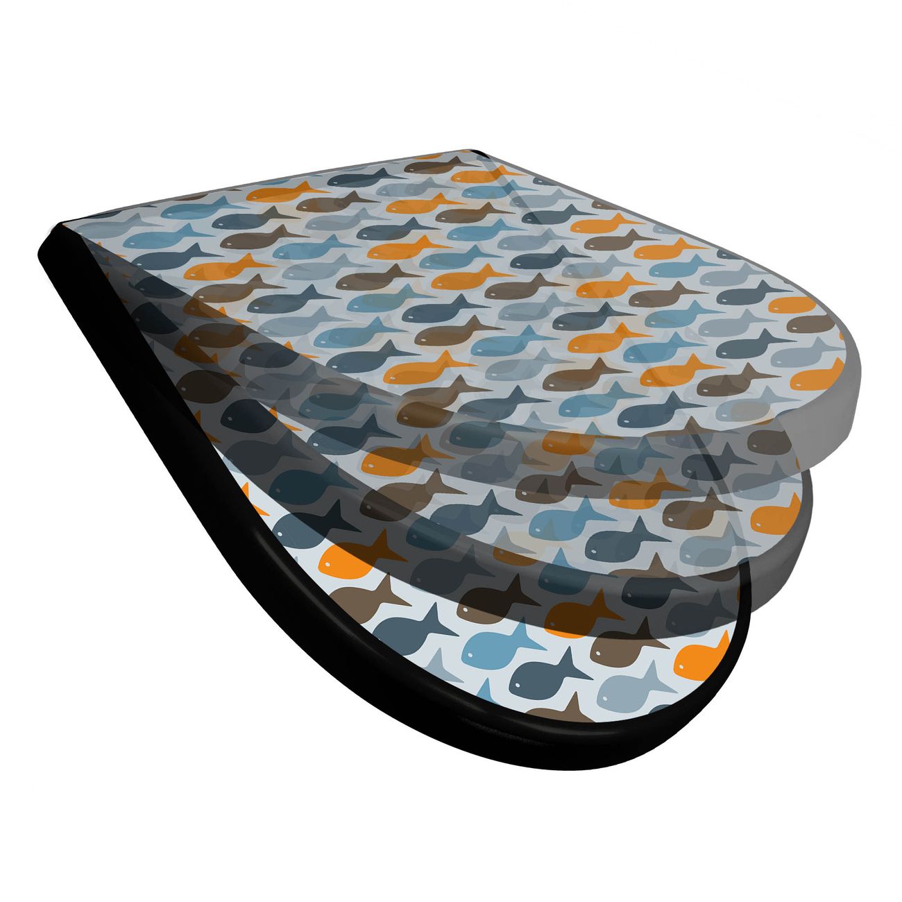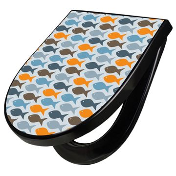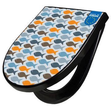WC Sitz D-Form Schwarz mit Absenkautomatik Motiv Bunte Fische