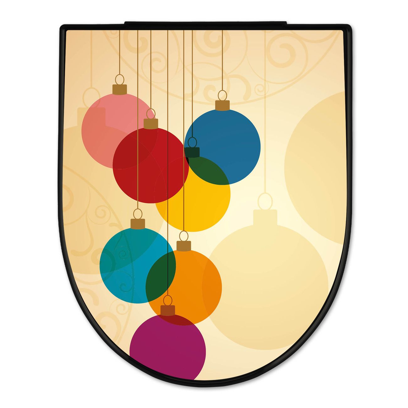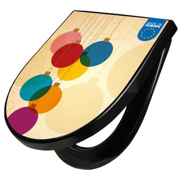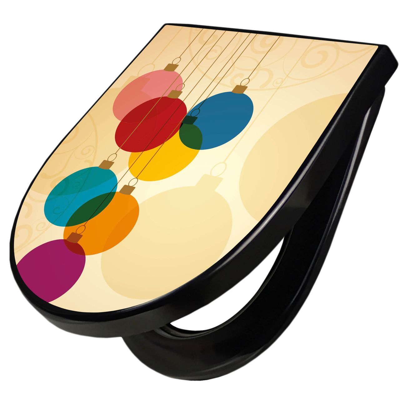 WC Sitz D-Form Schwarz mit Absenkautomatik Motiv Bunte Kugeln