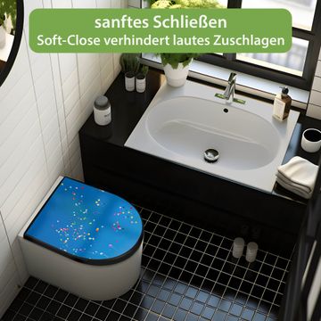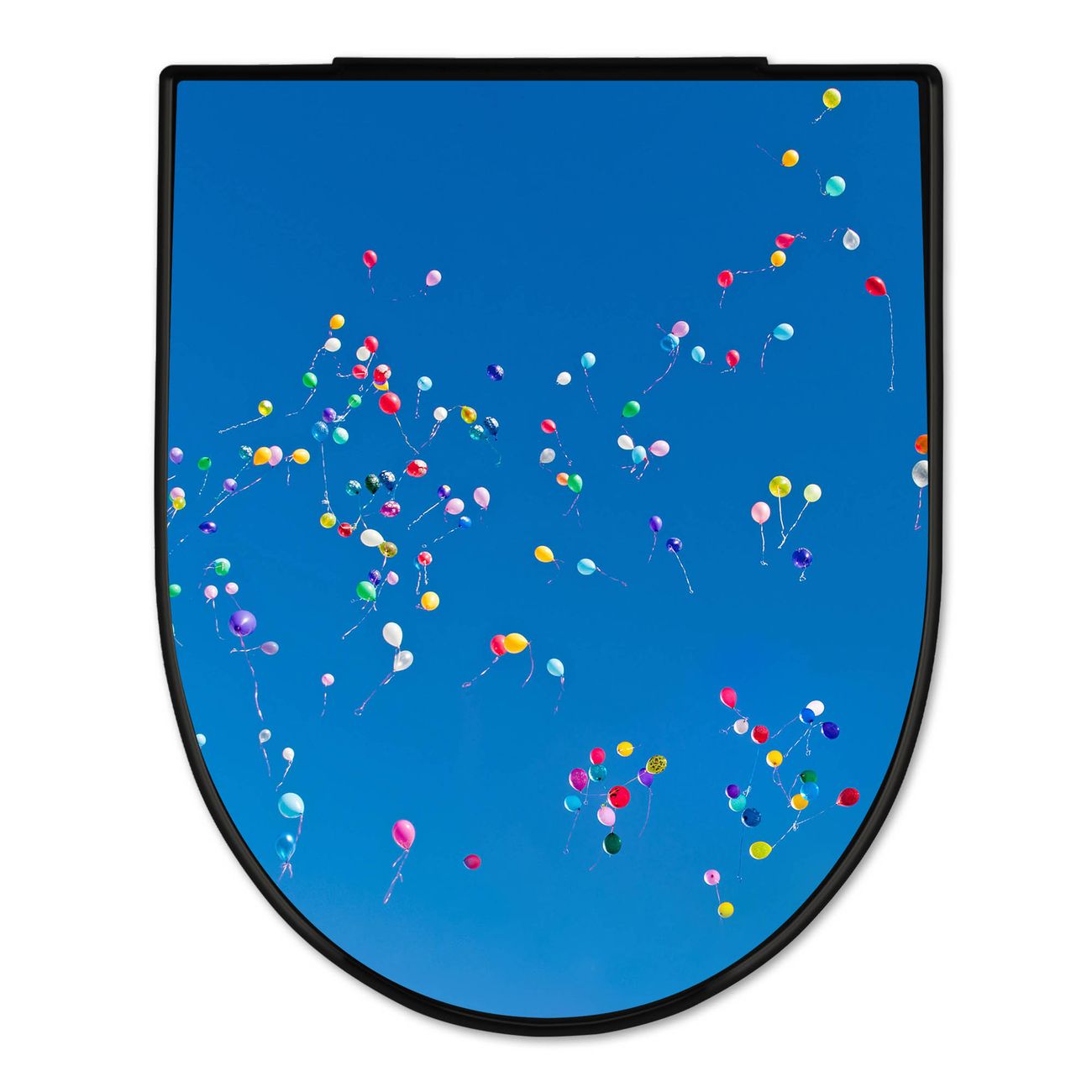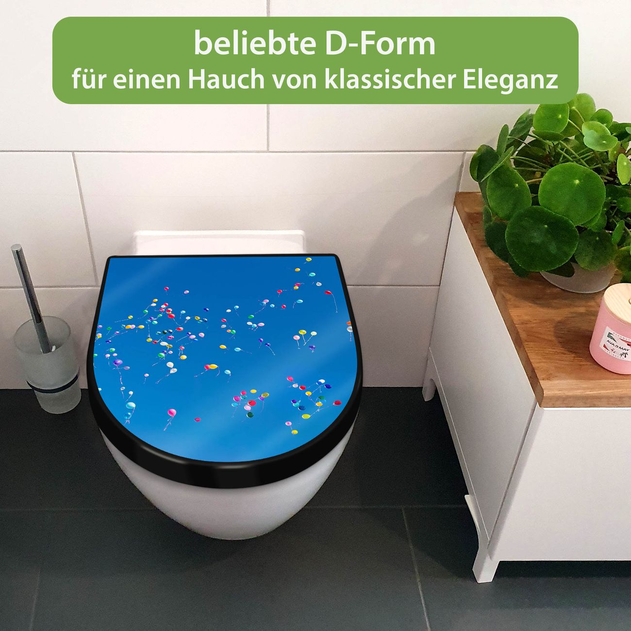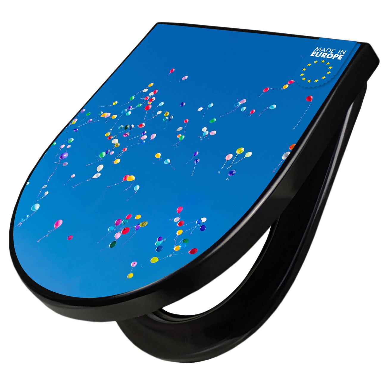 WC Sitz D-Form Schwarz mit Absenkautomatik Motiv Bunte Luftballons