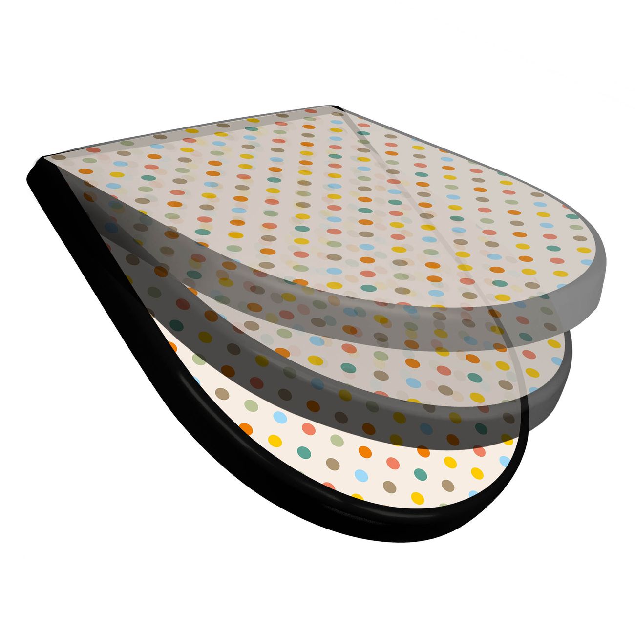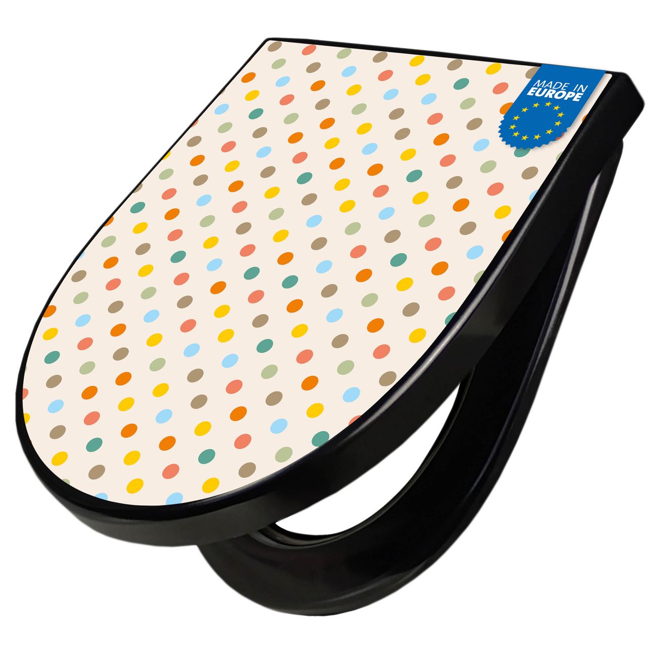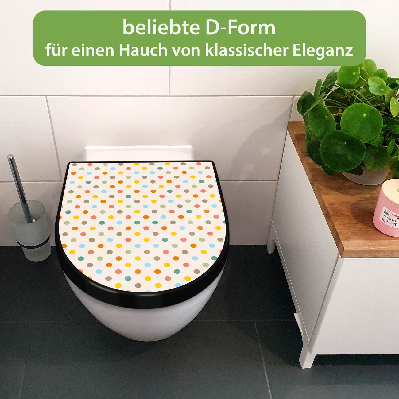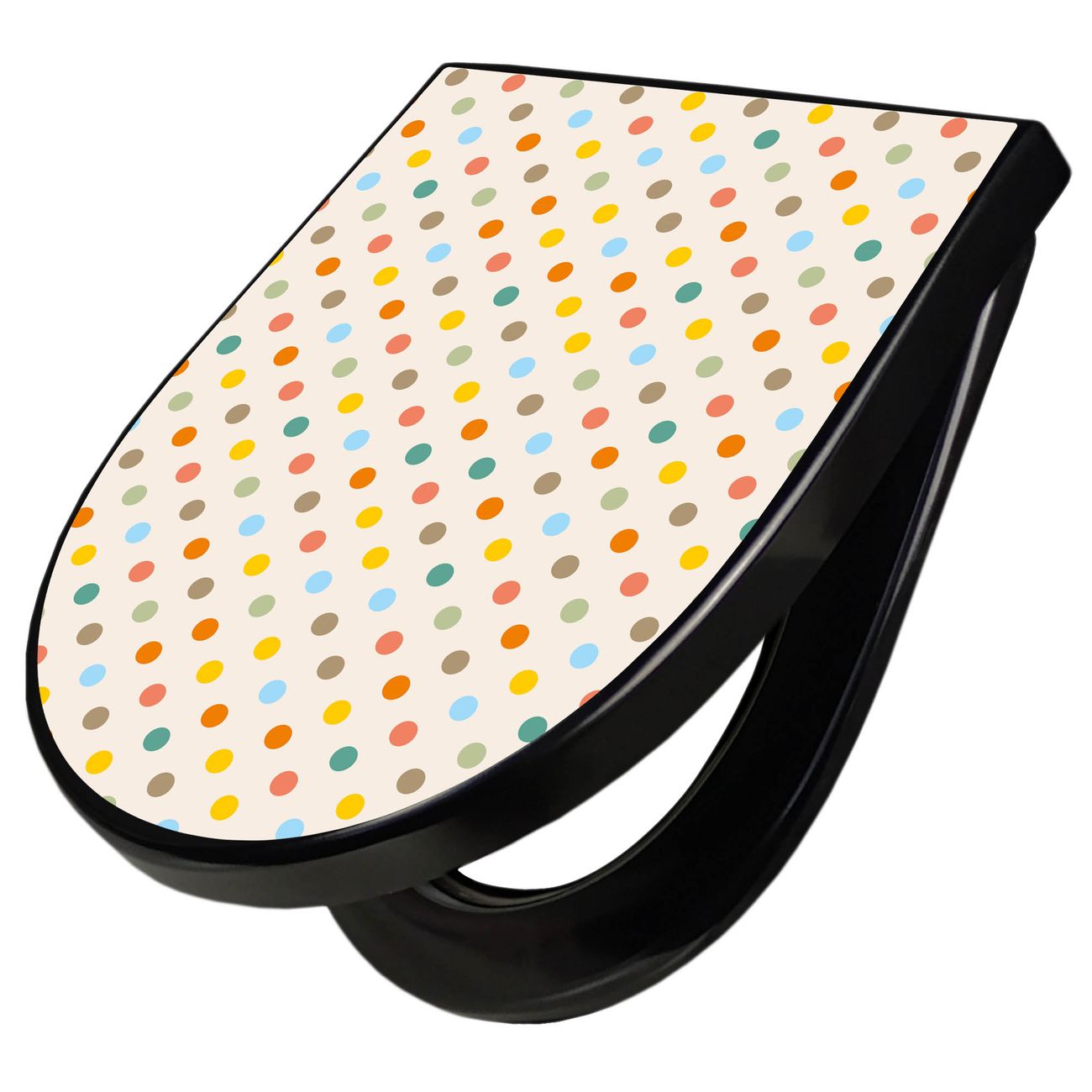 WC Sitz D-Form Schwarz mit Absenkautomatik Motiv Bunte Punkte