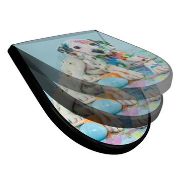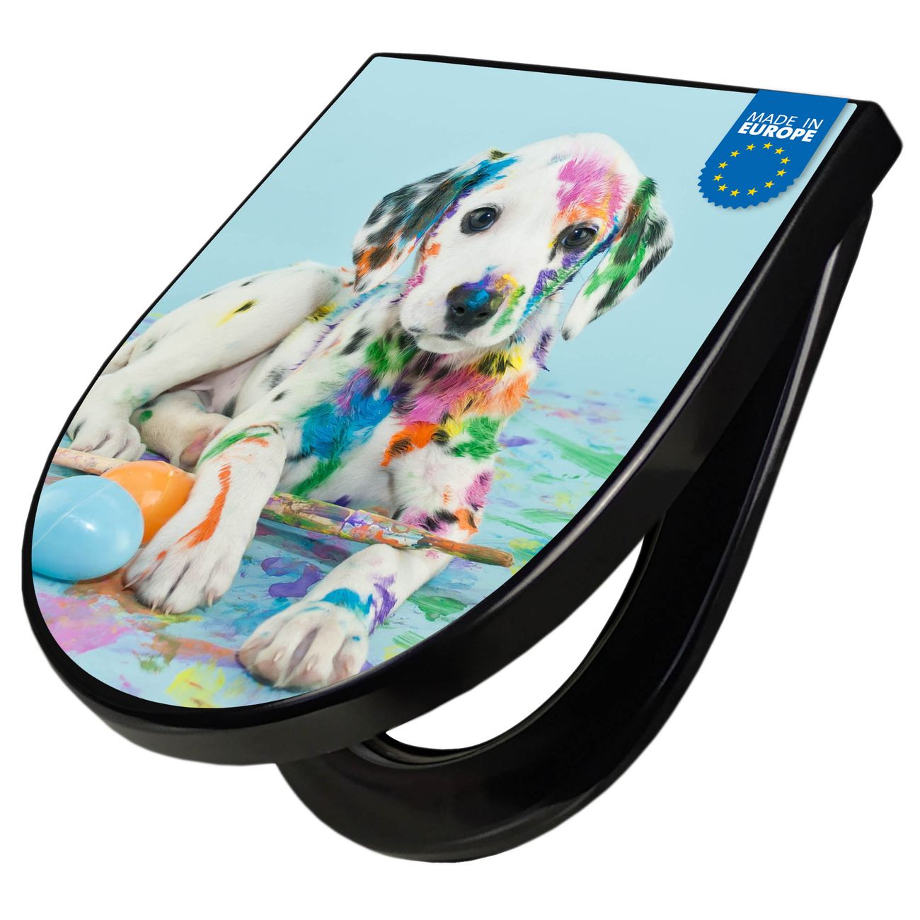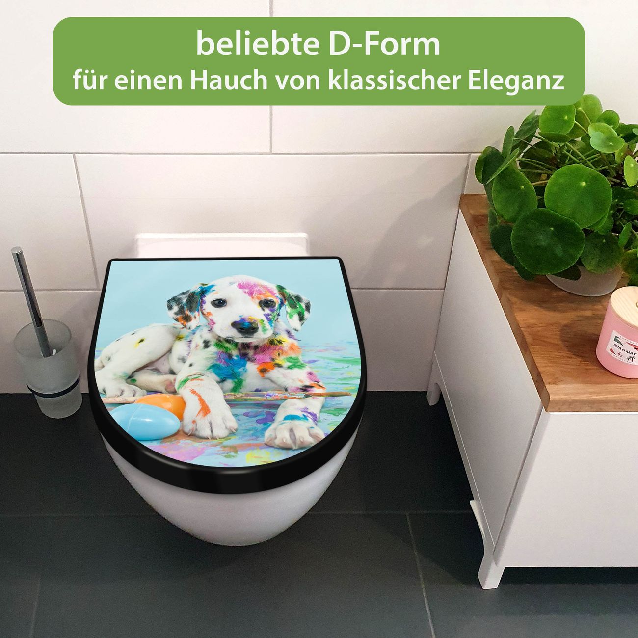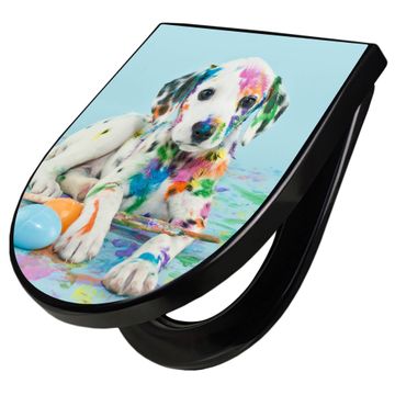 WC Sitz D-Form Schwarz mit Absenkautomatik Motiv Bunter Dalmatiner