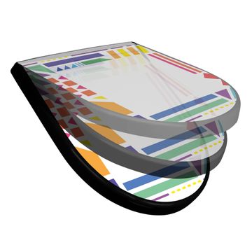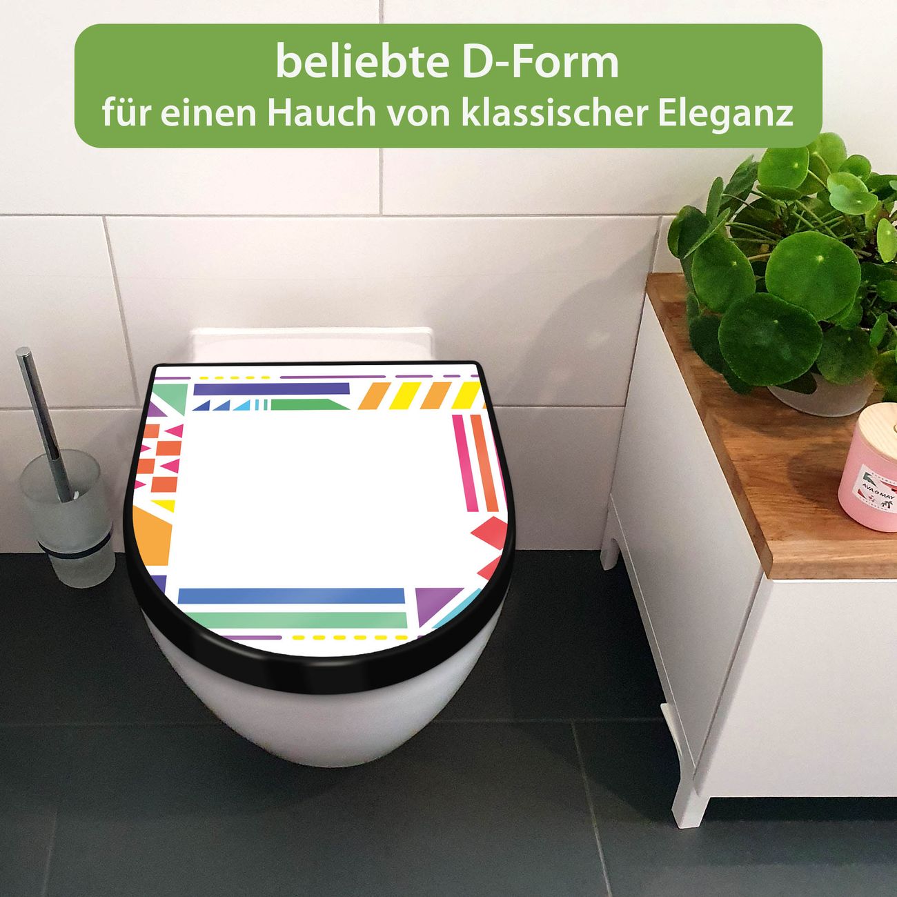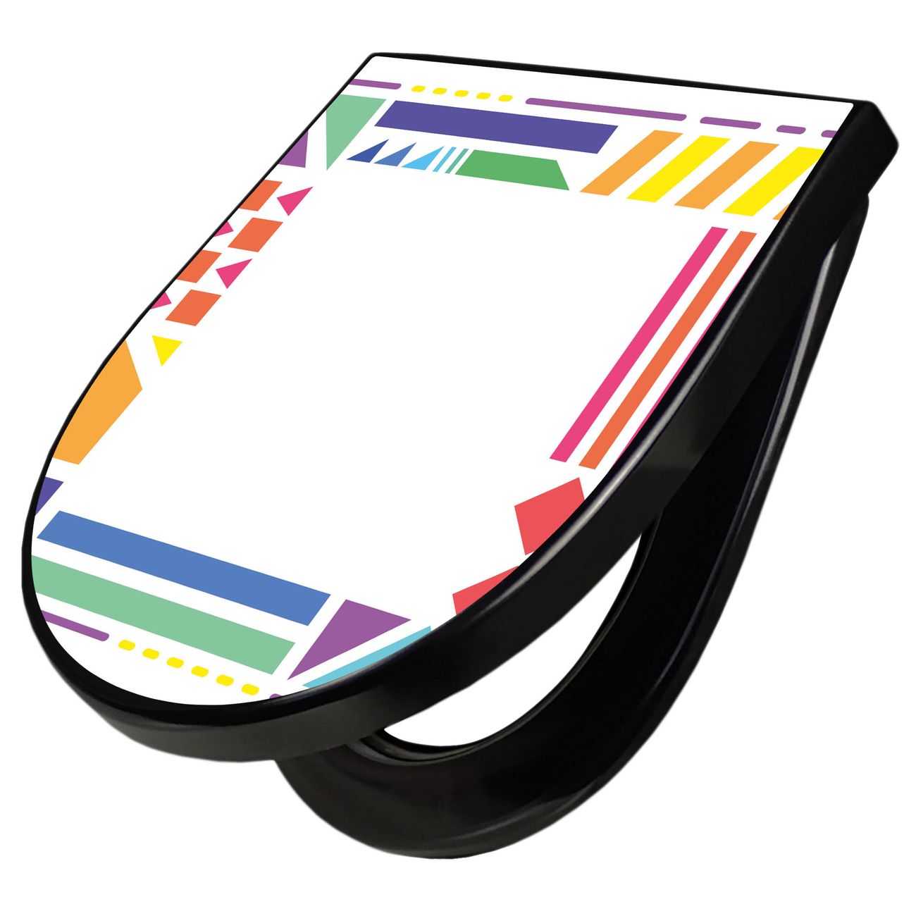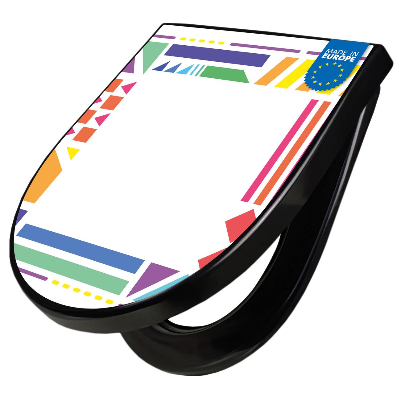 WC Sitz D-Form Schwarz mit Absenkautomatik Motiv Bunter Geometrischer Rahmen 2
