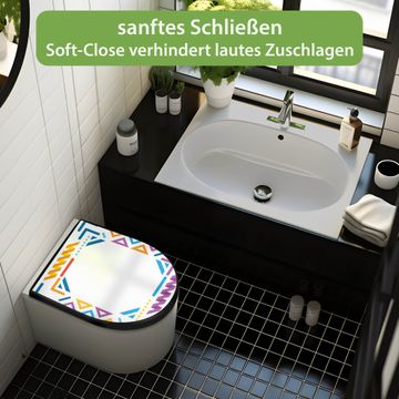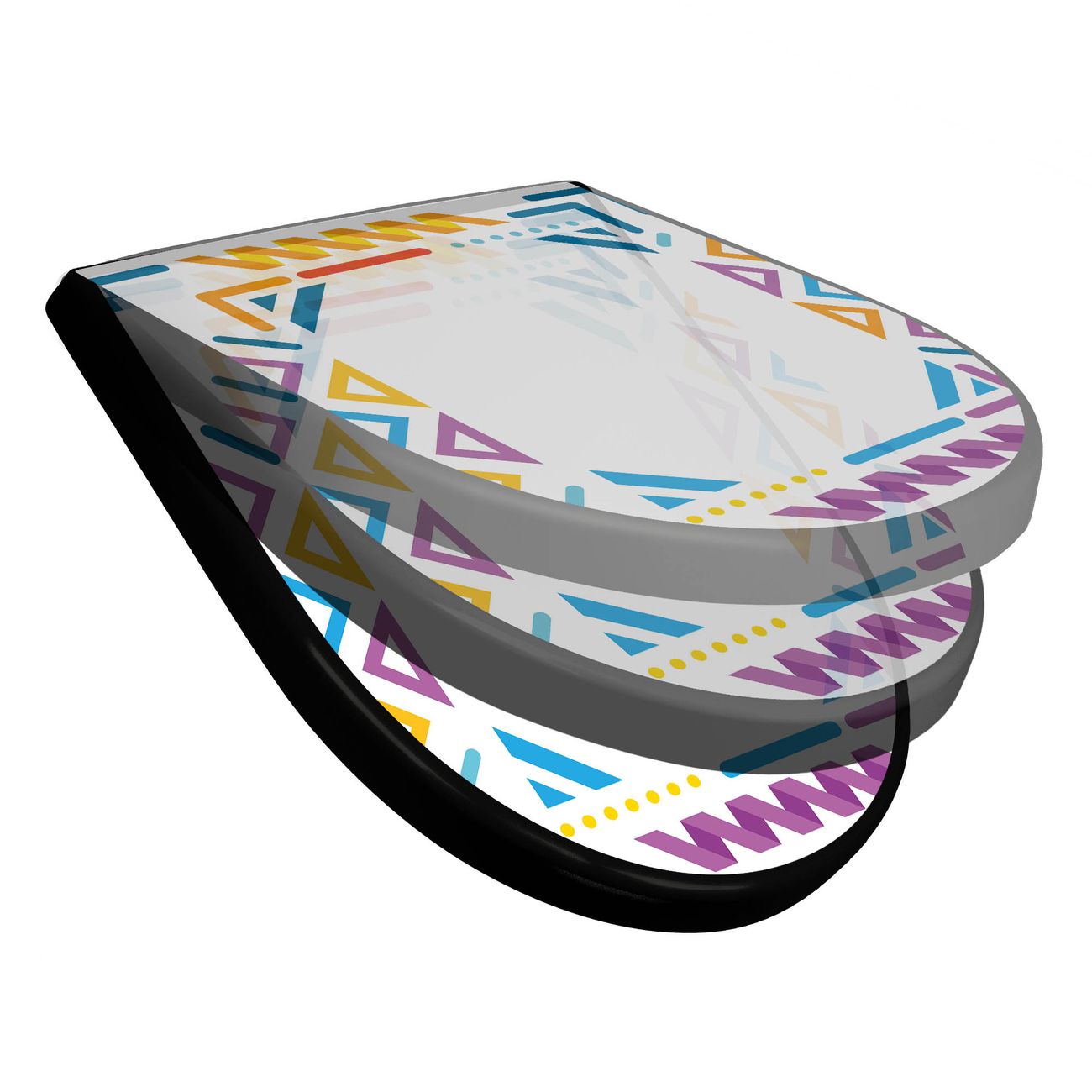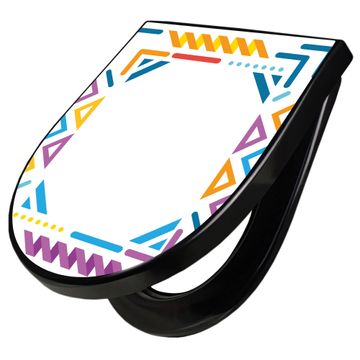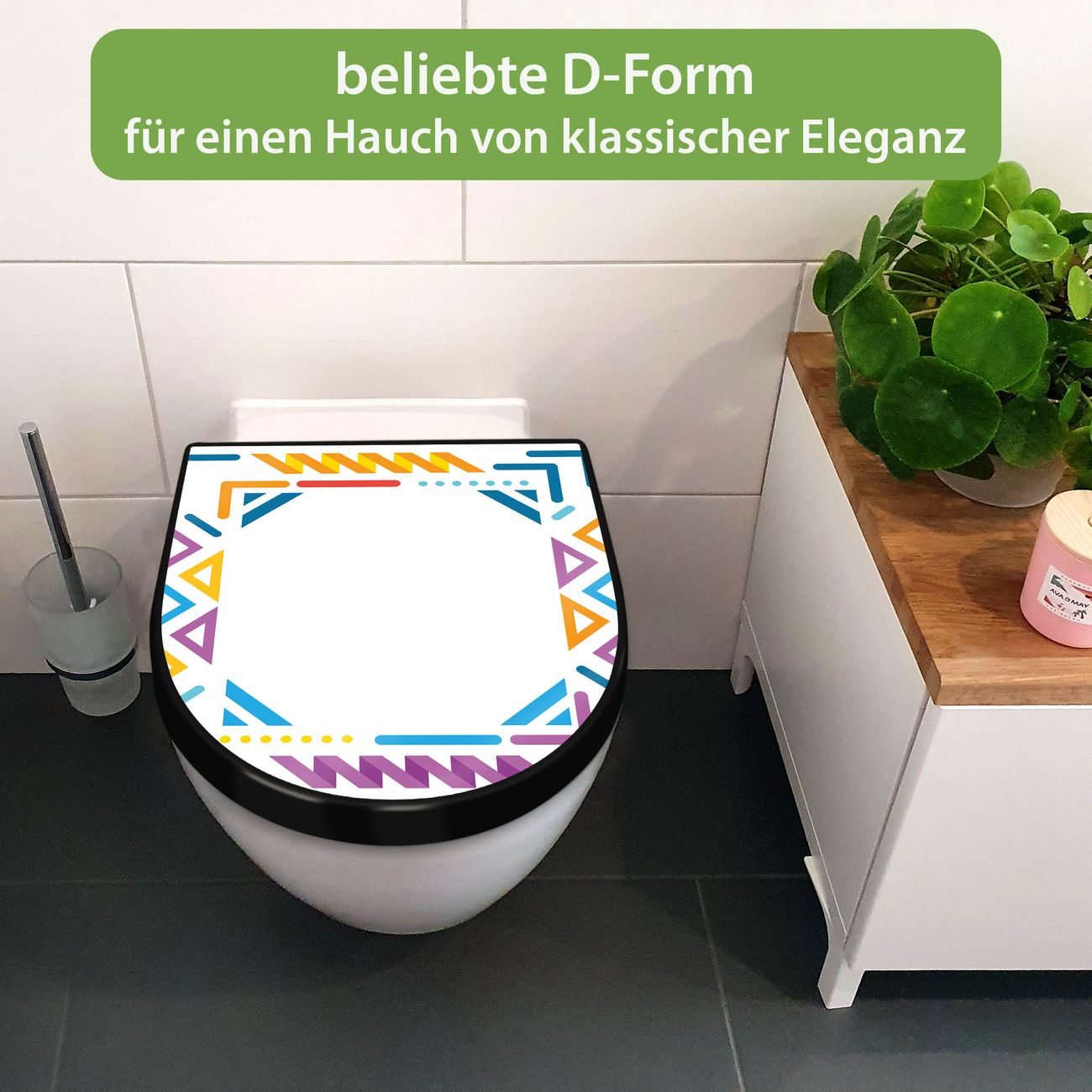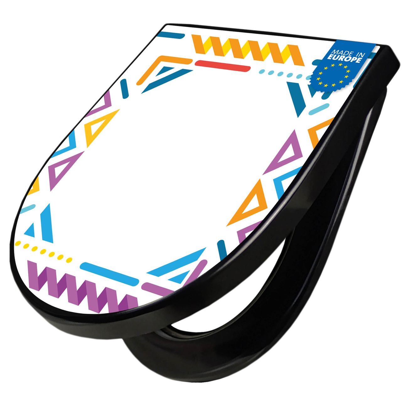 WC Sitz D-Form Schwarz mit Absenkautomatik Motiv Bunter Geometrischer Rahmen