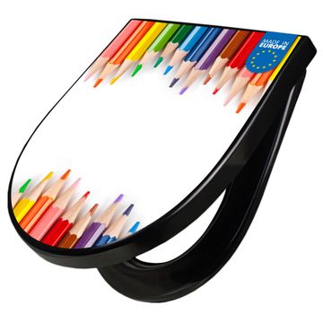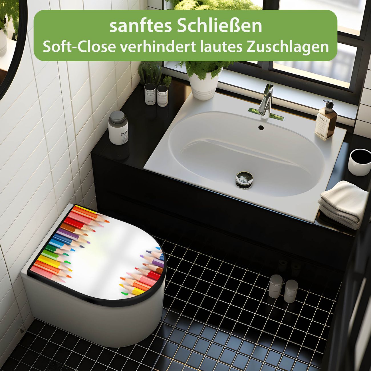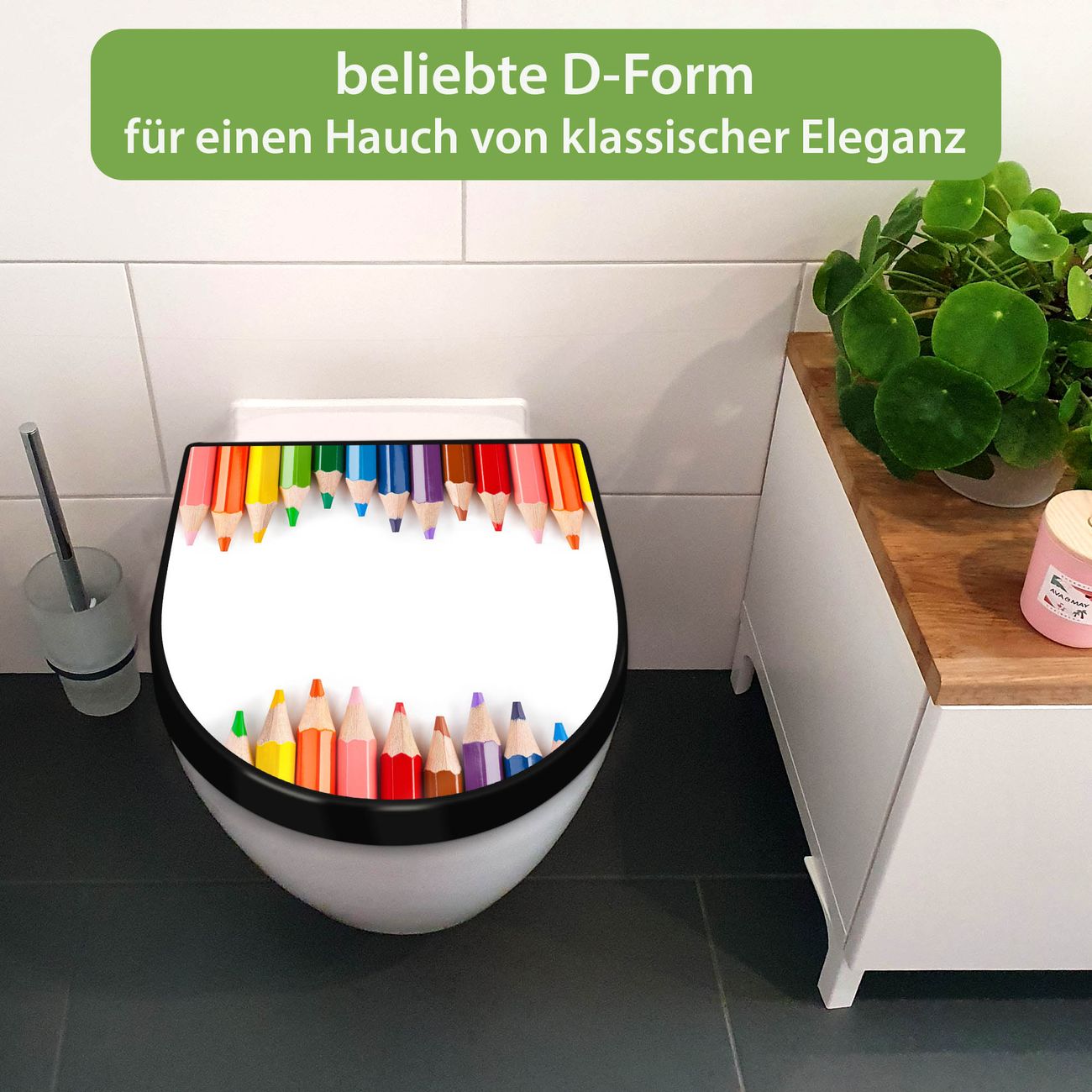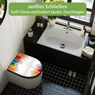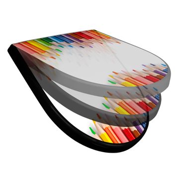 WC Sitz D-Form Schwarz mit Absenkautomatik Motiv Buntstifte
