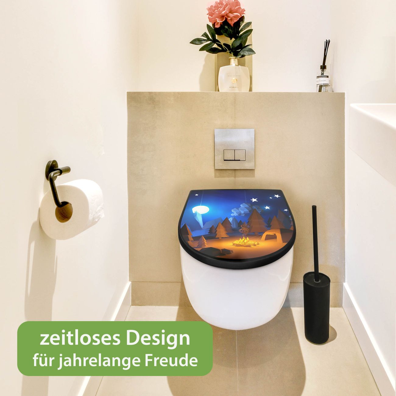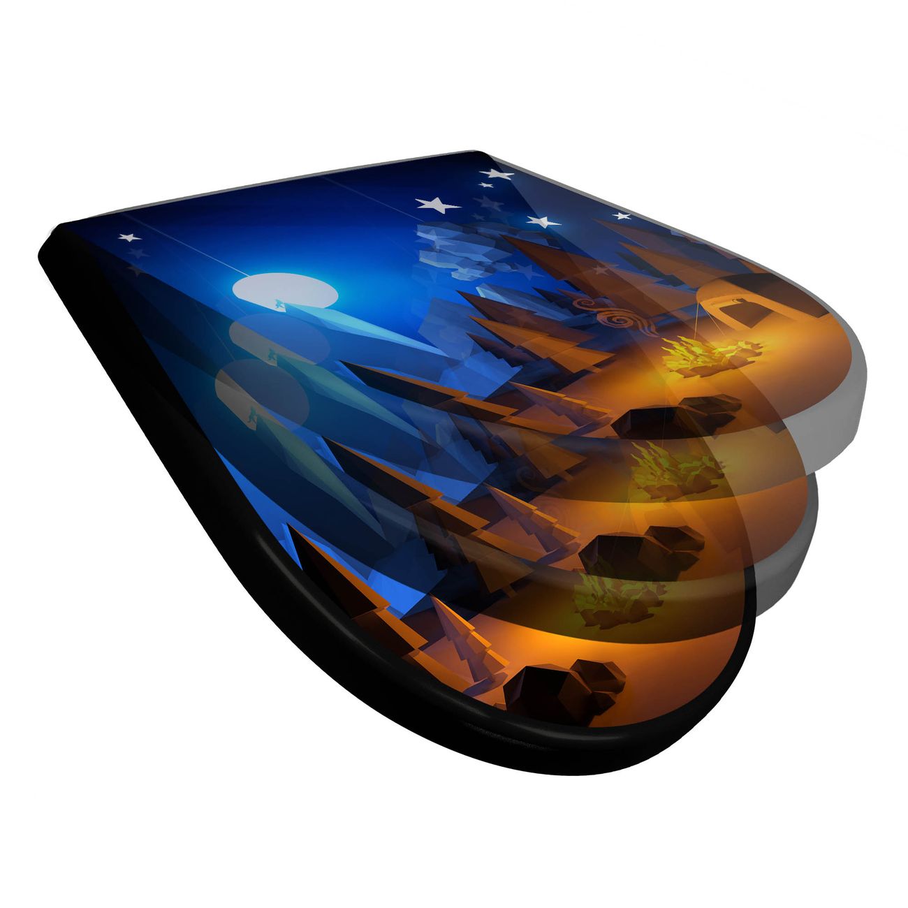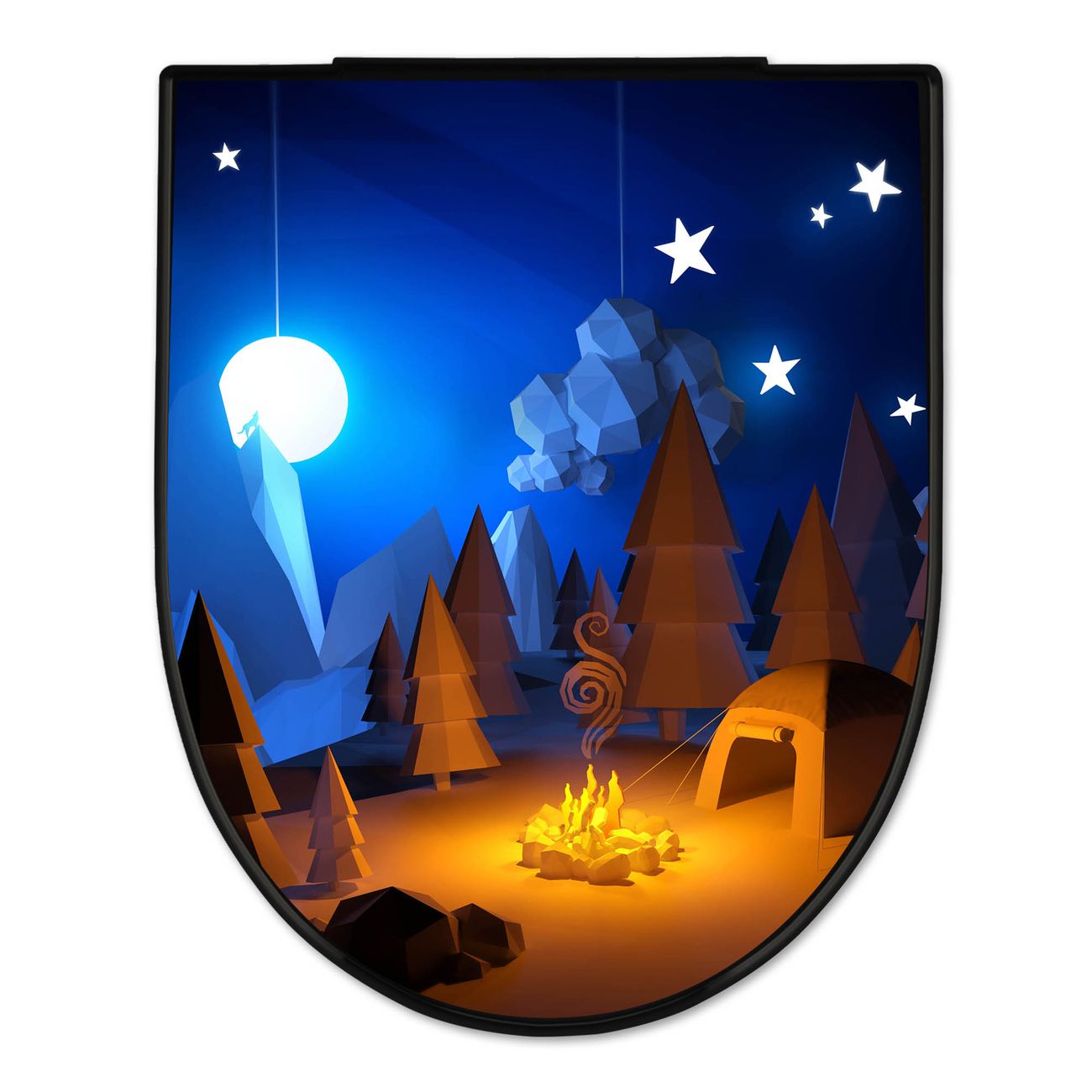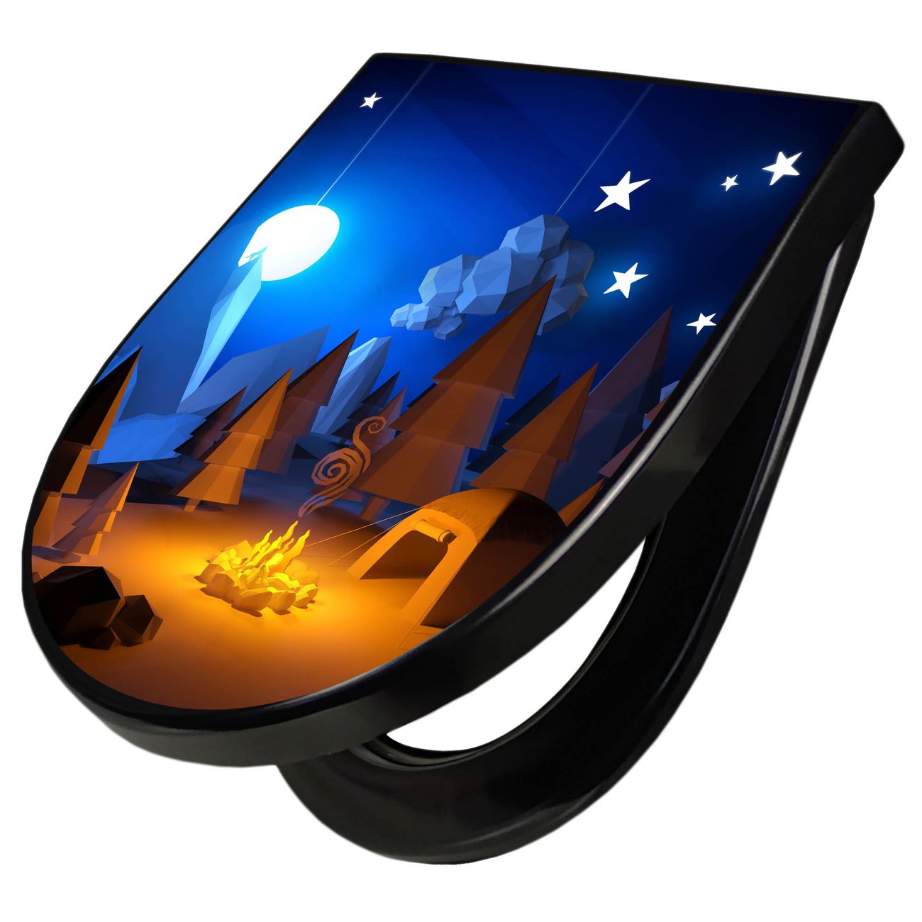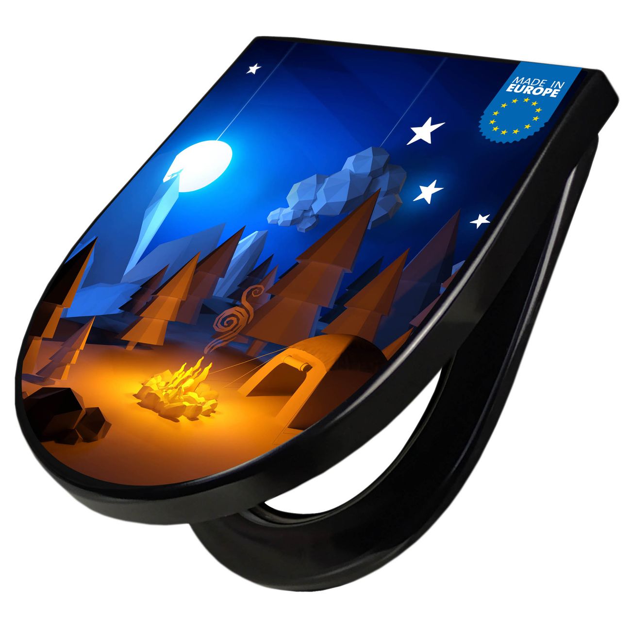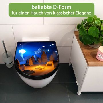 WC Sitz D-Form Schwarz mit Absenkautomatik Motiv Camping 2