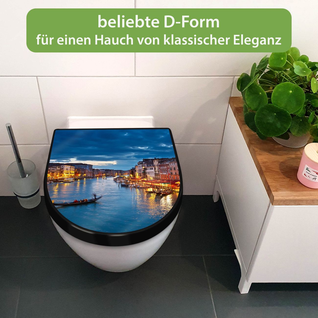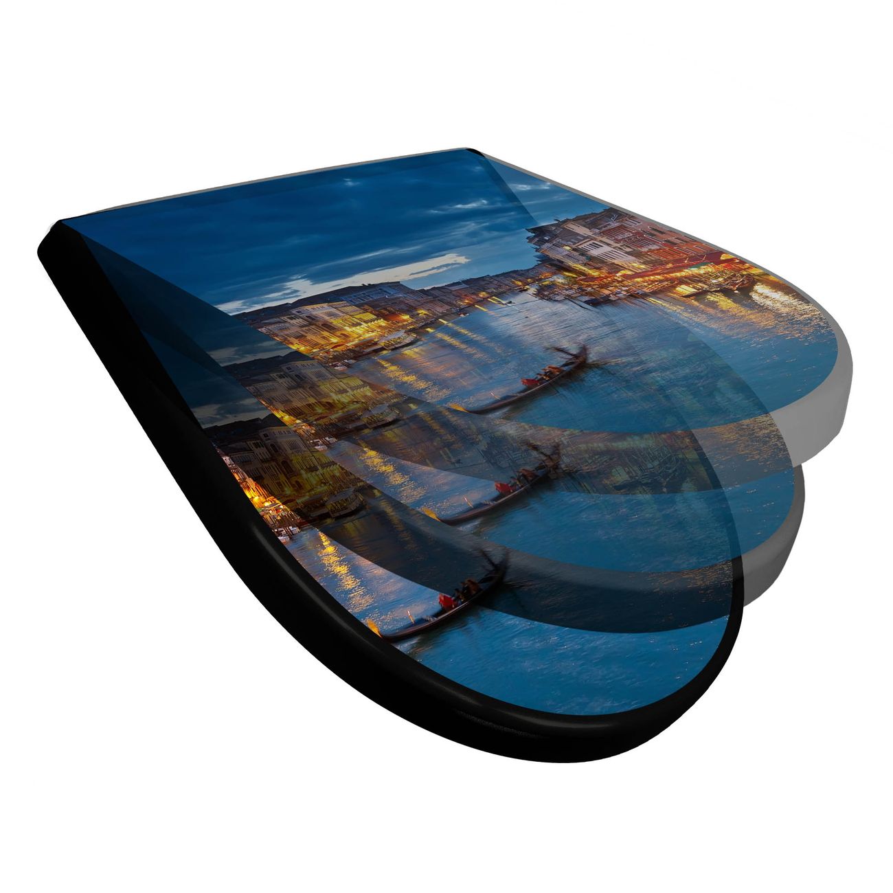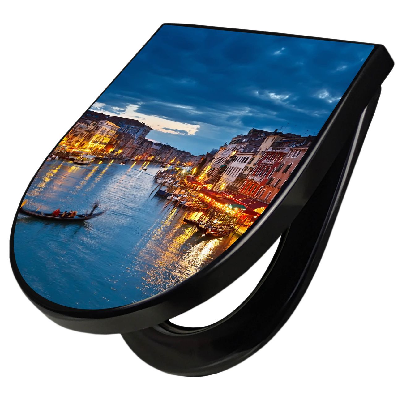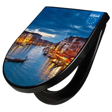 WC Sitz D-Form Schwarz mit Absenkautomatik Motiv Canale Grande Bei Nacht