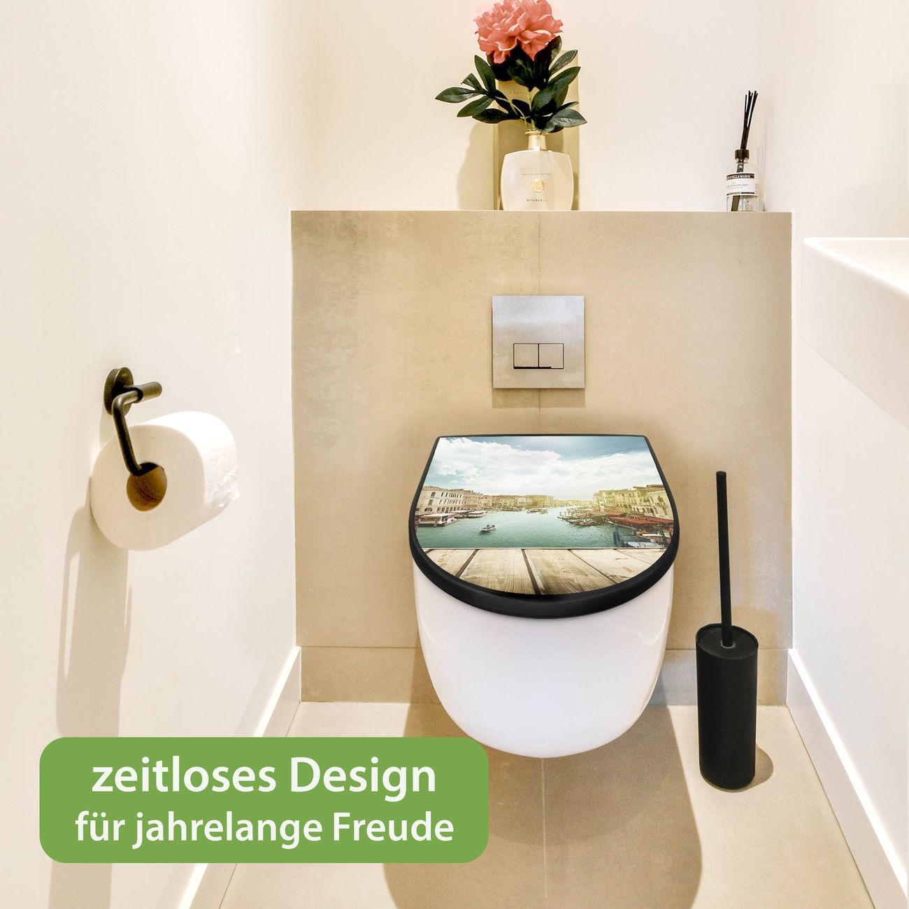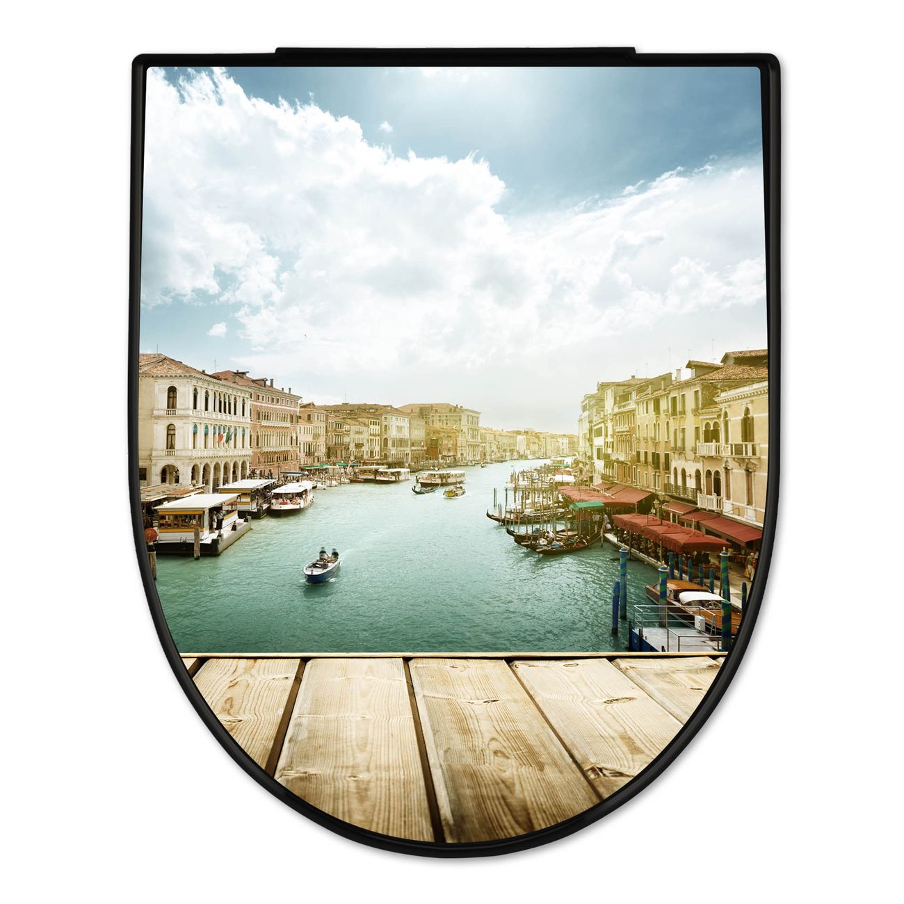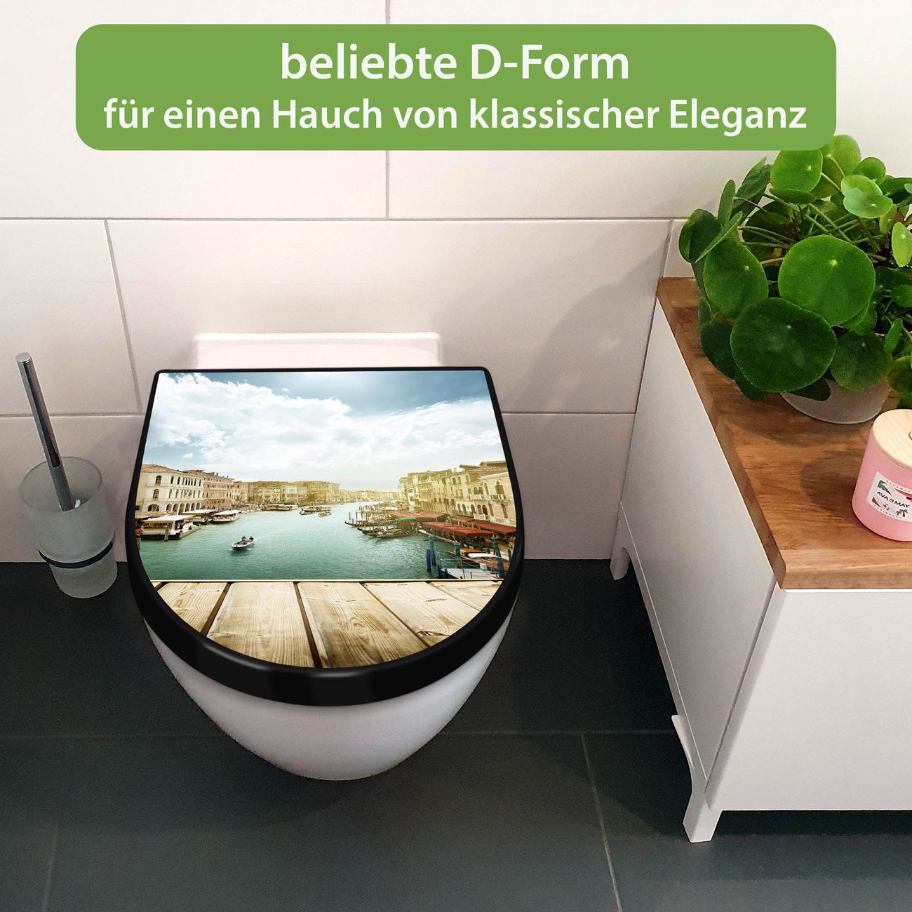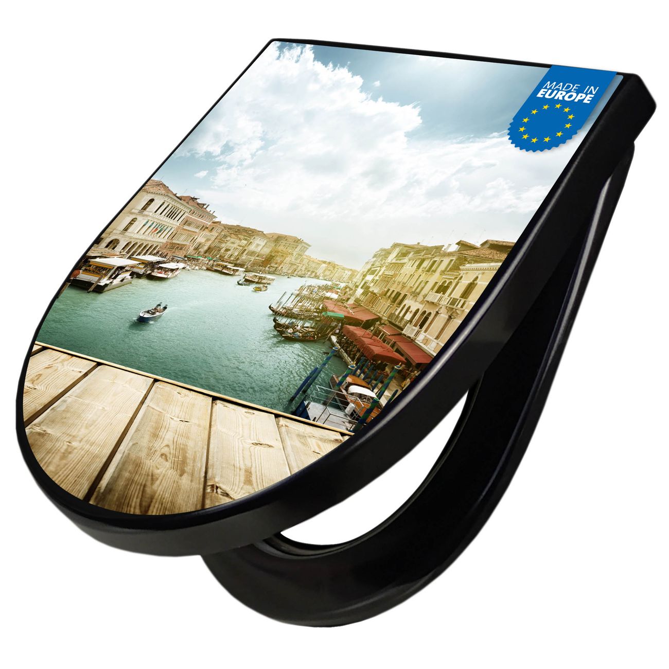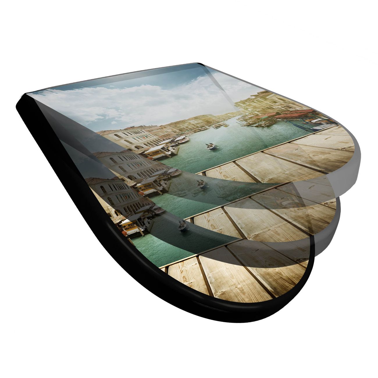 WC Sitz D-Form Schwarz mit Absenkautomatik Motiv Canale Grande