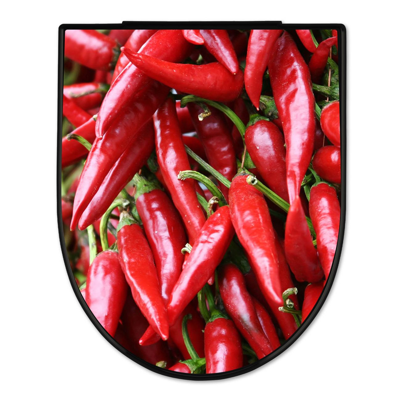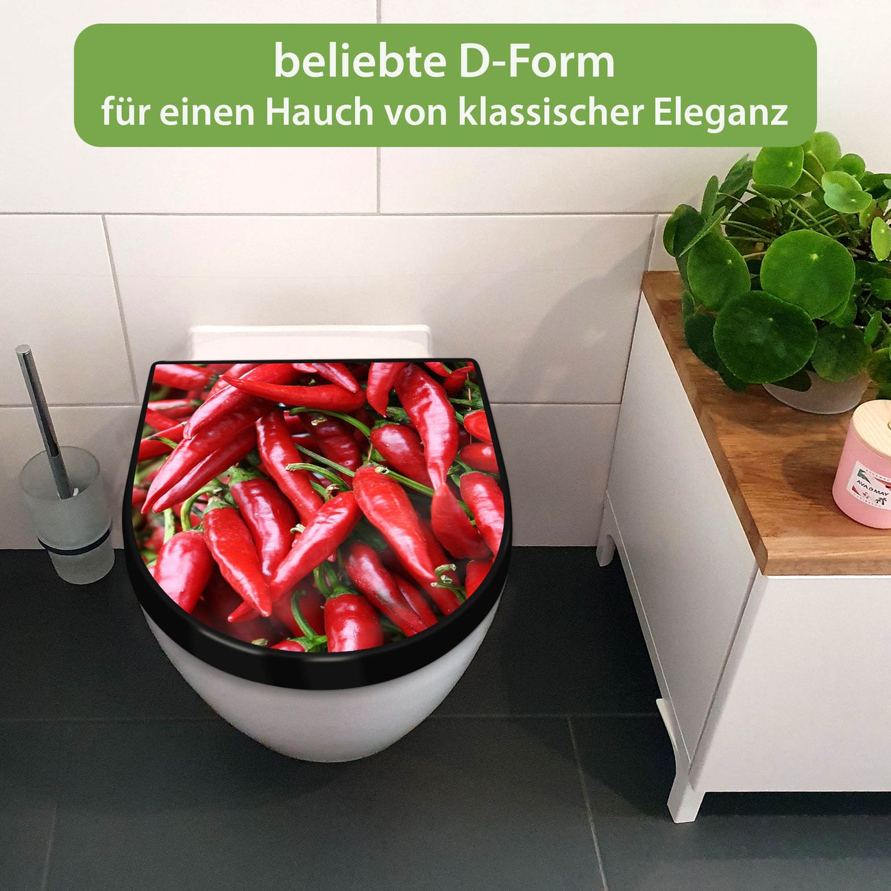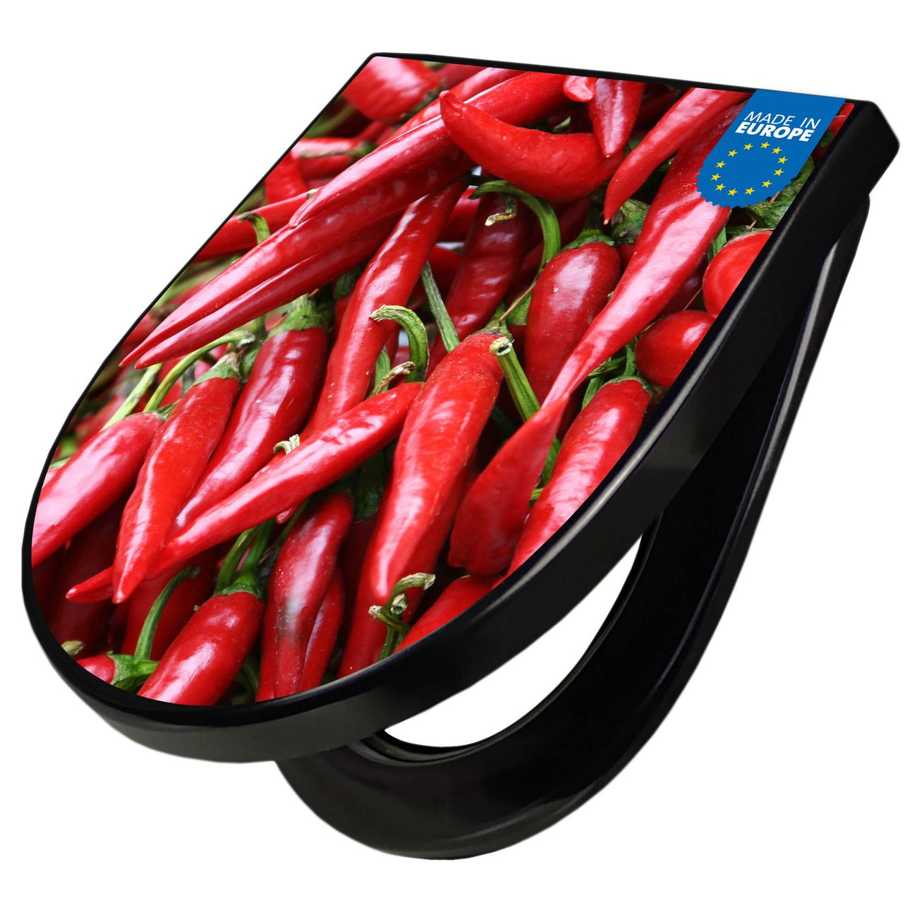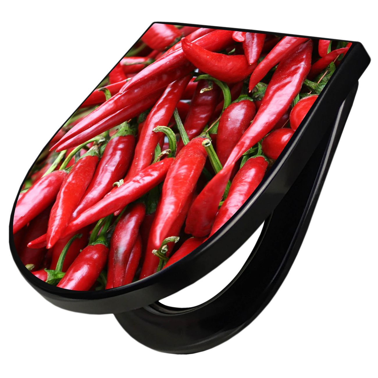 WC Sitz D-Form Schwarz mit Absenkautomatik Motiv Chilli