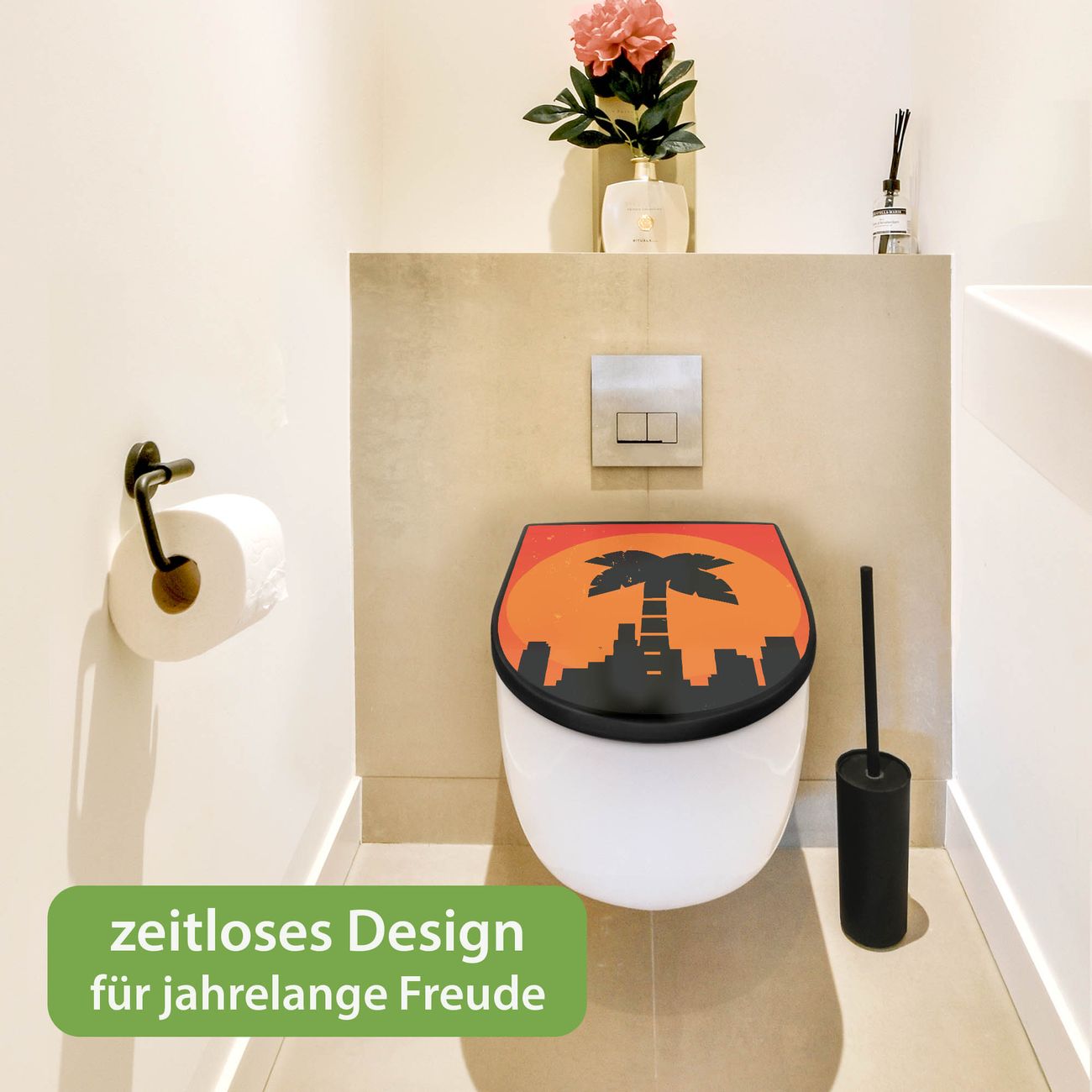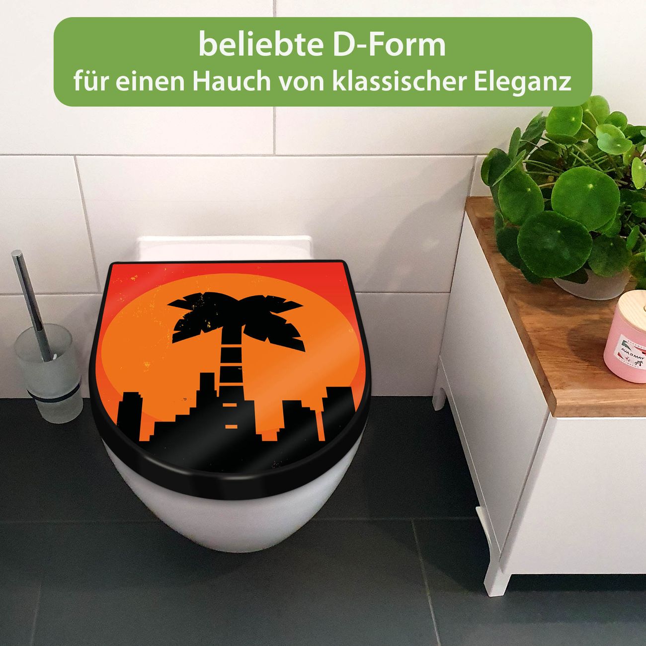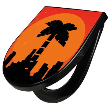 WC Sitz D-Form Schwarz mit Absenkautomatik Motiv City Poster Los Angeles