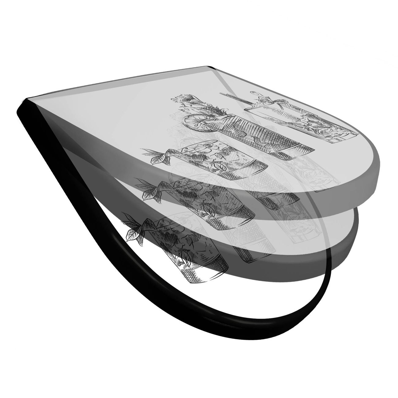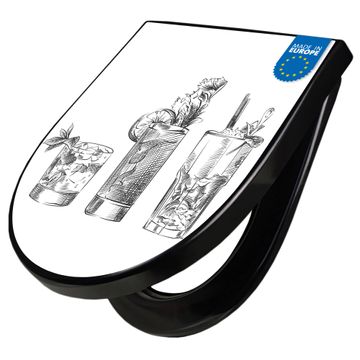 WC Sitz D-Form Schwarz mit Absenkautomatik Motiv Cocktail Skizzen