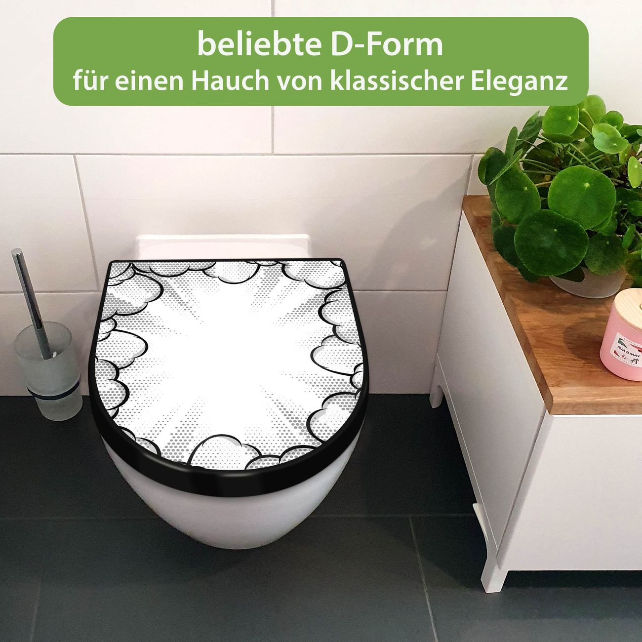 WC Sitz D-Form Schwarz mit Absenkautomatik Motiv Comic Explosion