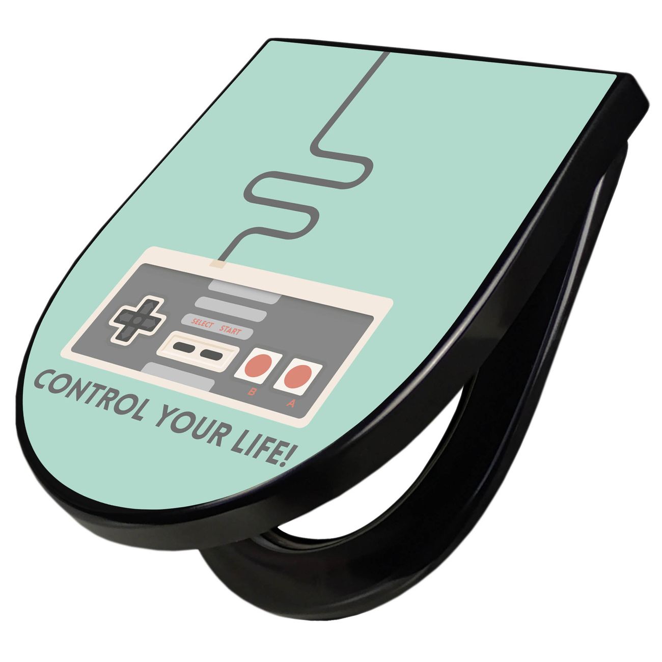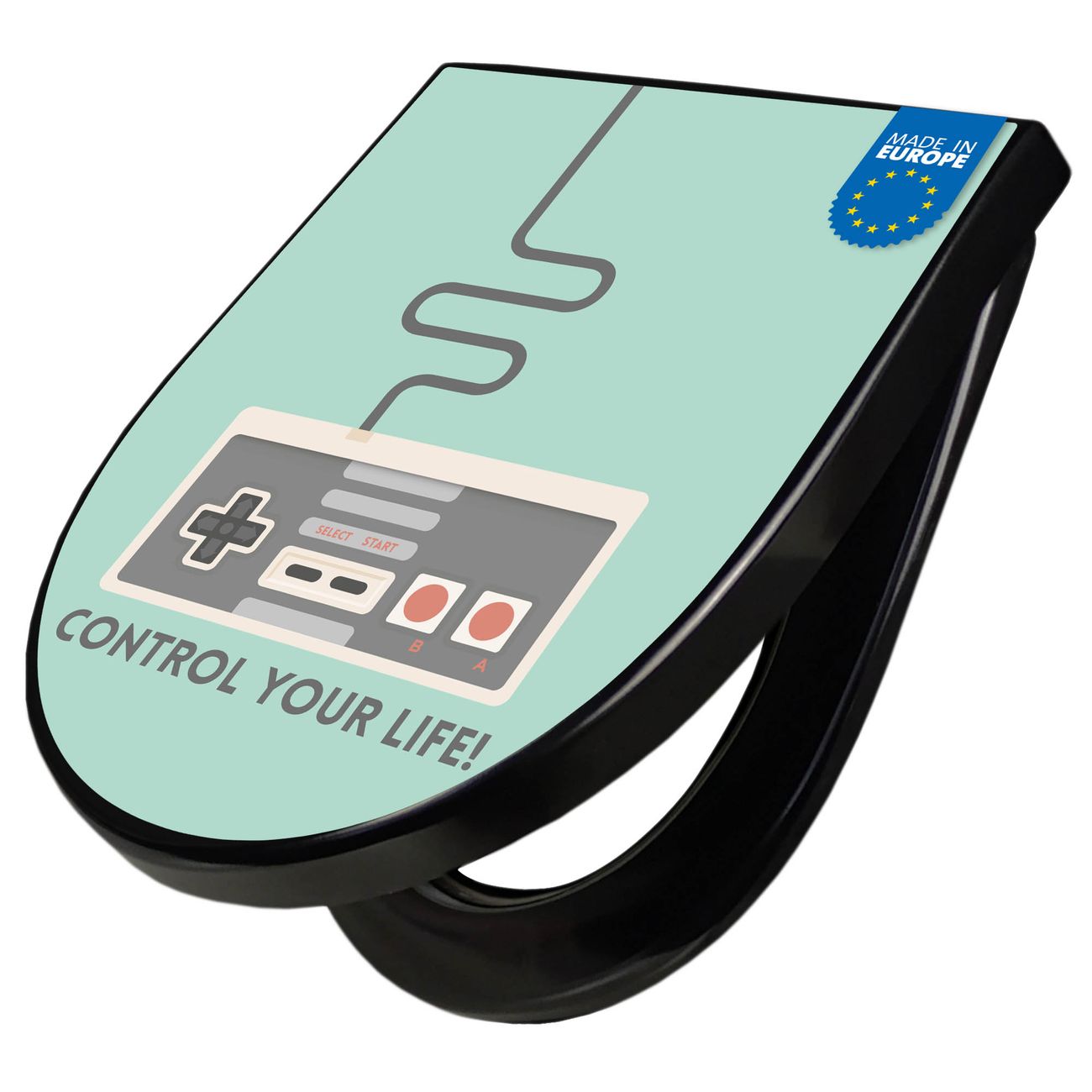 WC Sitz D-Form Schwarz mit Absenkautomatik Motiv Control