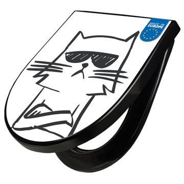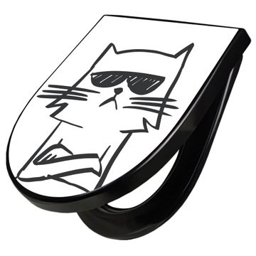 WC Sitz D-Form Schwarz mit Absenkautomatik Motiv Coole Katze