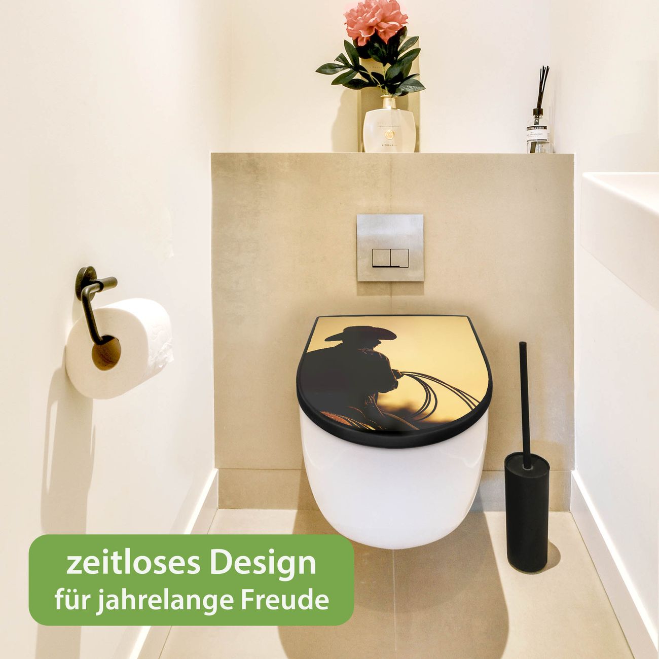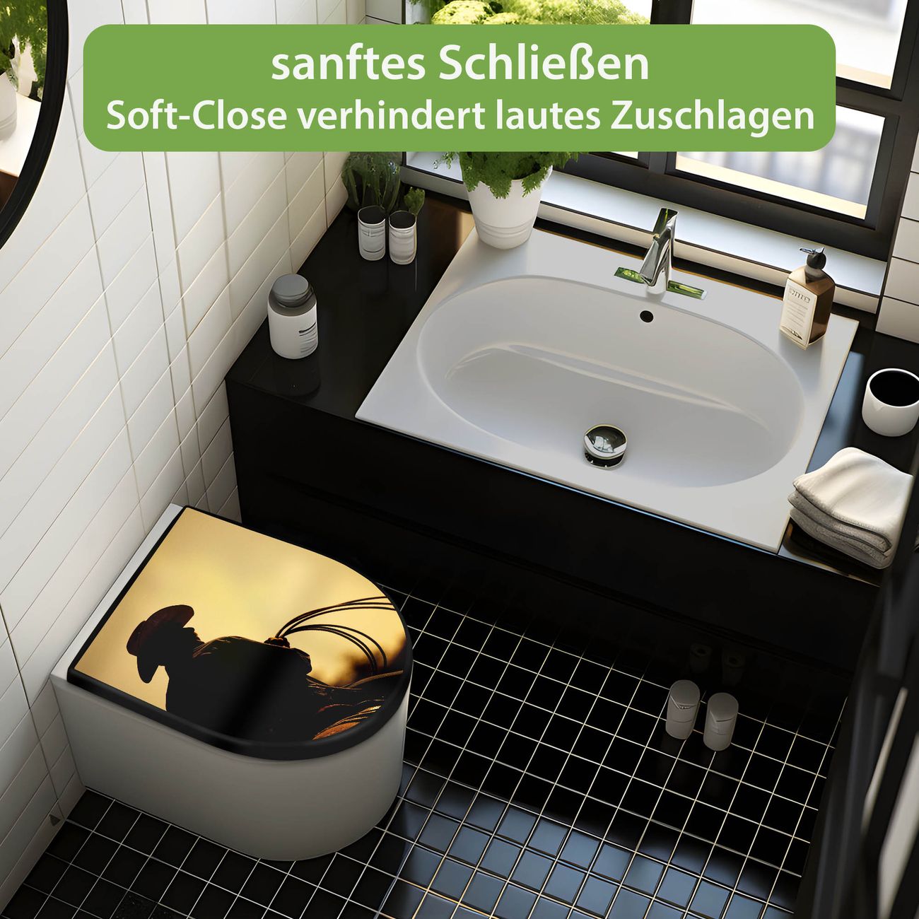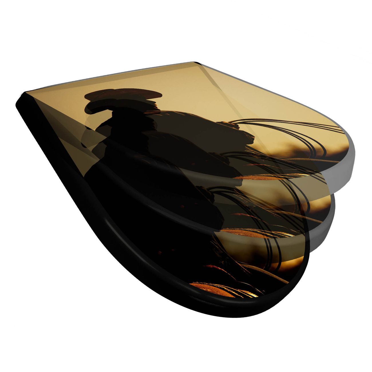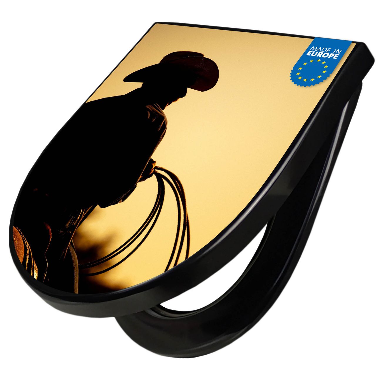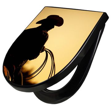 WC Sitz D-Form Schwarz mit Absenkautomatik Motiv Cowboy